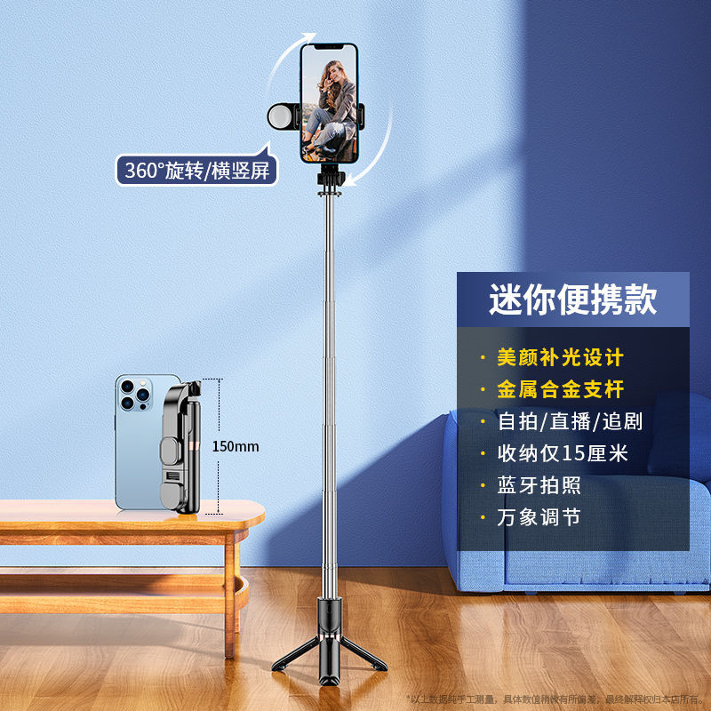 슈퍼 미니 셀카 스틱 블루투스 여행 휴대용 라이브 삼각대 휴대 전화 사진 다기능 원격 제어 휴대용스토어 가기