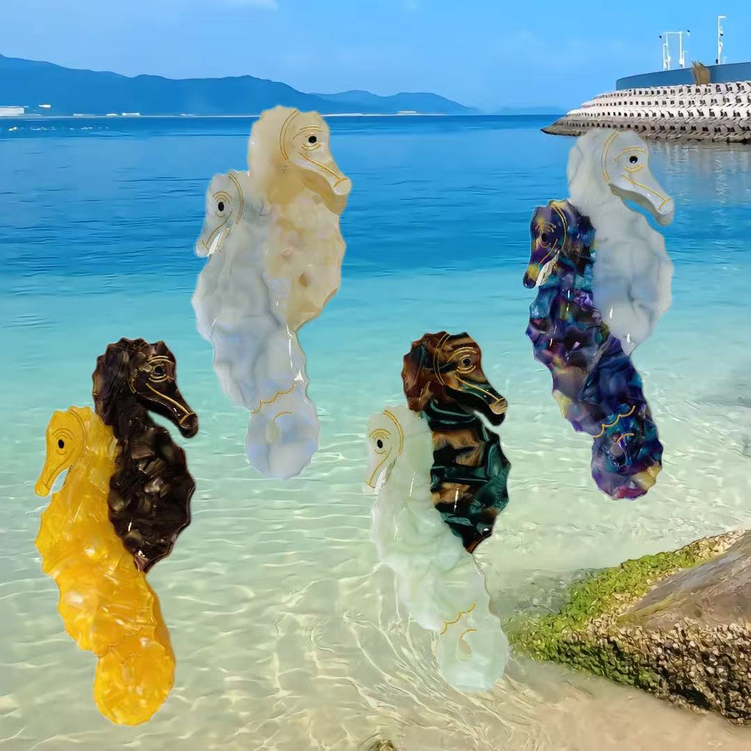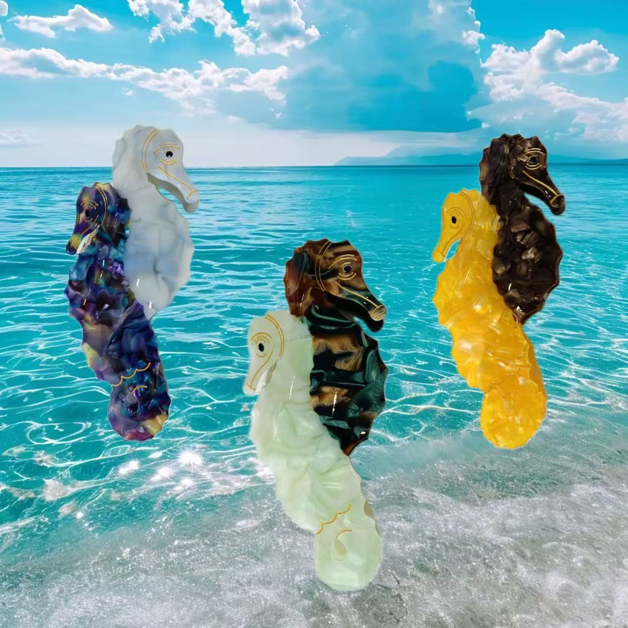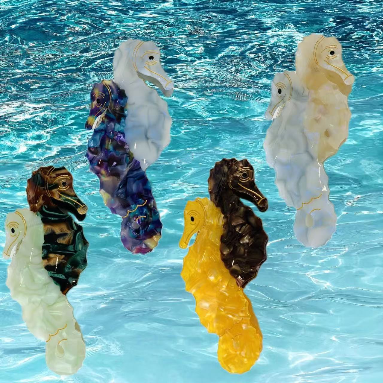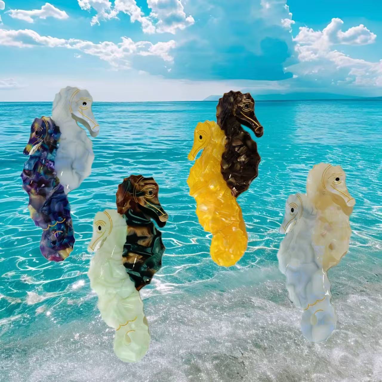 크리 에이 티브 디자인 컬러 해마 아세테이트 그립 클립 오션 시리즈 컬러 매칭 대형 헤어 클립 클립 여성용 머리핀 상어 클립스토어 가기