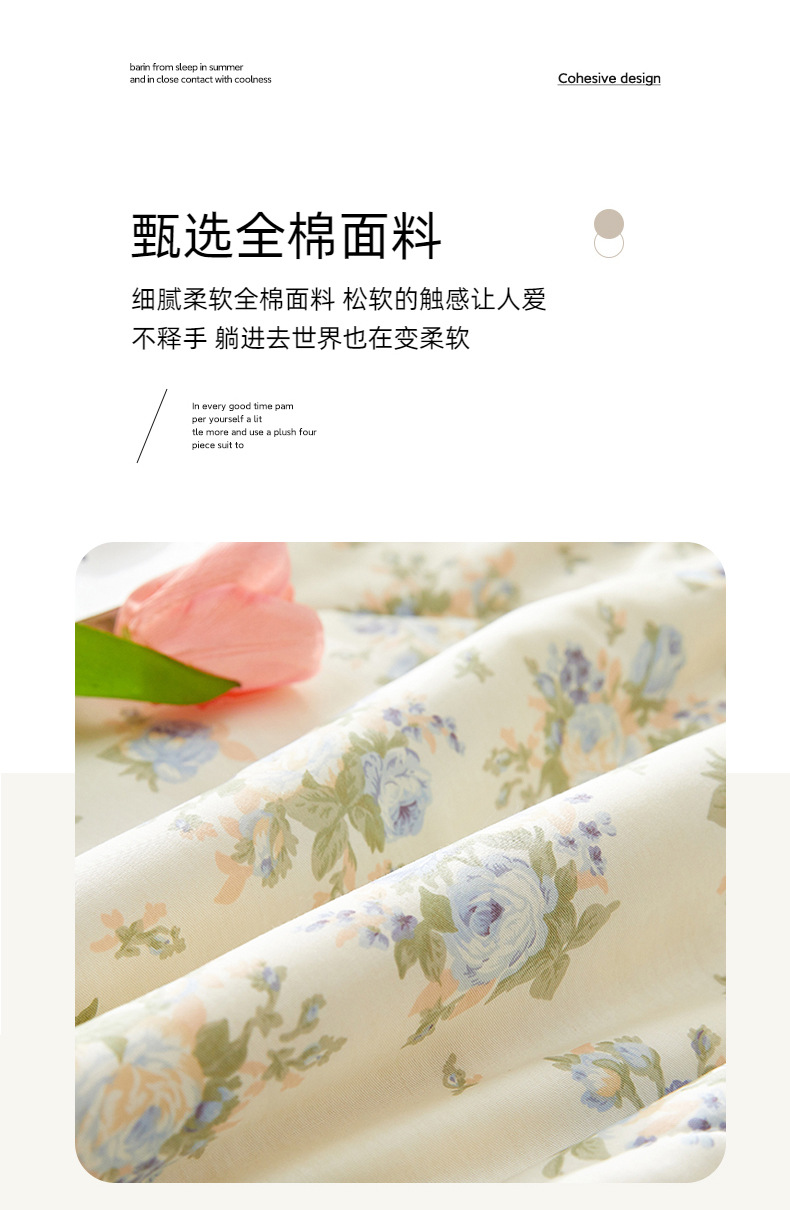 클래스 A 모성 및 유아 등급 100 순면 여름 이불 4 종 세트 내부 및 외부 면화 작은 꽃 여름 이불 기계 세탁 가능한 에어컨 이불 3