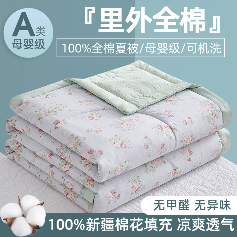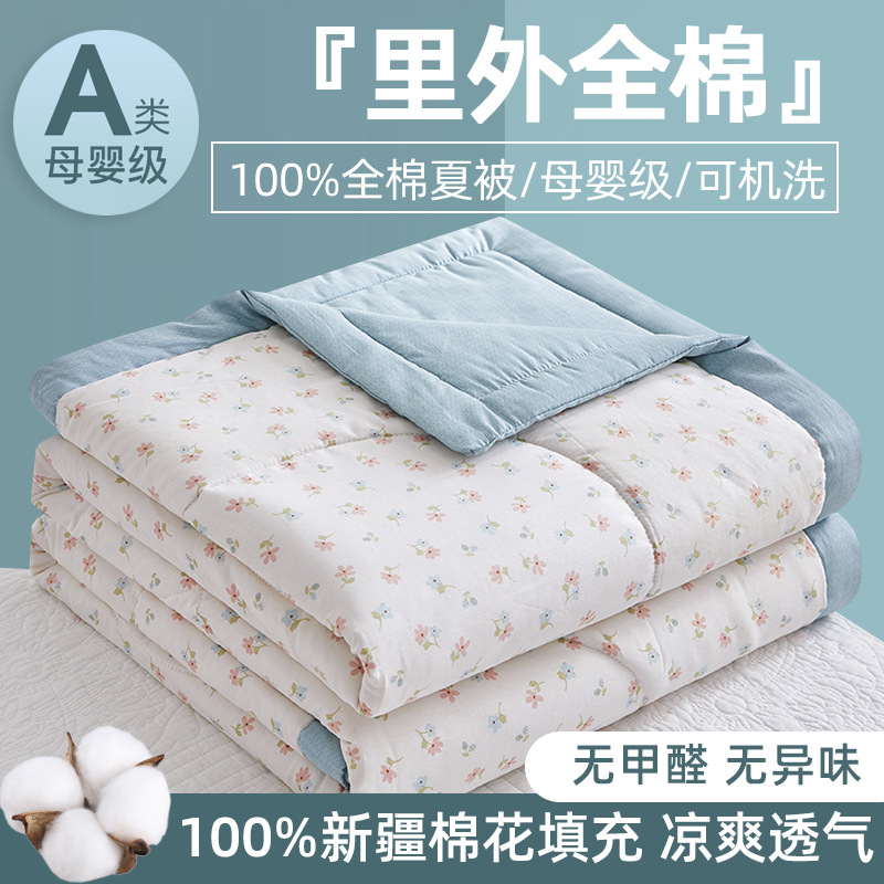 클래스 A 모성 및 유아 등급 100 순면 여름 이불 4 종 세트 내부 및 외부 면화 작은 꽃 여름 이불 기계 세탁 가능한 에어컨 이불 3스토어 가기