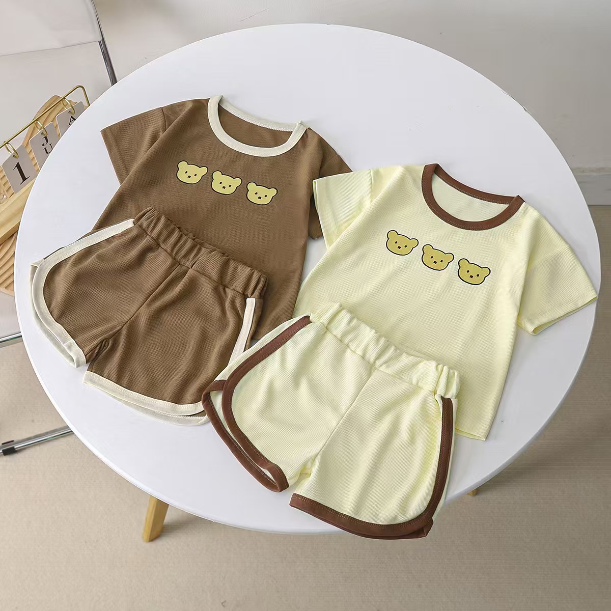 • 둥근바지, 반바지 세트, 곰머리 3개, 커피색