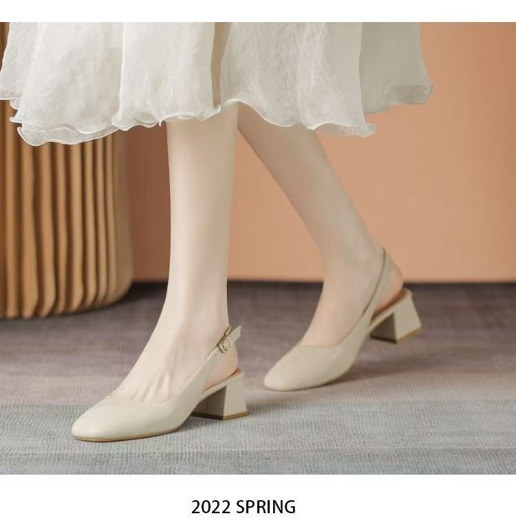 바오터우 빈 샌들 여성용 여름 미드 힐 아우터웨어 2025 새로운 한국식 두꺼운 힐 하프 슈즈 여성용 하이힐