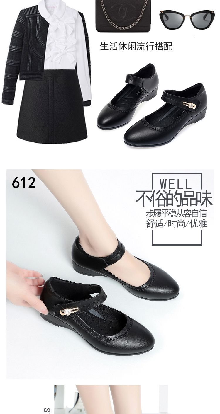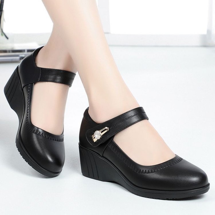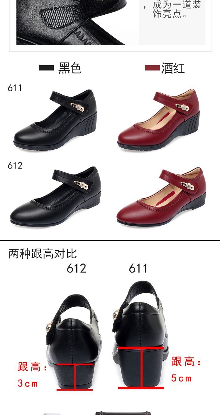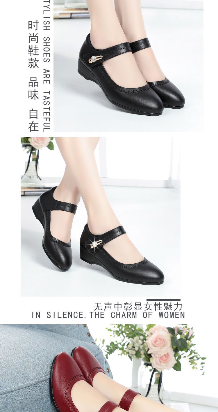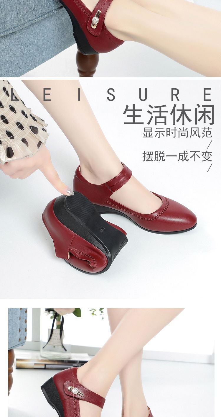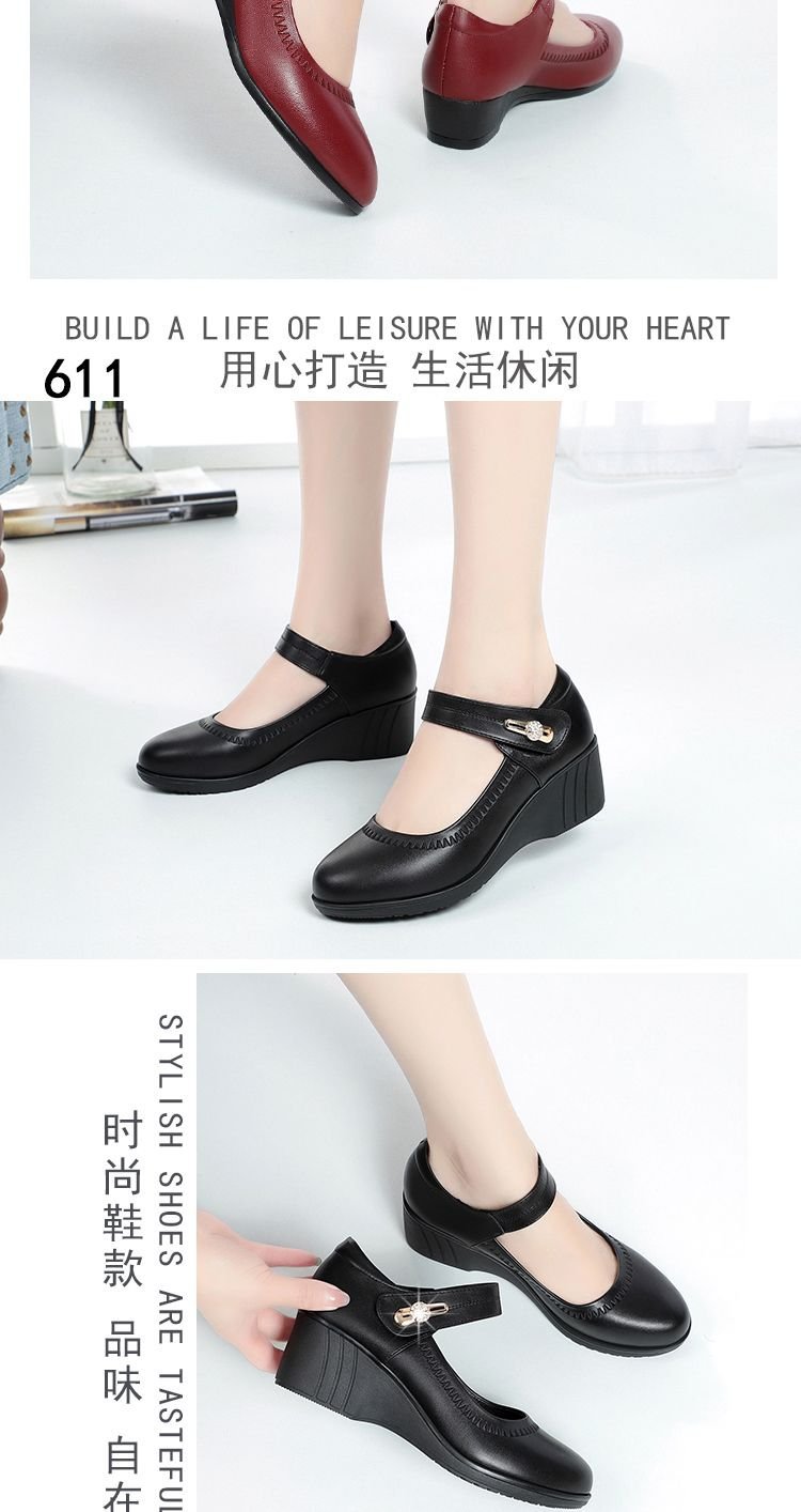 대외 무역 국경 간 부드러운 가죽 부드러운 밑창 어머니의 작은 가죽 신발 봄과 가을 새로운 부드러운 밑창 미끄럼 방지 웨지 힐 중년 및 노인 여성 신발스토어 가기