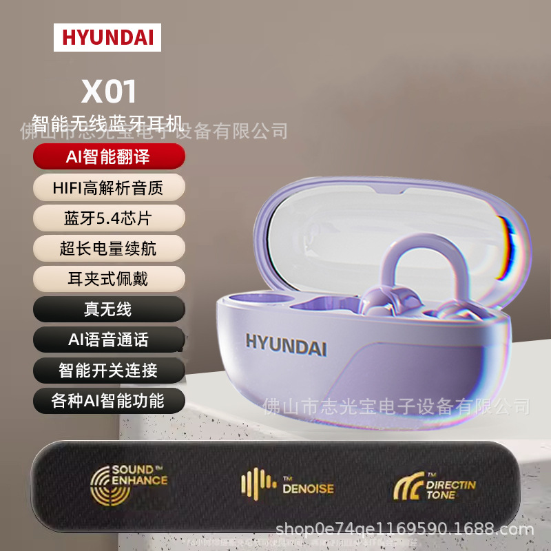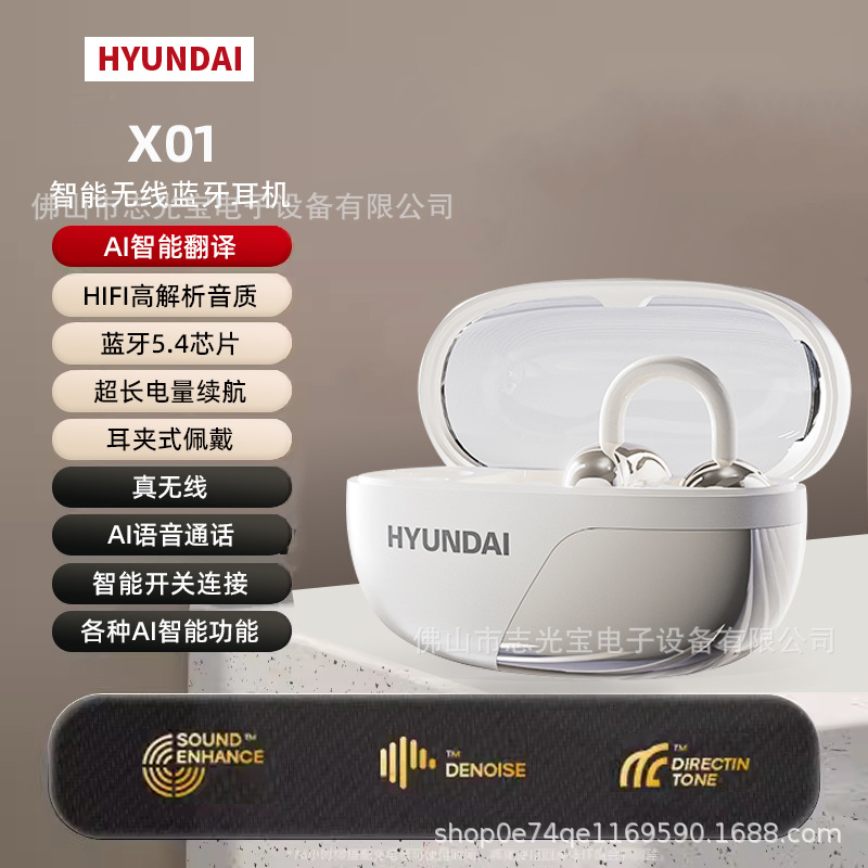 2025 새로운 현대 X01 하이 퀄리티 AI 스마트 블루투스 헤드셋 귀 클립 전기 경쟁 긴 내구성 무선 헤드셋스토어 가기