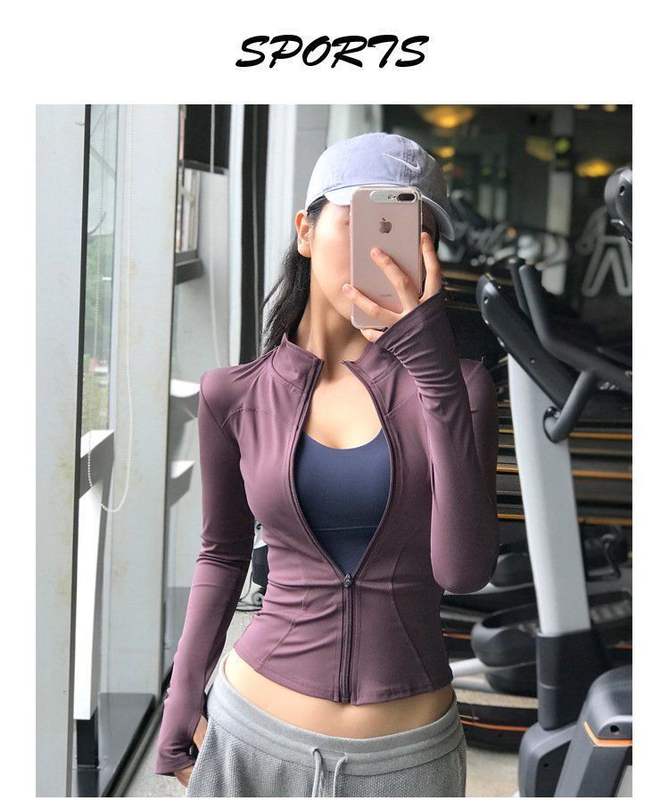 봄과 여름 2025 새로운 캐주얼 재킷 여성 수직 칼라 재킷 올 매치 스포츠 탑 얇은 슬림 핏 요가 옷스토어 가기
