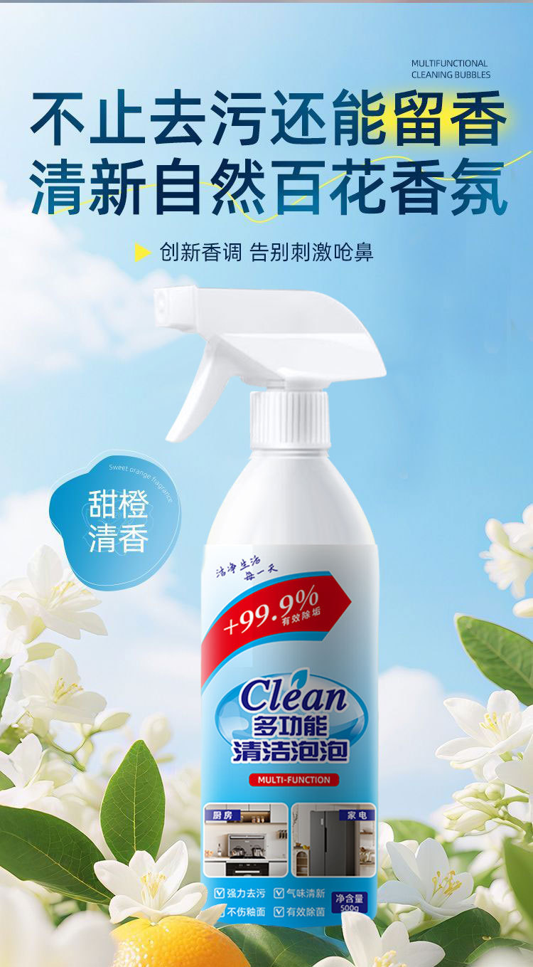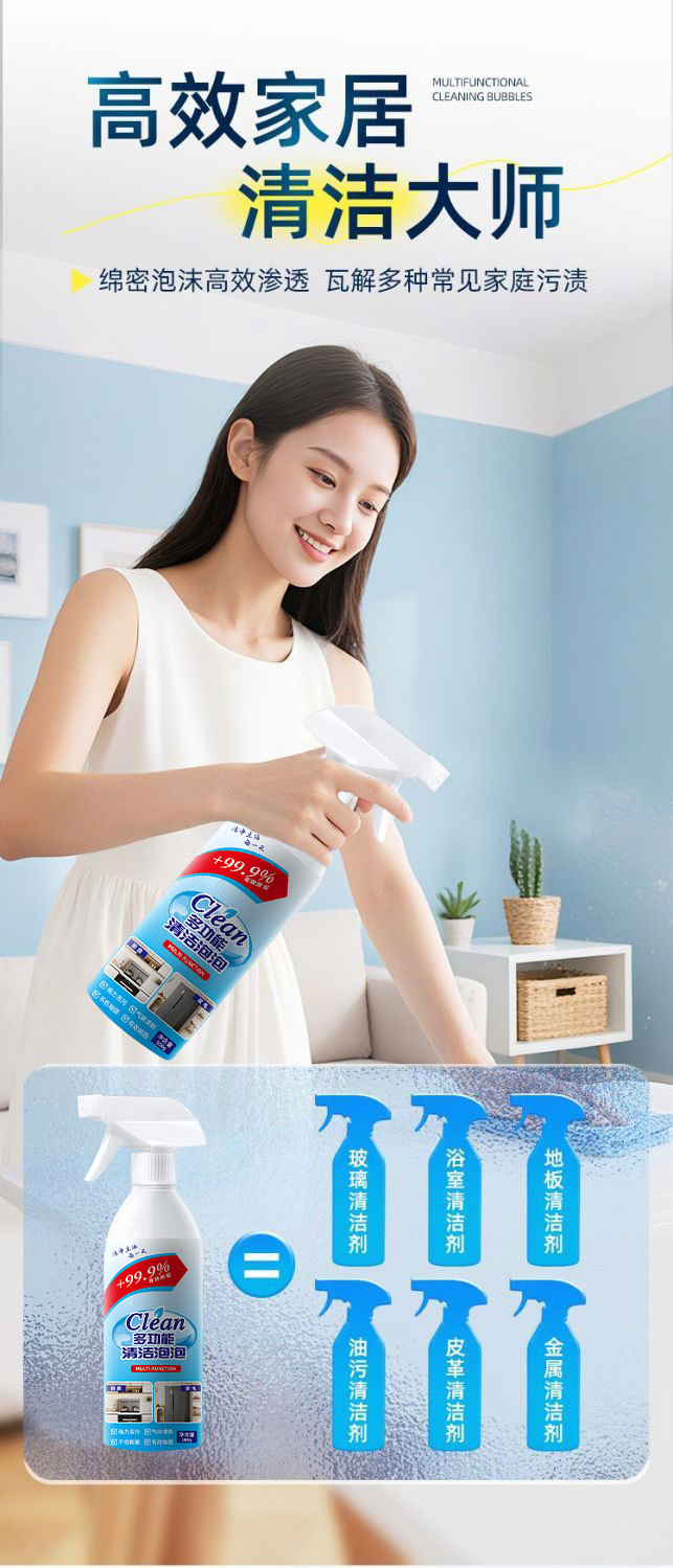 • 500ML 다기능 청소 버블 1병 + 스프레이 노즐