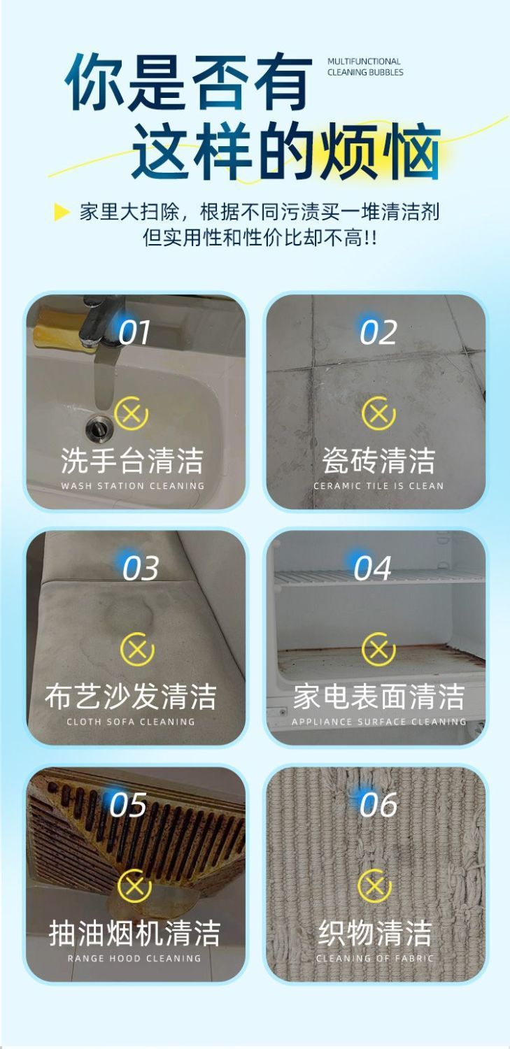 가정용 다기능 청소 거품 주방 가전제품 세정제 다목적 세정제 기름 제거 및 오염 제거 세정제