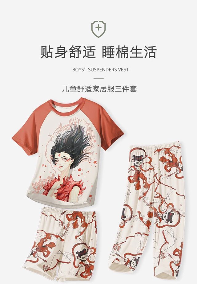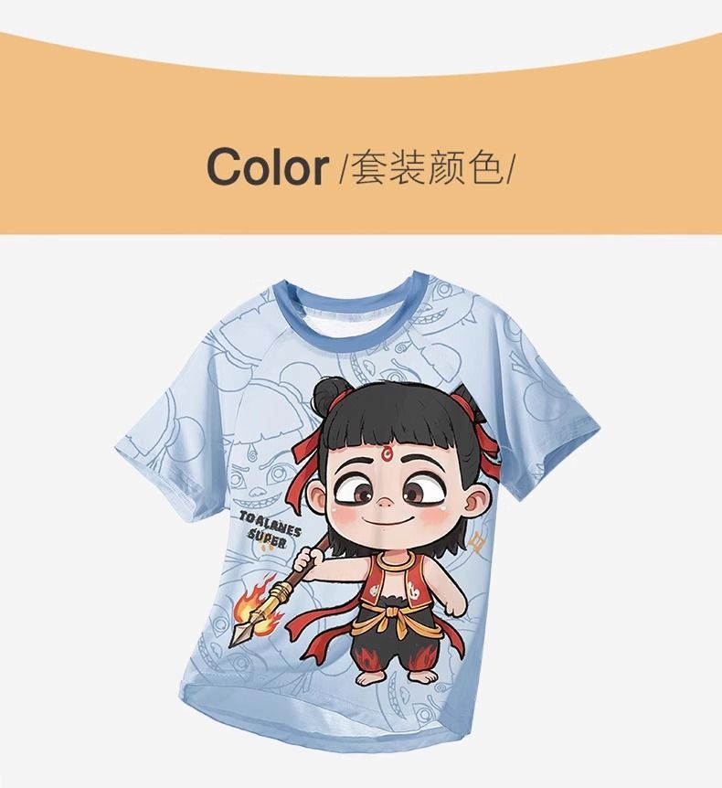 2025년 여름 새로운 스타일의 소년용 잠옷, 반팔 바지, 만화 Nezha 어린이 중대형 소년 정장, 가정복스토어 가기