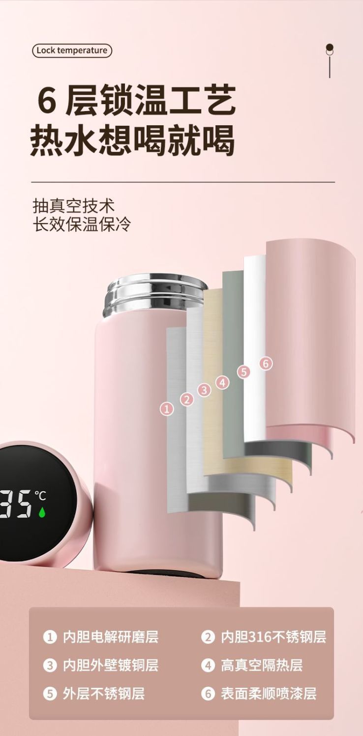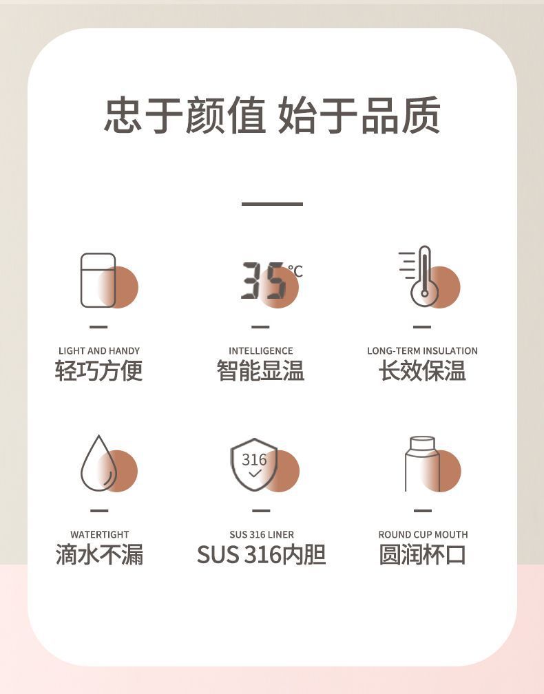 새로운 316 스테인레스 스틸 온도 디스플레이 스트레이트 컵 소용량 미니 보온병 컵 더블 레이어 진공 소형 포켓 컵 워터 컵