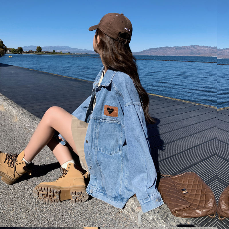 데님 재킷 여성의 봄과 가을 새로운 한국 스타일 느슨한 복고풍 디자인 틈새 재킷 트렌디스토어 가기