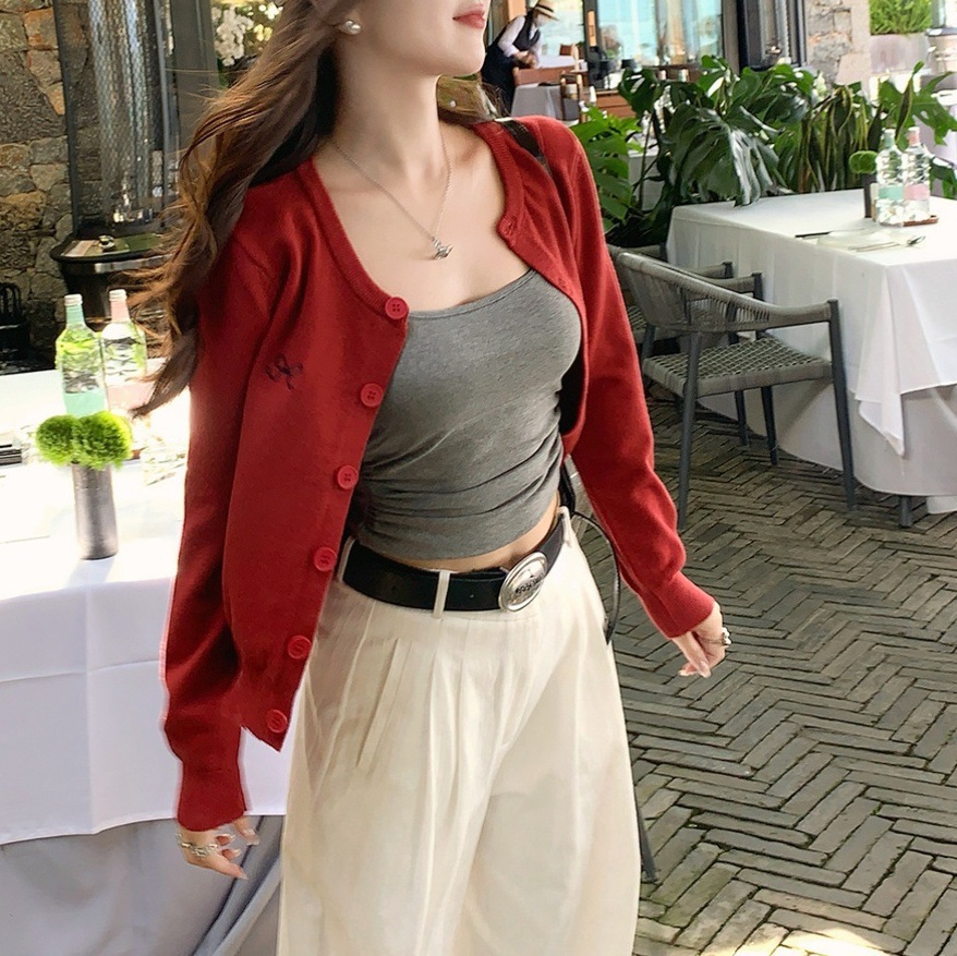 여성을위한 자수 짧은 스웨터 2025 초가을 새로운 니트 스웨터 재킷 긴팔 탑 싱글 브레스트 카디건 얇은스토어 가기