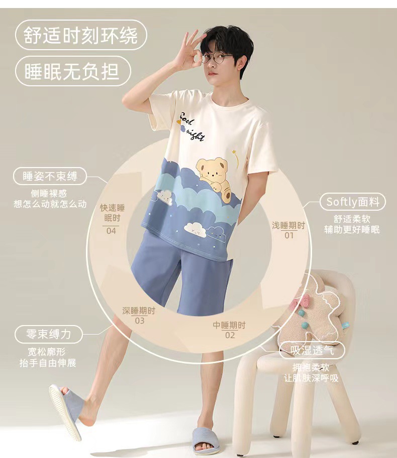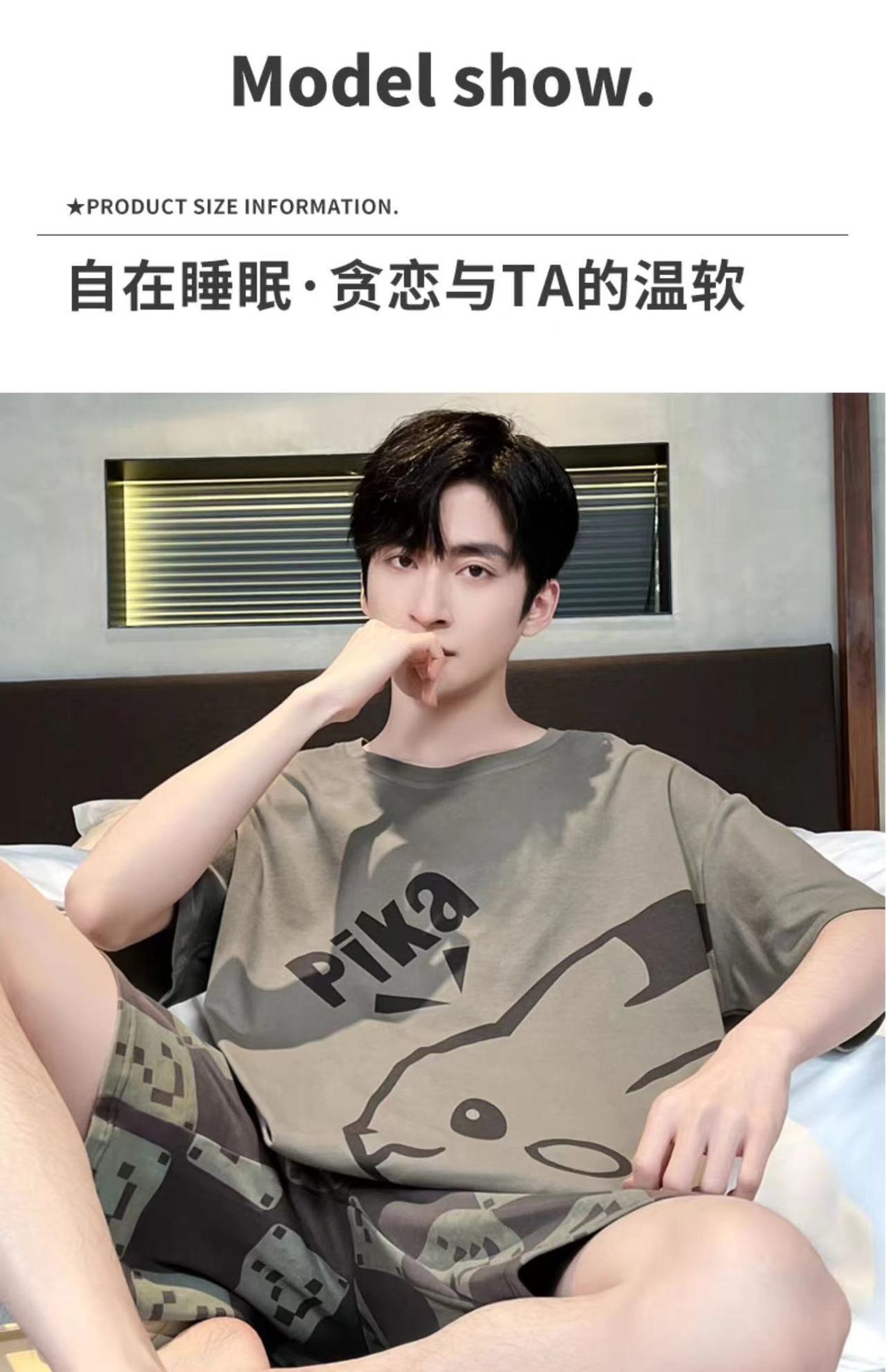 새로운 남성 여름 짧은 소매 잠옷 세트 청소년 플러스 사이즈 만화 홈웨어 잠옷스토어 가기