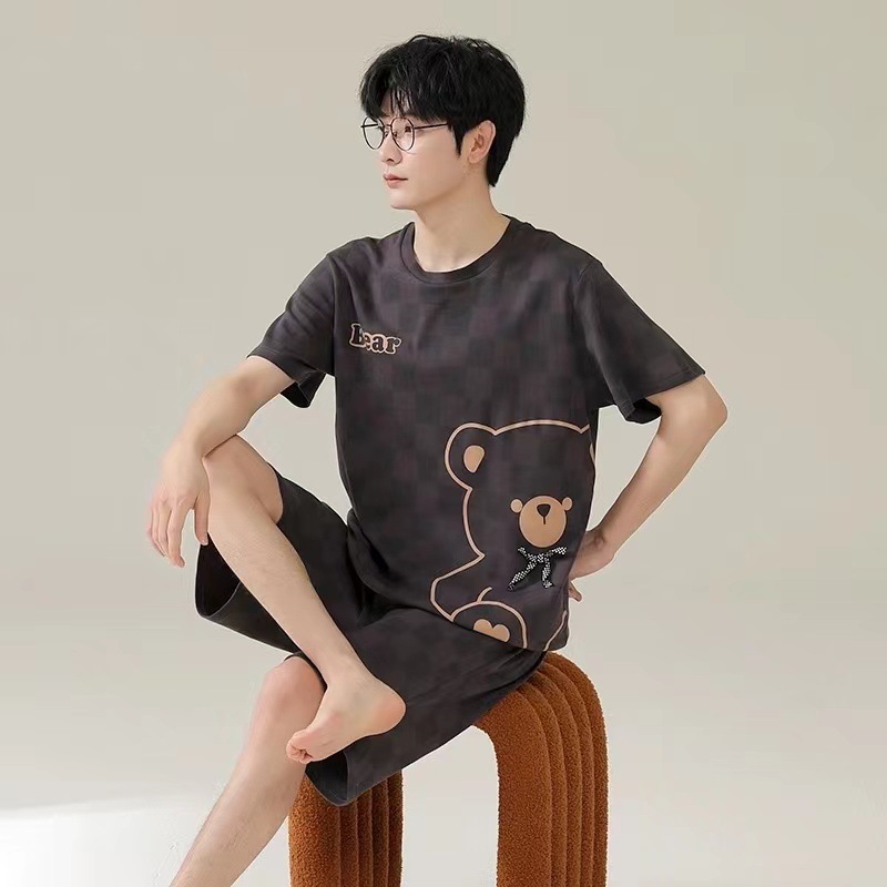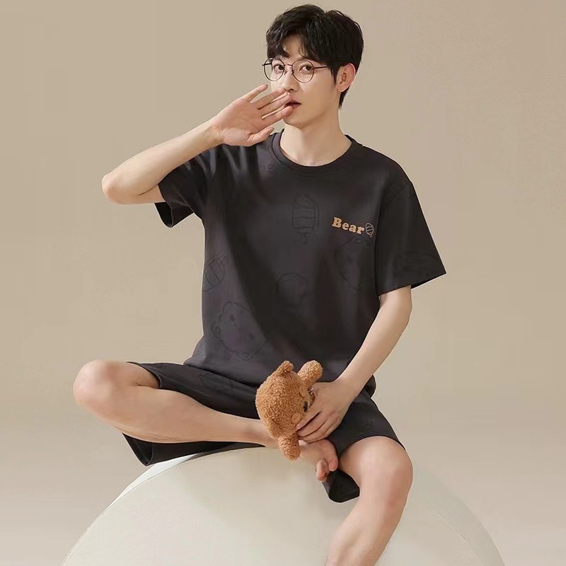 새로운 남성 여름 짧은 소매 잠옷 세트 청소년 플러스 사이즈 만화 홈웨어 잠옷