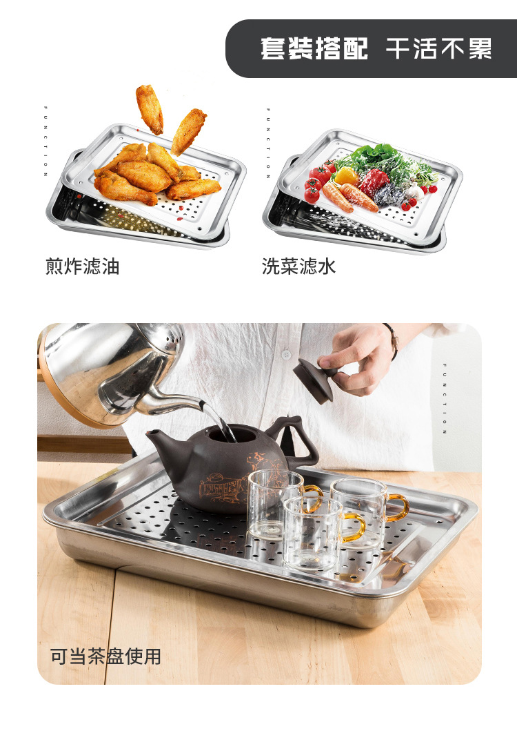 드레인 스퀘어 트레이 304 스테인레스 스틸 직사각형 티 트레이 더블 레이어 만두 트레이 상업용 드레인 오일 트레이 증기 트레이 드레인 트레이스토어 가기