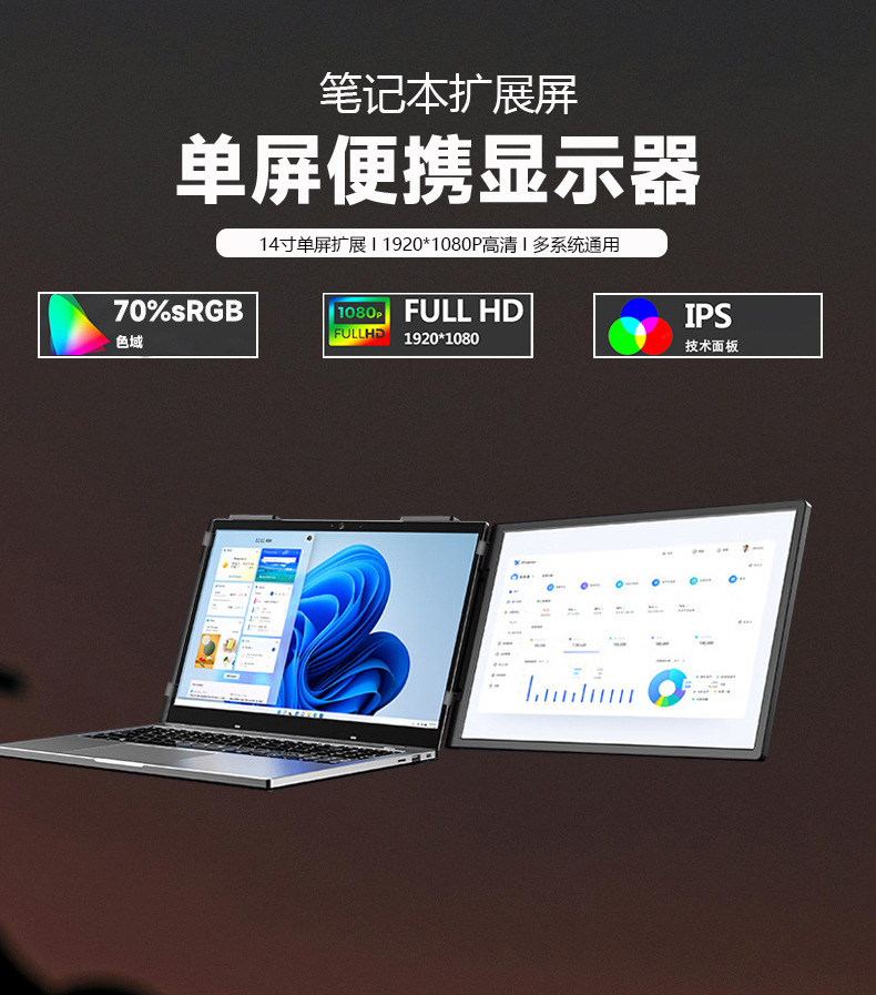 국경 간 베스트셀러 14 인치 단일 화면 노트북 전용 확장 화면 1 라인 노트북 익스텐더 휴대용 디스플레이스토어 가기