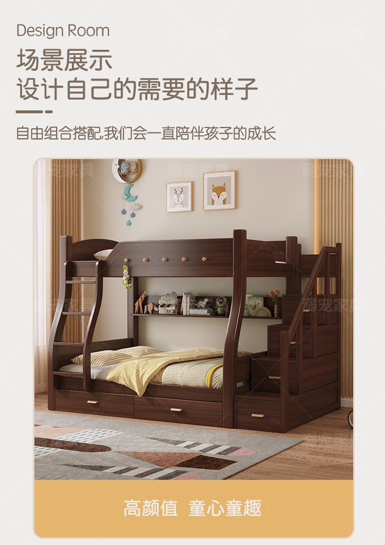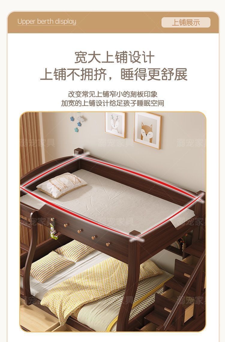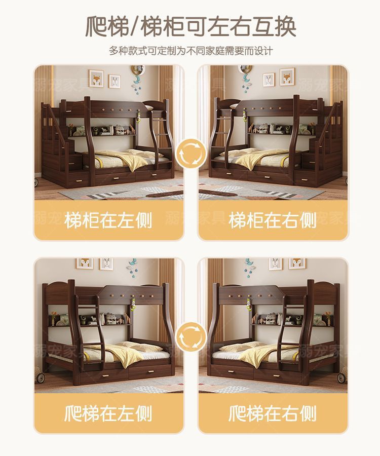 체리 단단한 나무 이층 침대 이층 침대 2층 더블 높고 낮은 다기능 나무 침대 어린이 대담한 저장