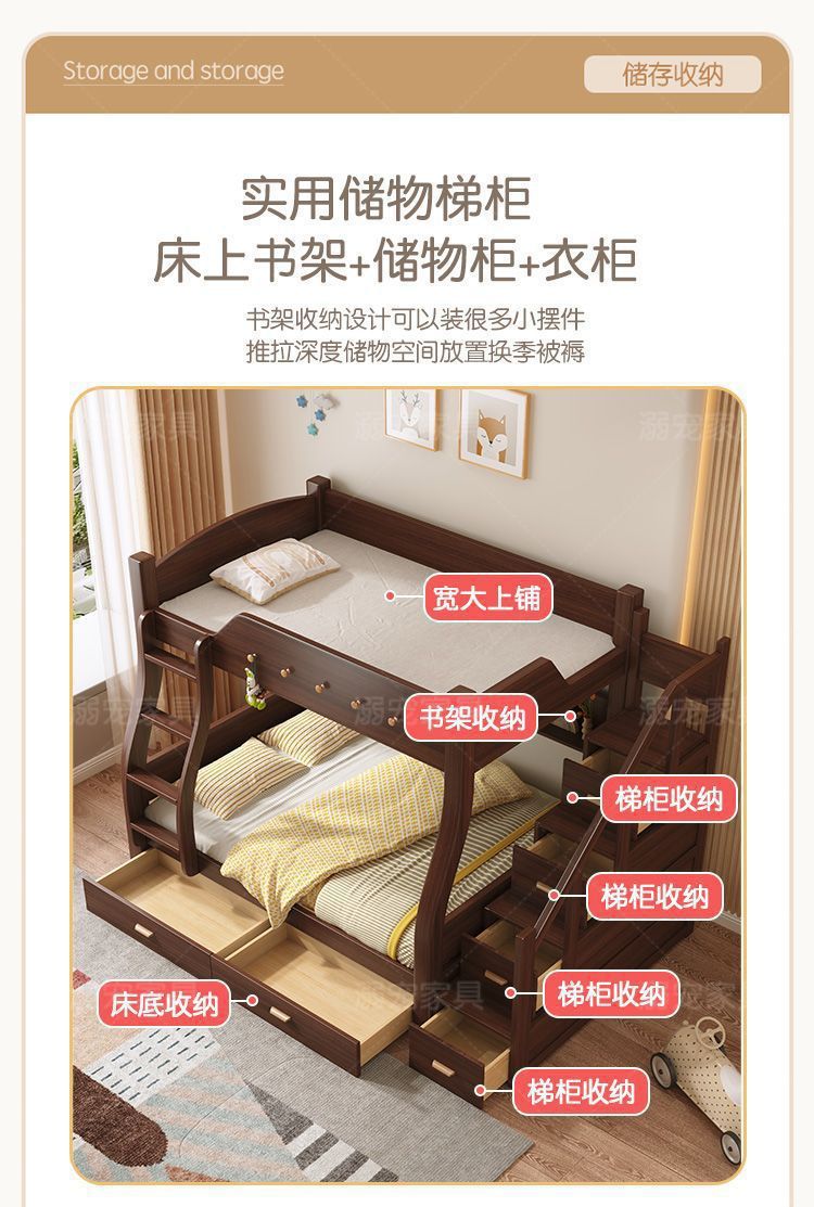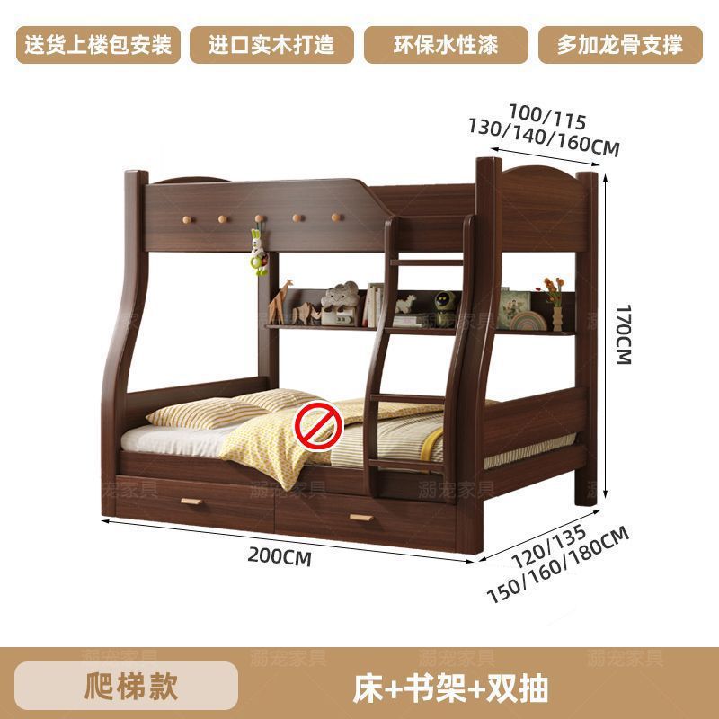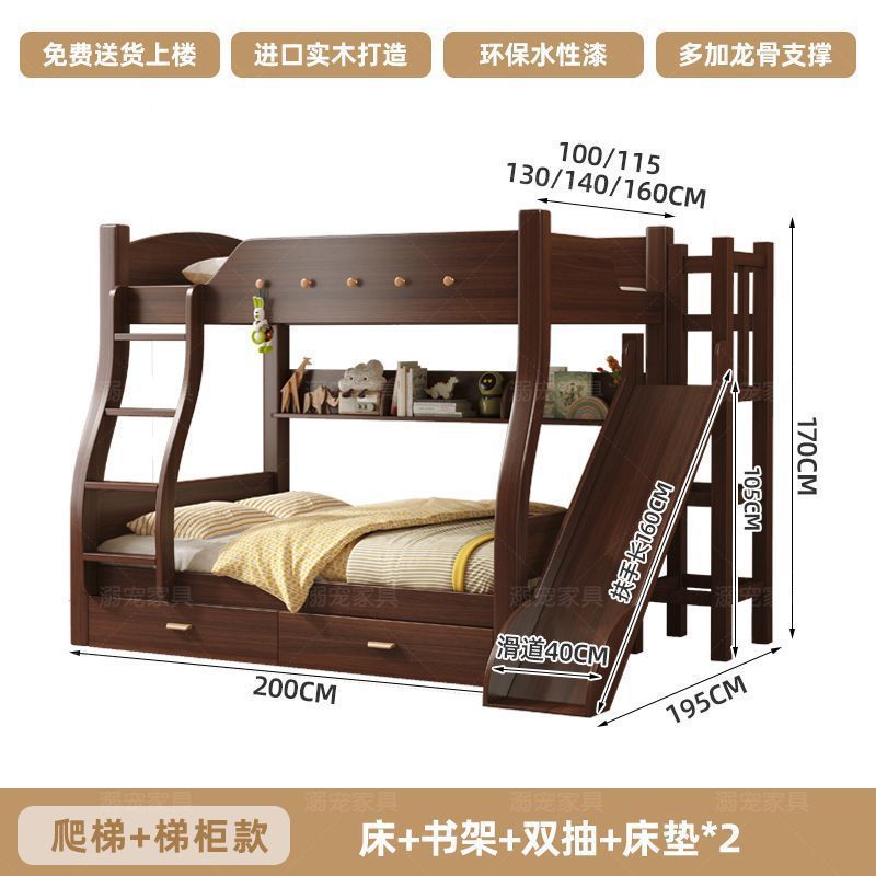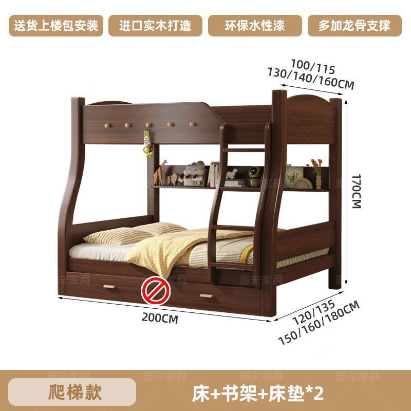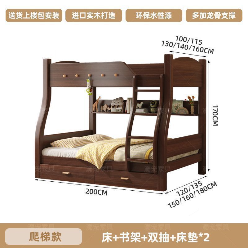 체리 단단한 나무 이층 침대 이층 침대 2층 더블 높고 낮은 다기능 나무 침대 어린이 대담한 저장스토어 가기