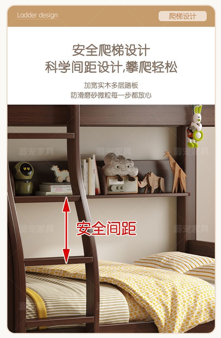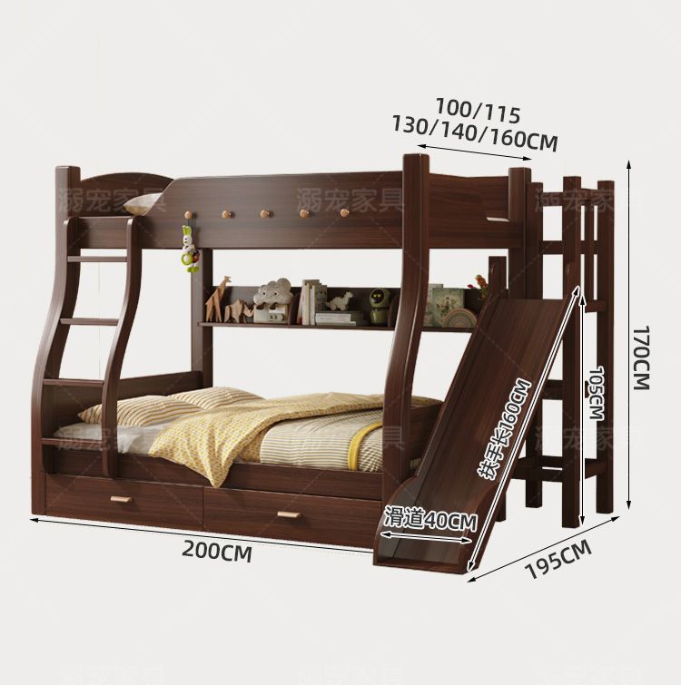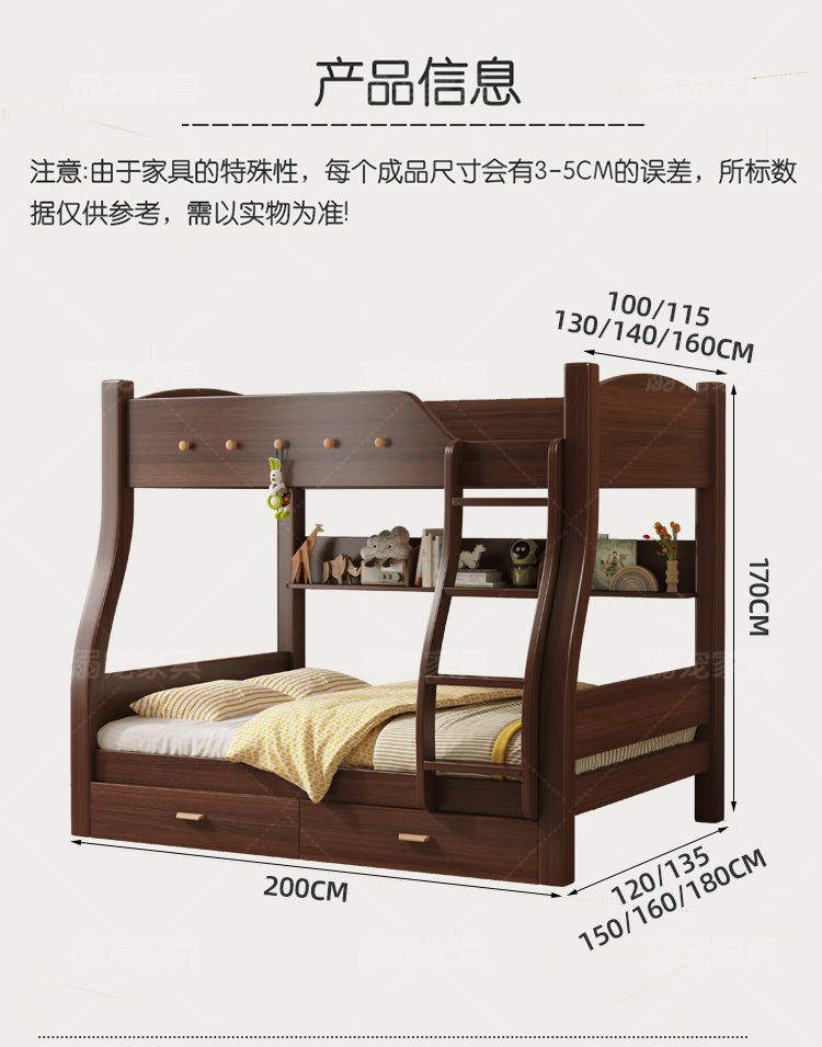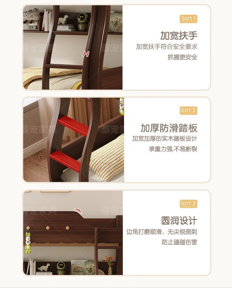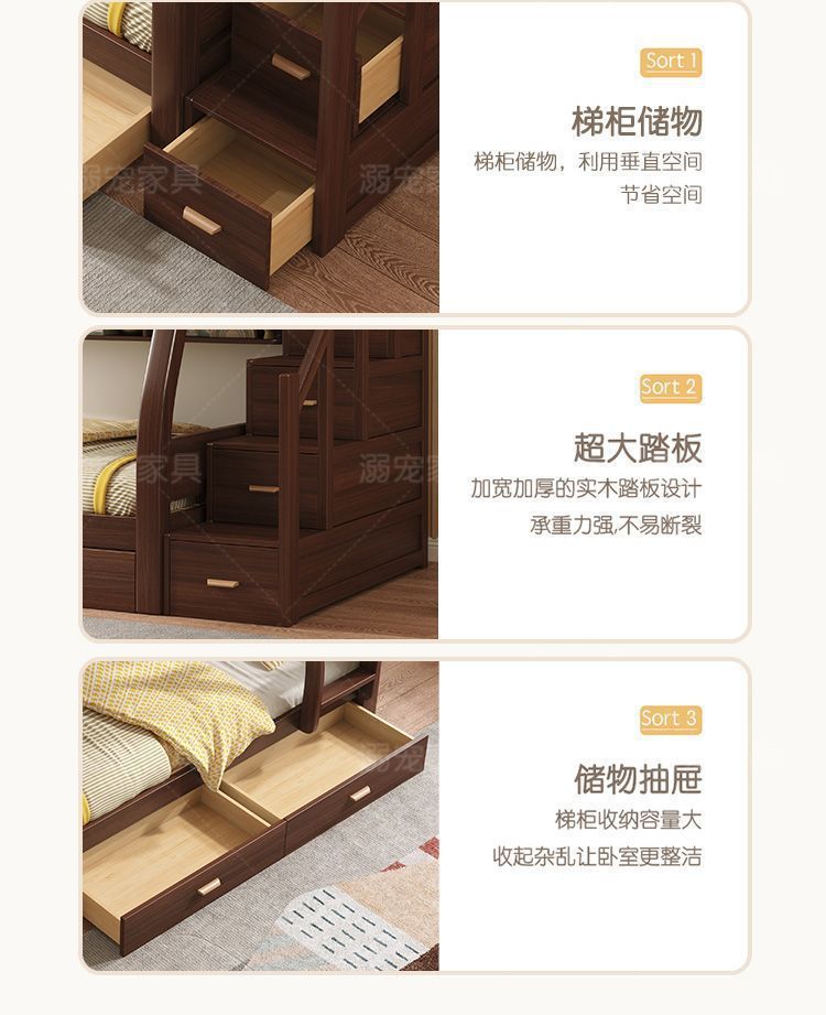 체리 단단한 나무 이층 침대 이층 침대 2층 더블 높고 낮은 다기능 나무 침대 어린이 대담한 저장스토어 가기