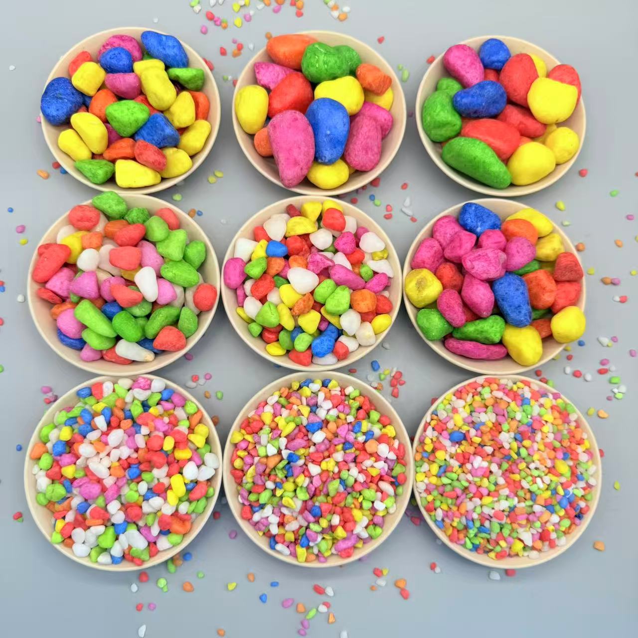 염색된 돌, 다채로운 돌, 모래, 수족관 바닥 모래, 조경 장식용 컬러 스톤, 다육 식물 화분용 포장재 도매