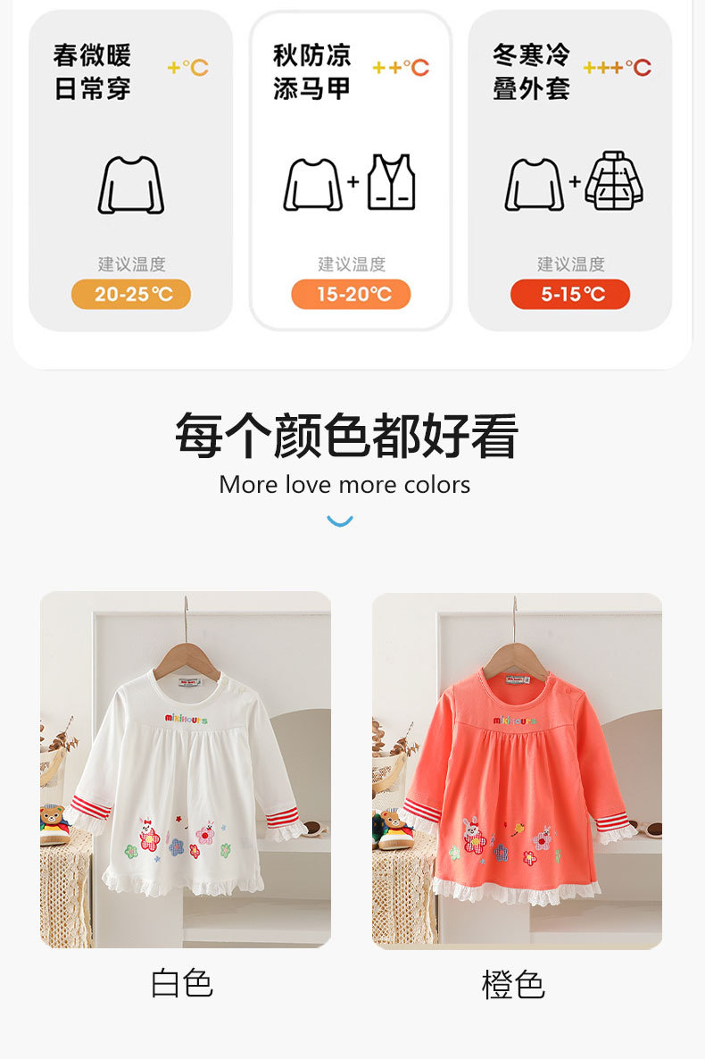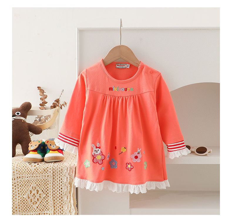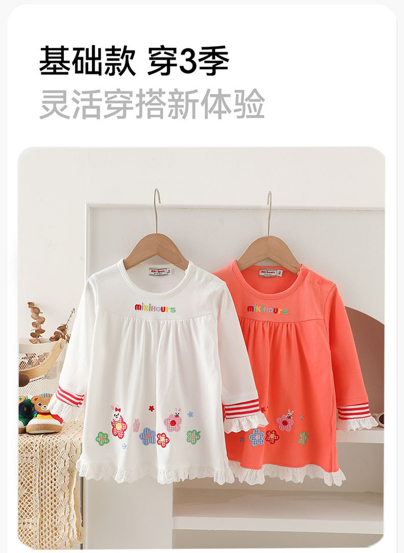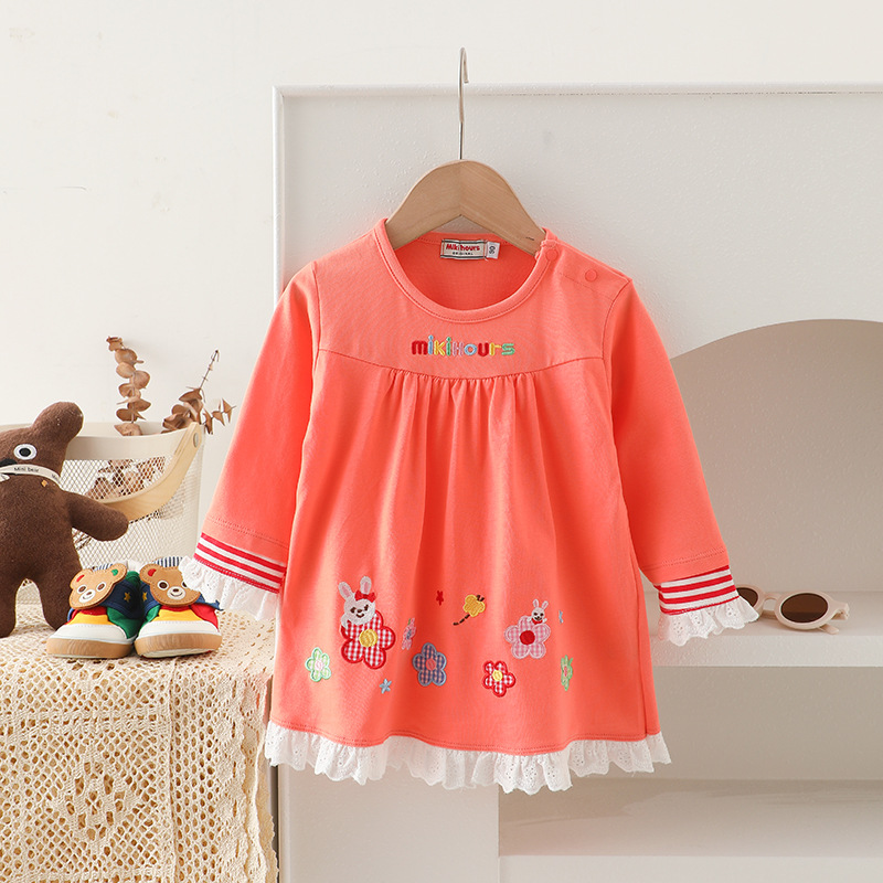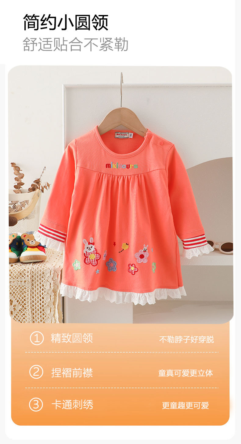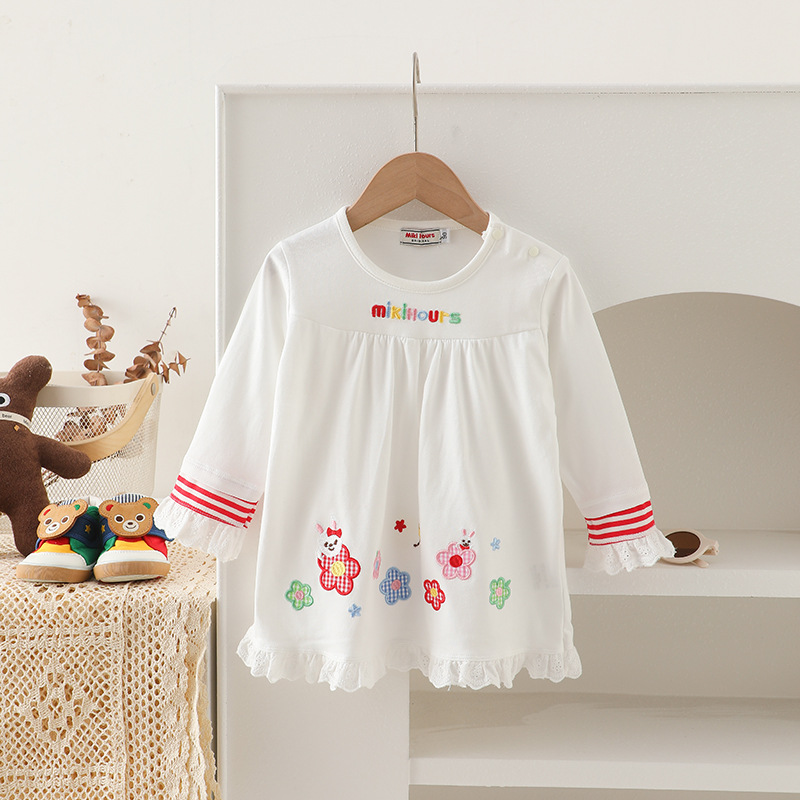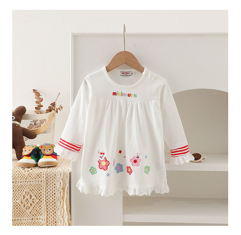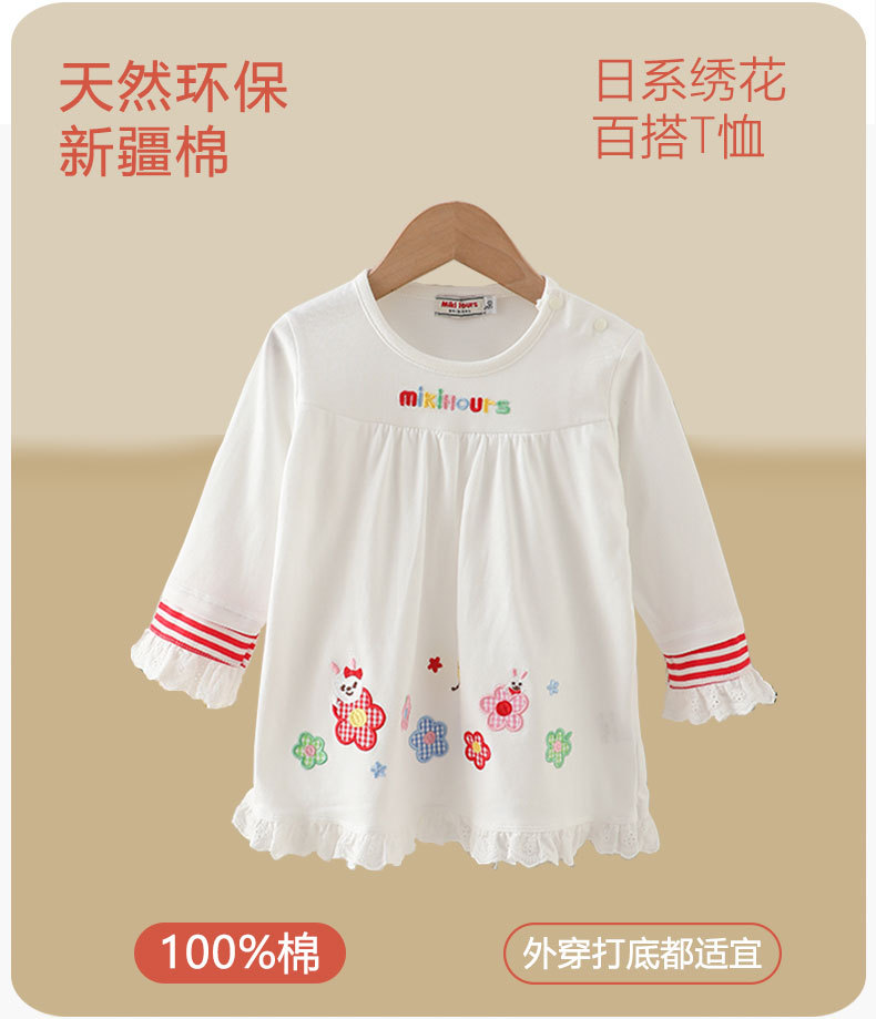미키 아동복 봄 가을 아동용 이너웨어 만화 토끼 자수 레이스 긴팔 티셔츠 여아 상의 라운드넥스토어 가기