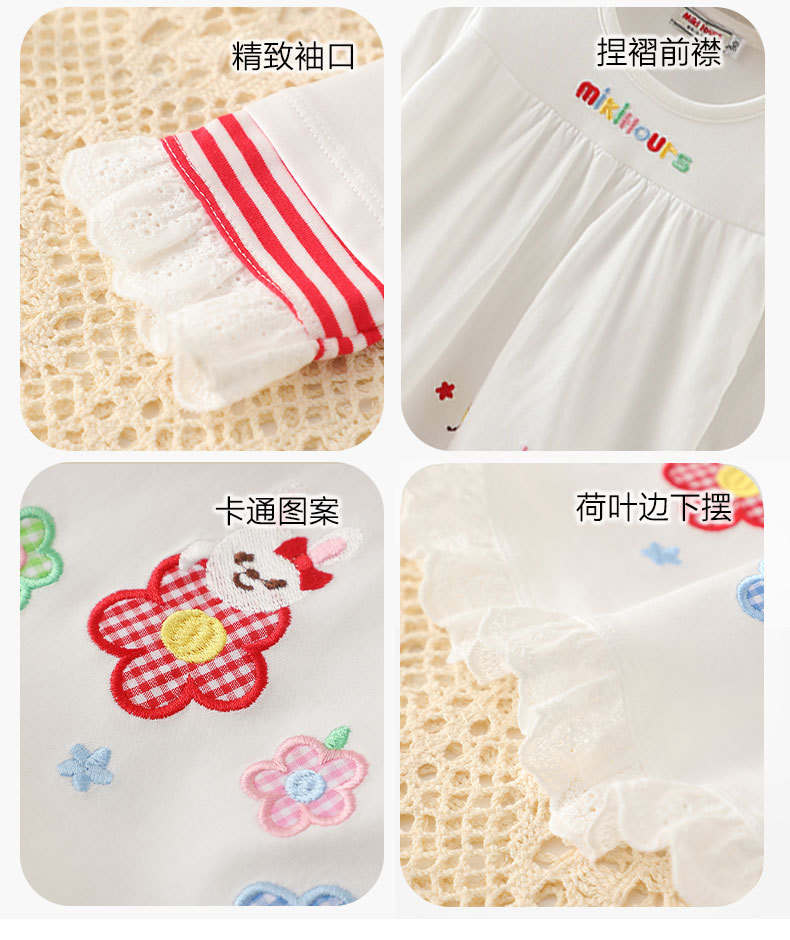 미키 아동복 봄 가을 아동용 이너웨어 만화 토끼 자수 레이스 긴팔 티셔츠 여아 상의 라운드넥