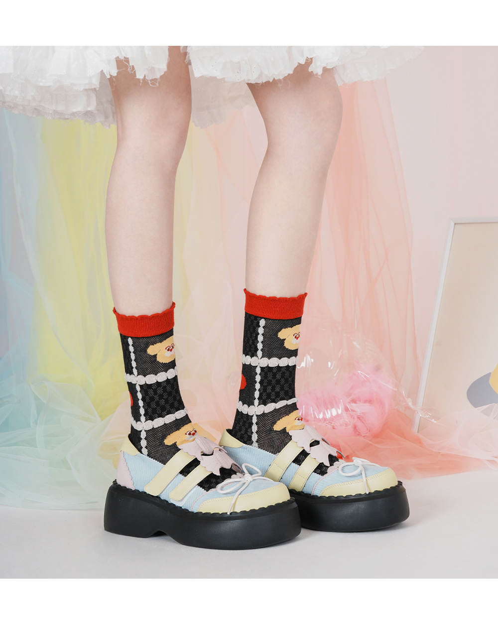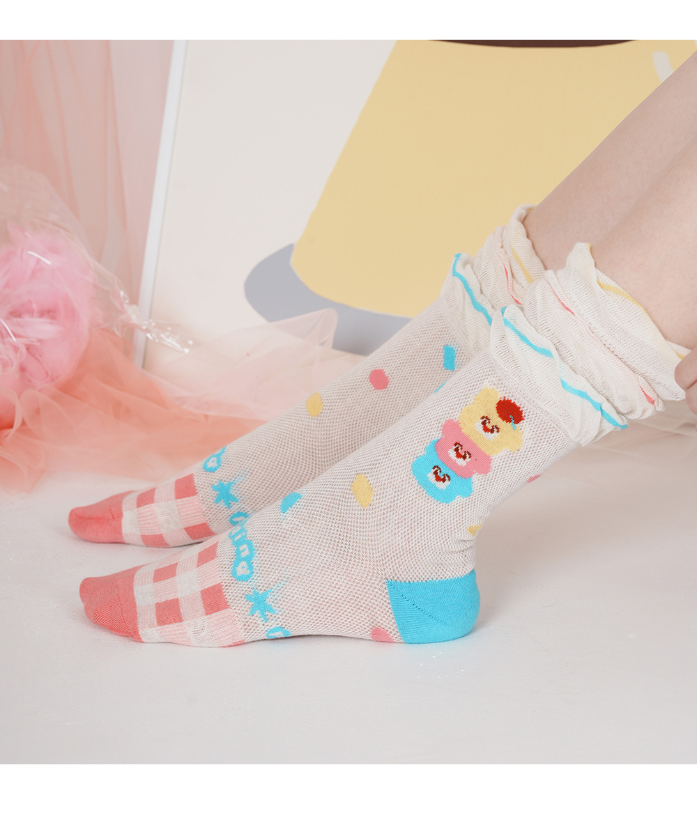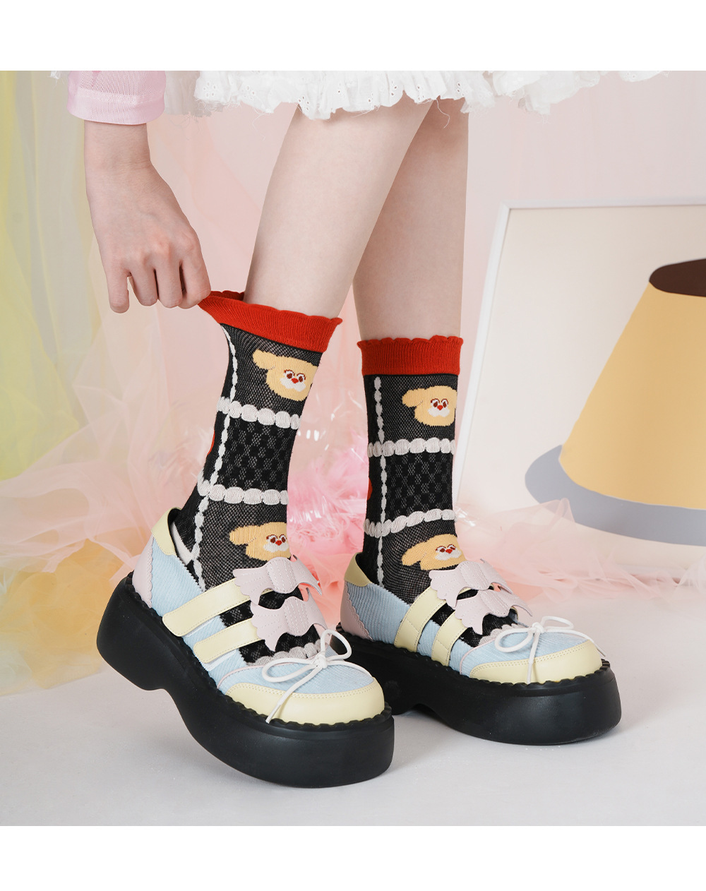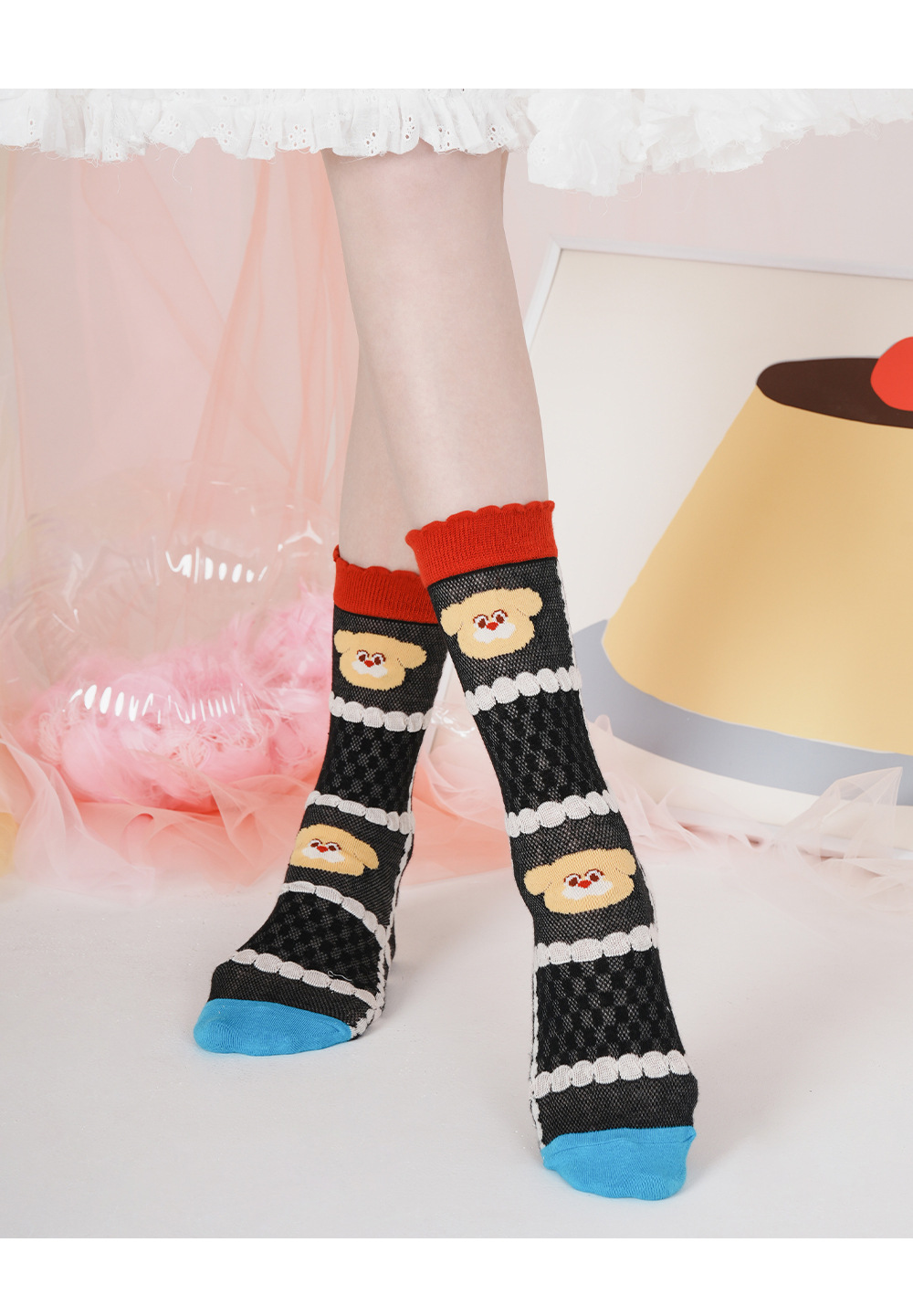 여성용 여름 양말, 남성용 버블 로우 입 얇은 유리 실크 종아리 양말, 귀여운 만화 일러스트, 통기성 트렌디 양말, 면