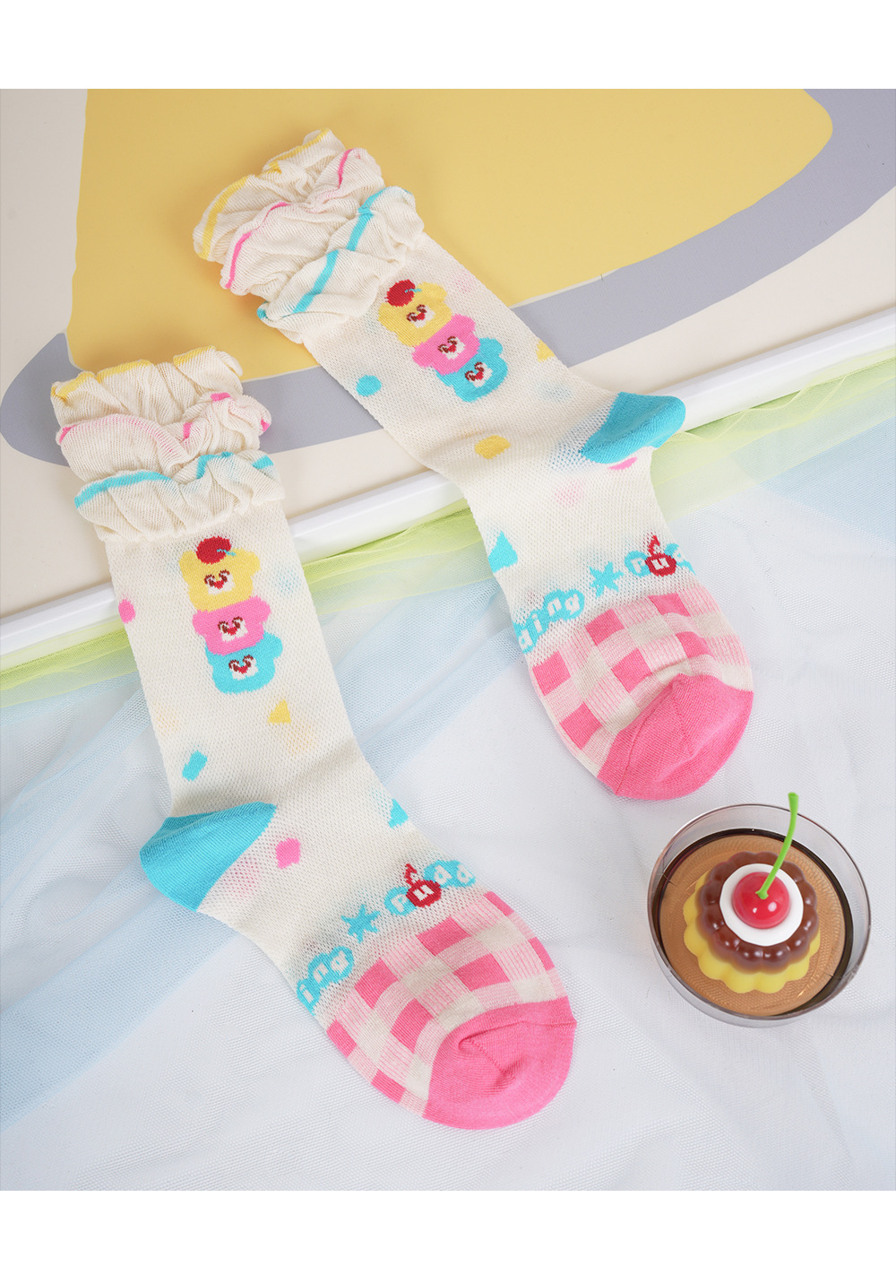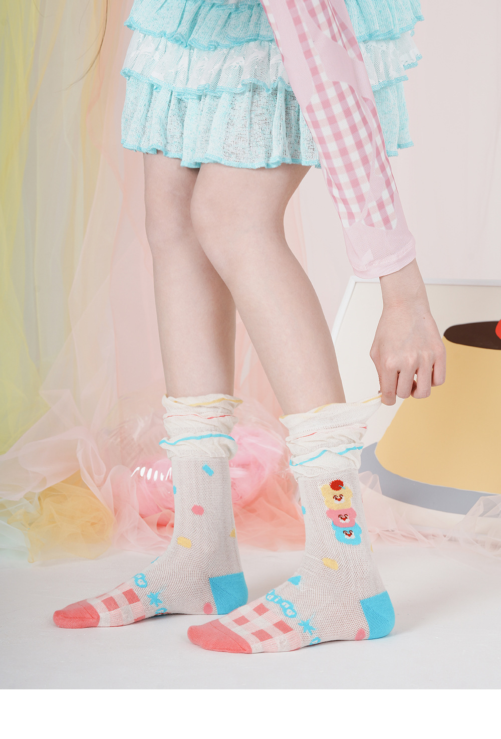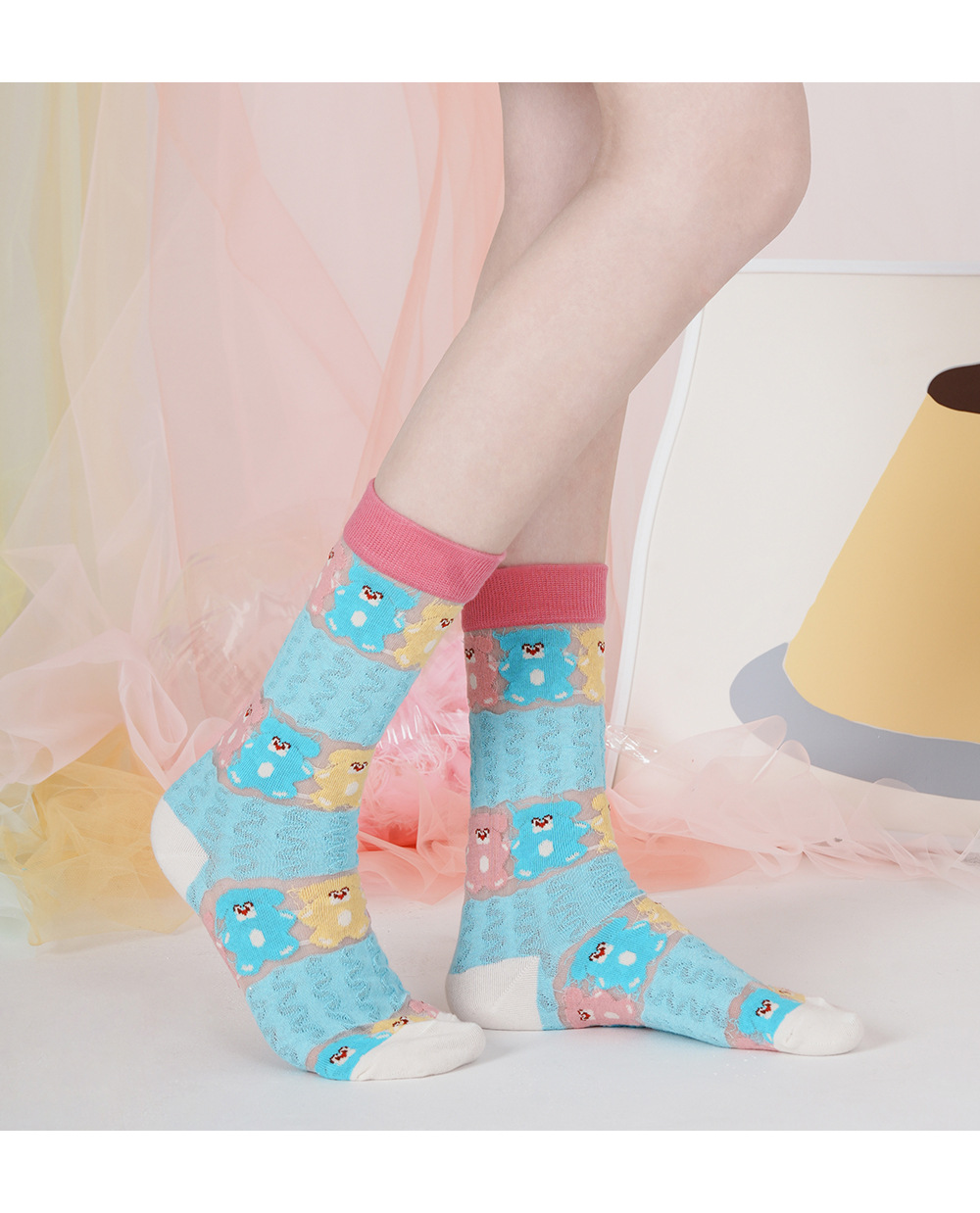 여성용 여름 양말, 남성용 버블 로우 입 얇은 유리 실크 종아리 양말, 귀여운 만화 일러스트, 통기성 트렌디 양말, 면