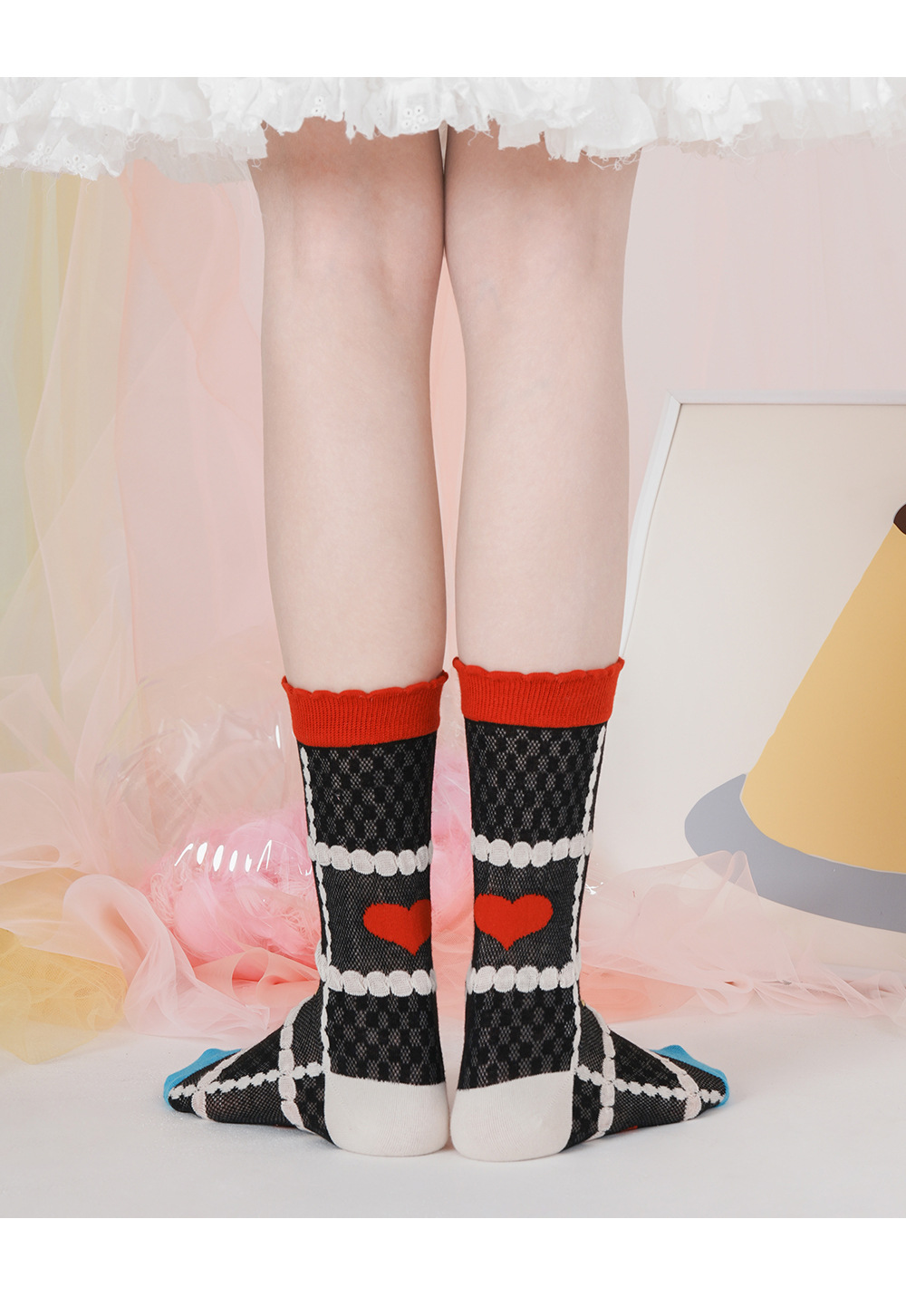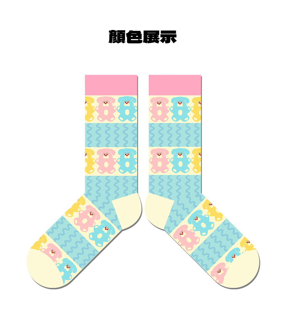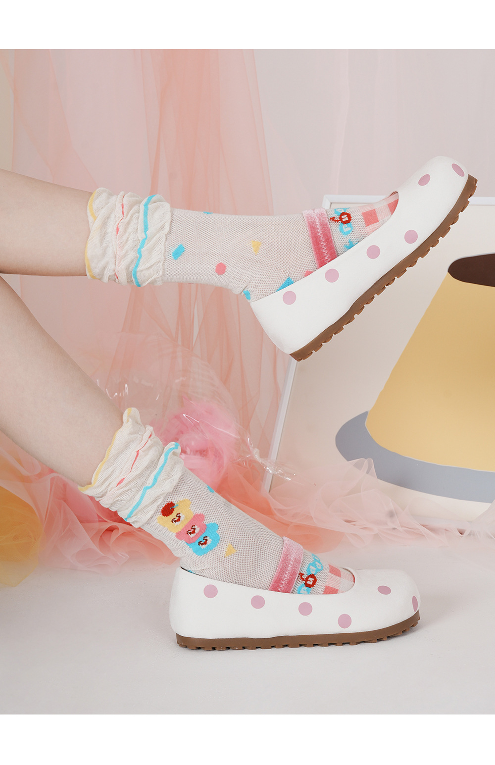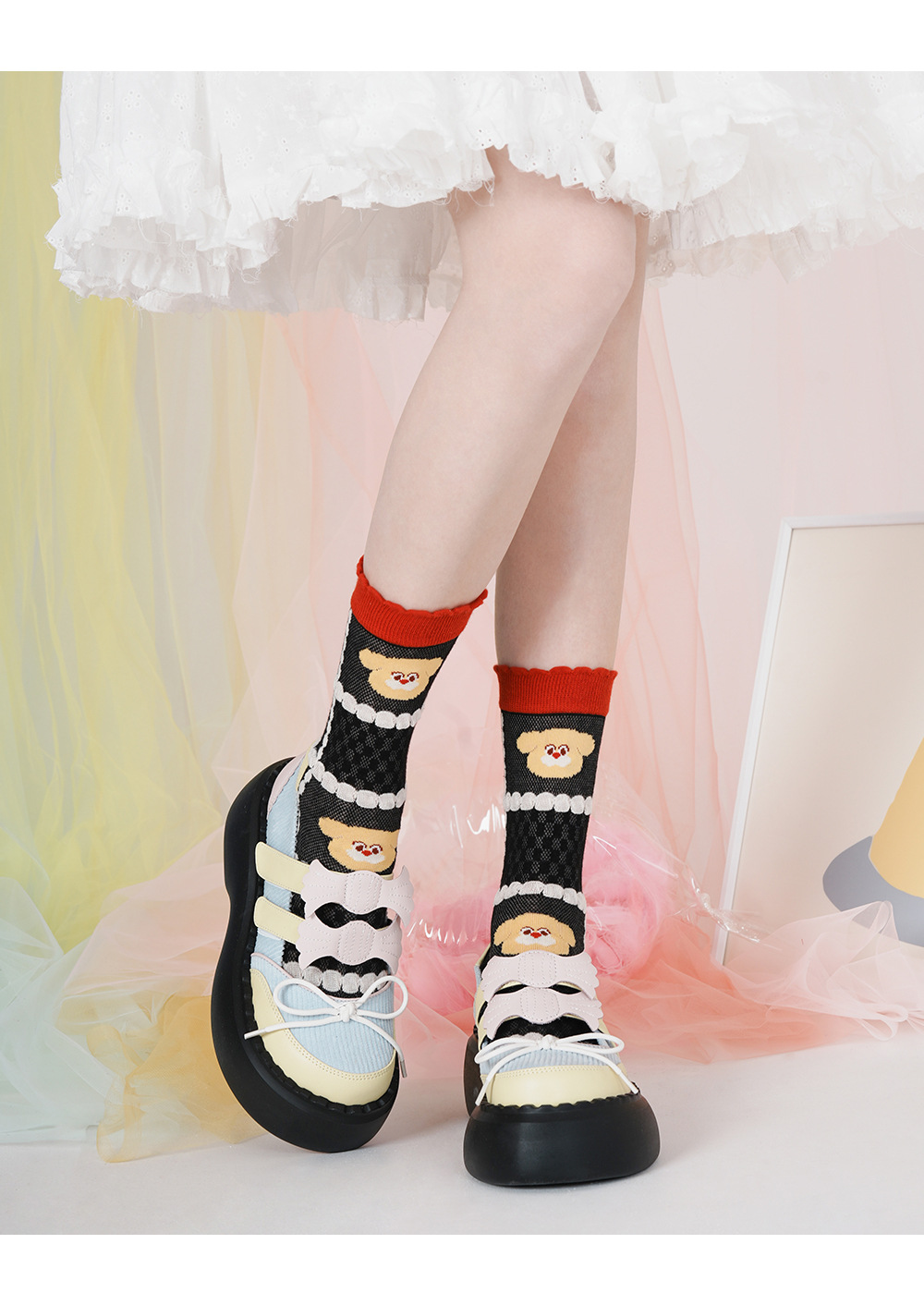 여성용 여름 양말, 남성용 버블 로우 입 얇은 유리 실크 종아리 양말, 귀여운 만화 일러스트, 통기성 트렌디 양말, 면스토어 가기