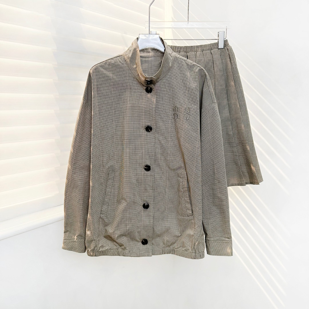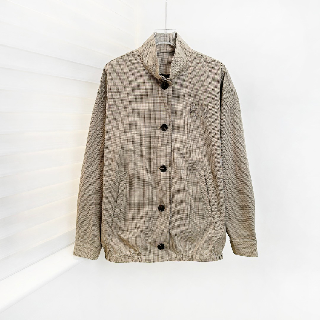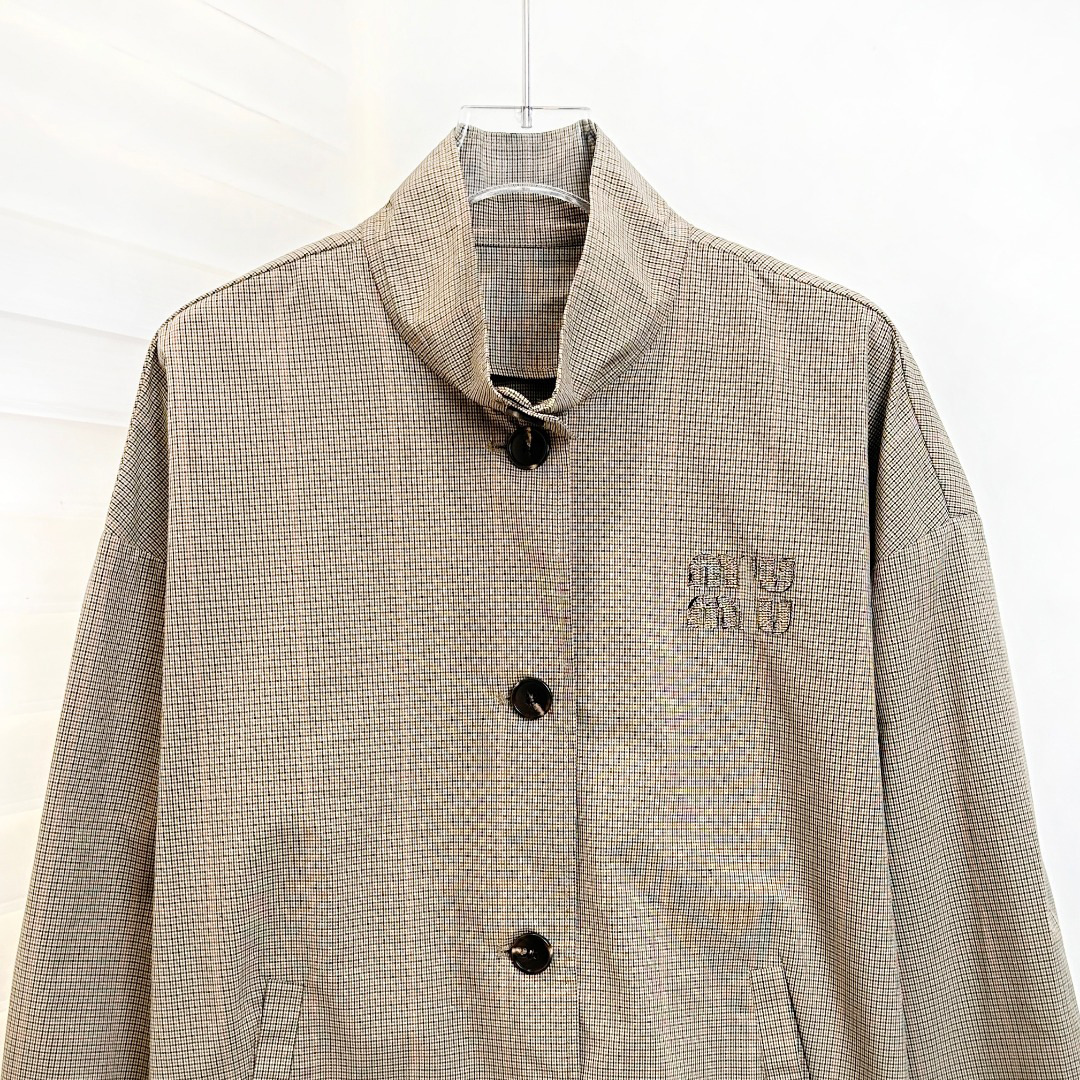 특가 상품은 반품, 교환이 불가합니다. 25 초가을 미우 체크무늬 로고 스타일 루즈핏 스탠드 칼라 재킷 여성용스토어 가기