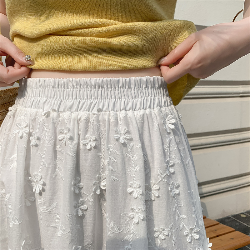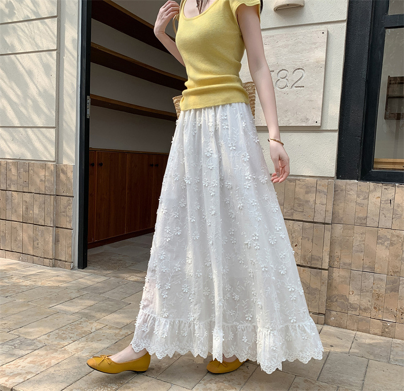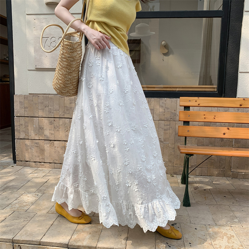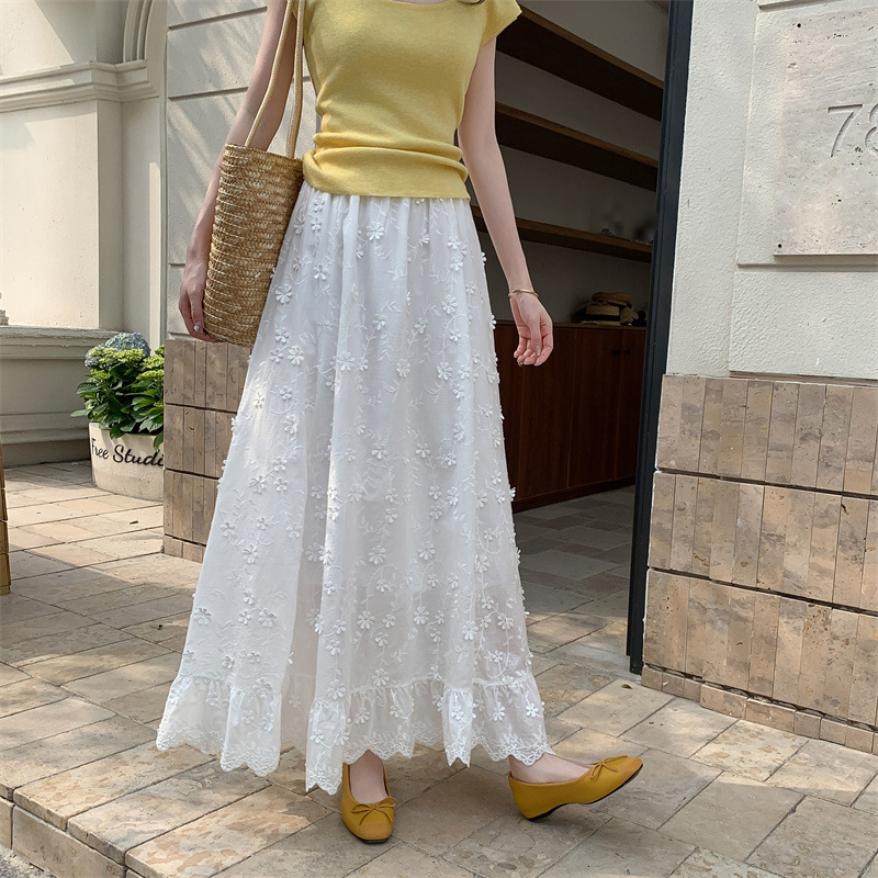 리얼 샷 중공업 3 차원 꽃 화이트 스커트 여성의 봄과 가을 한국 스커트 높은 허리 슬리밍 긴 스커트스토어 가기