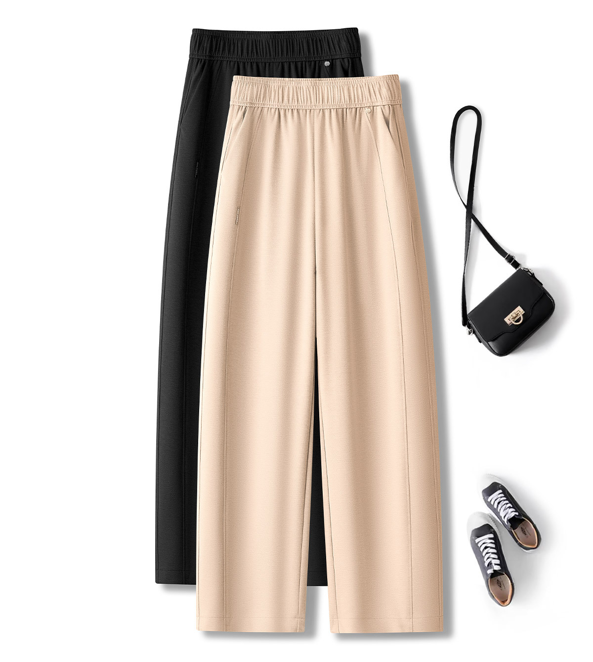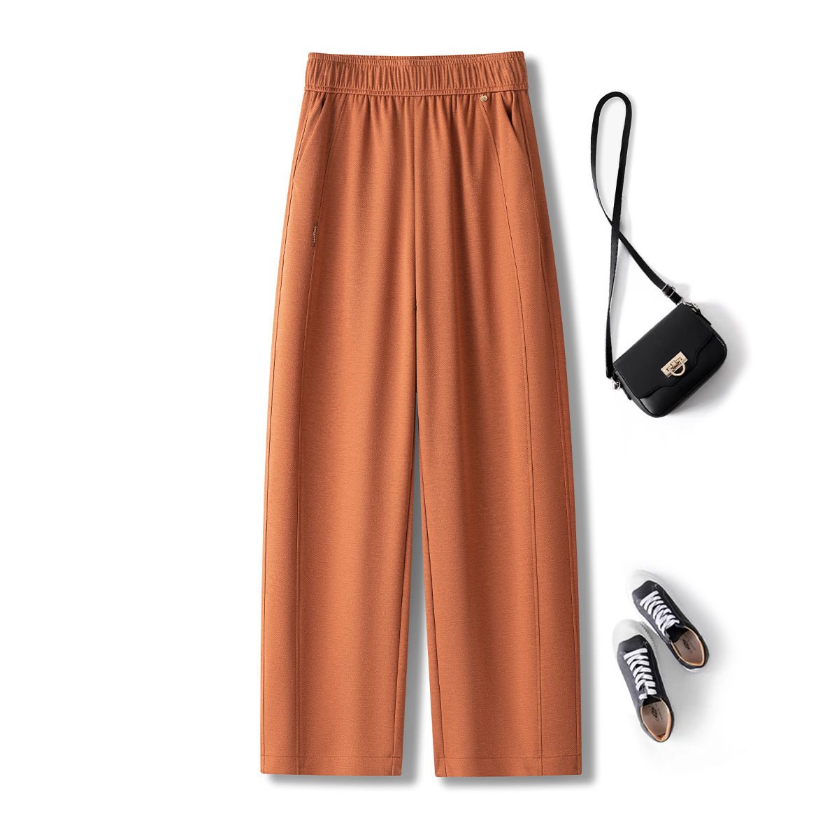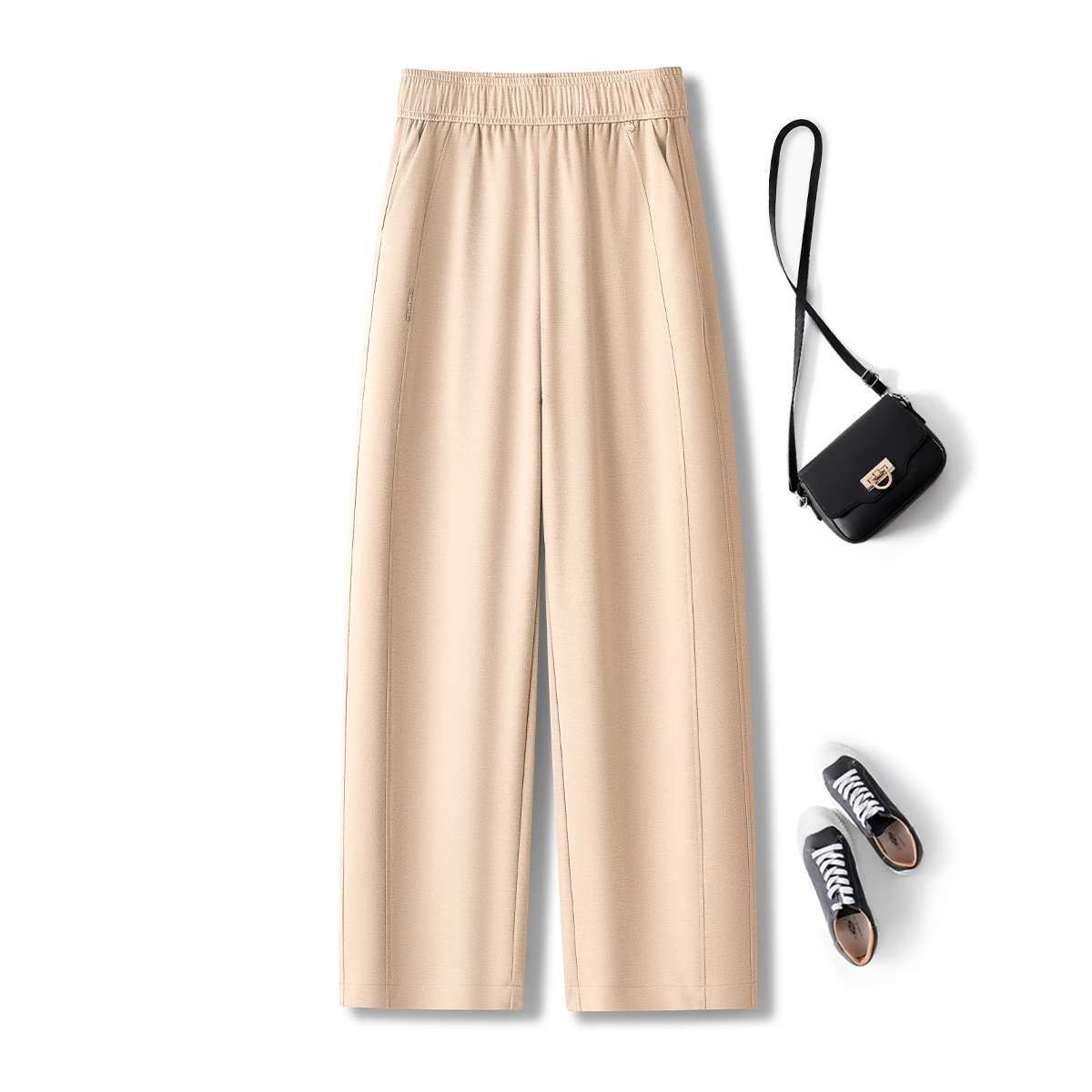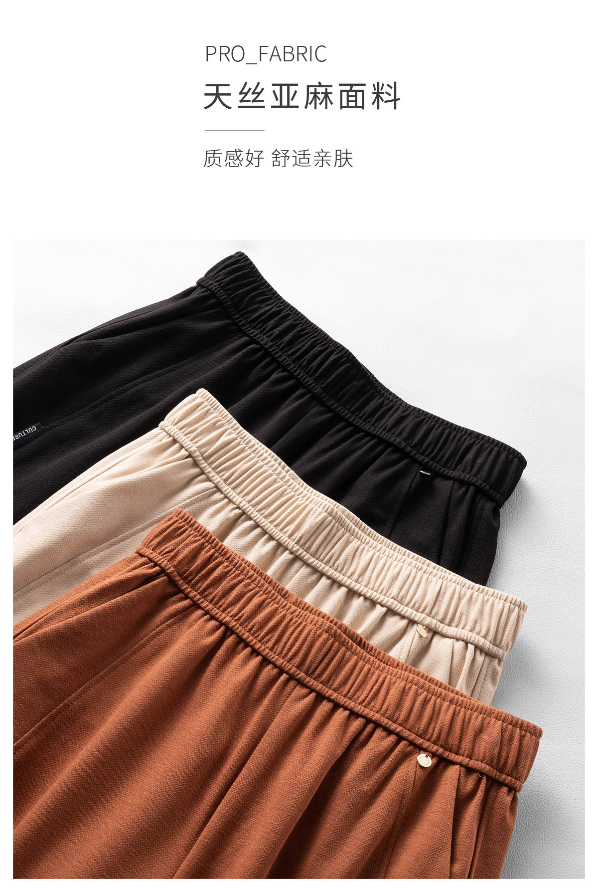 고급 텐셀 리넨 캐주얼 바지 여성의 봄 팔꿈치 허리 통기성 마체테 바지 2025 새로운 넓은 다리 자른 바지