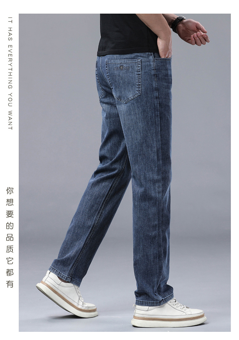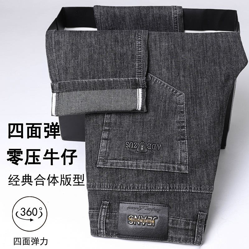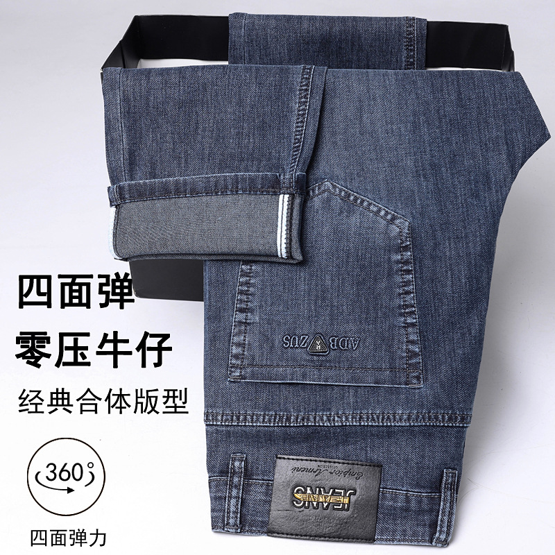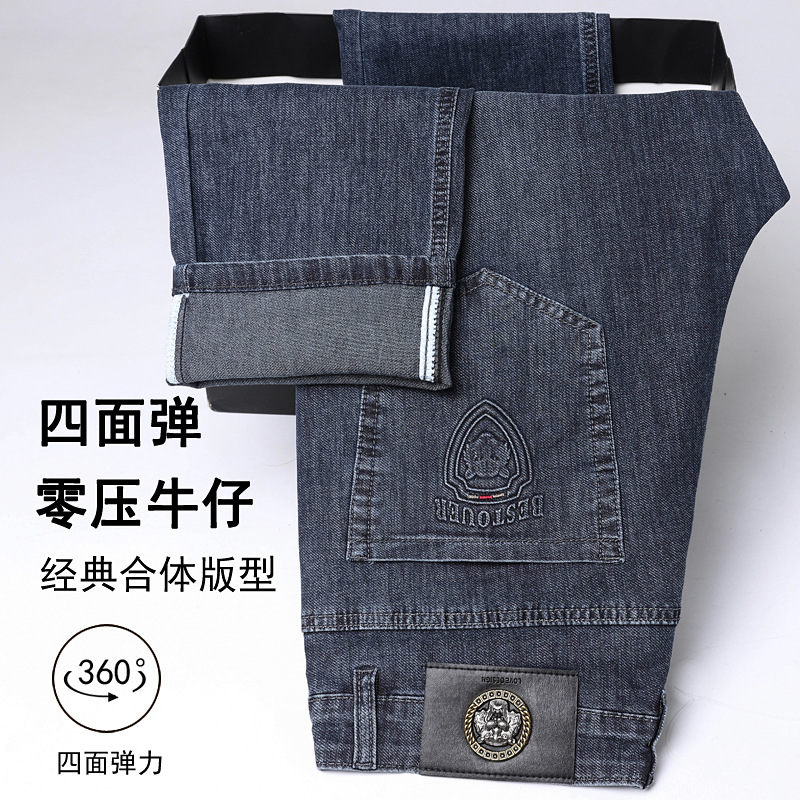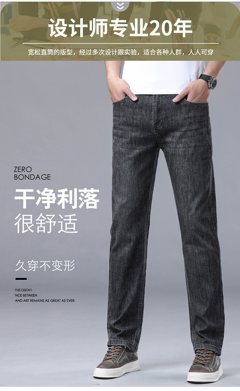 하이 엔드 스트레치 청바지 남성 하이 엔드 스트레이트 루즈 얇은 캐주얼 데님 롱 바지 남성 패션스토어 가기
