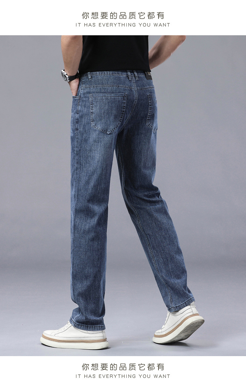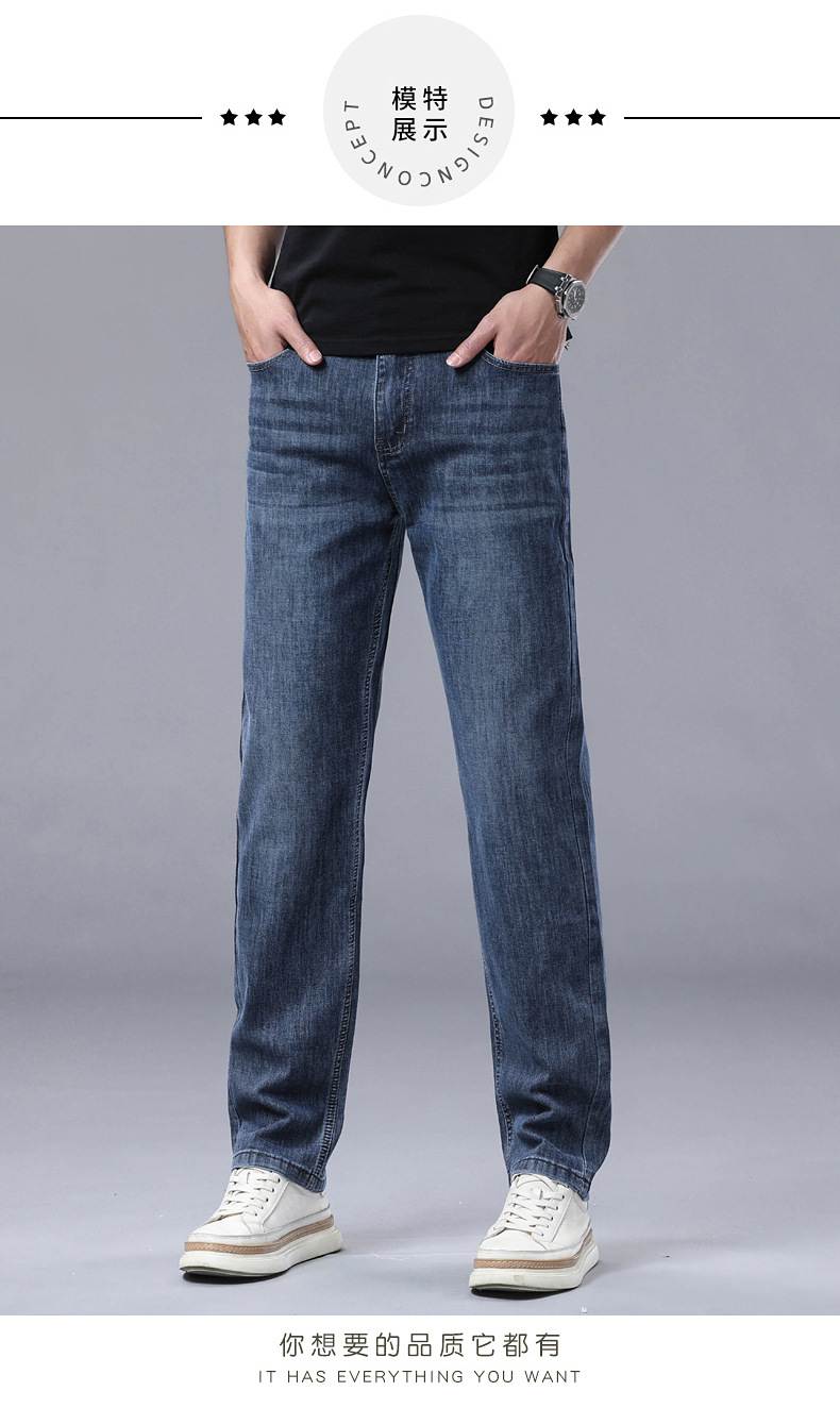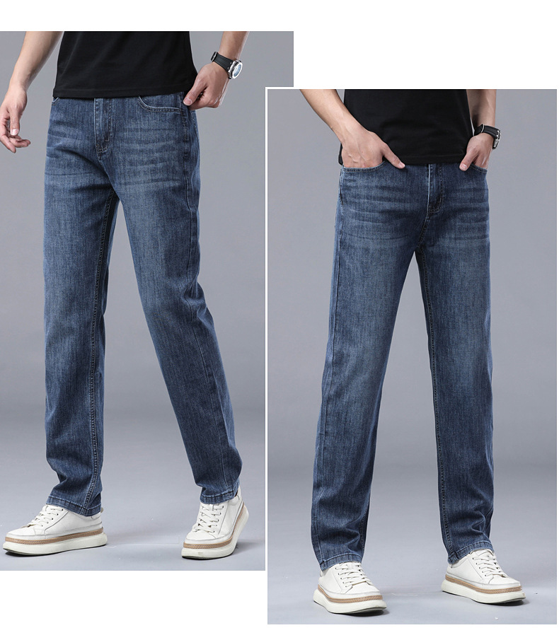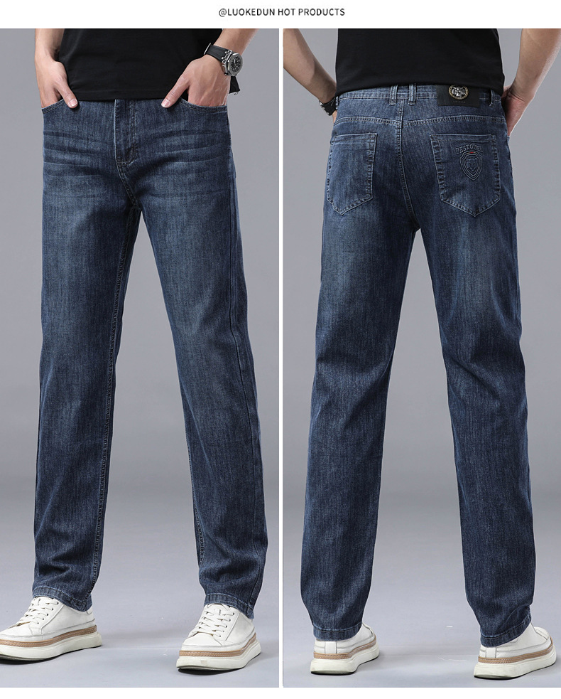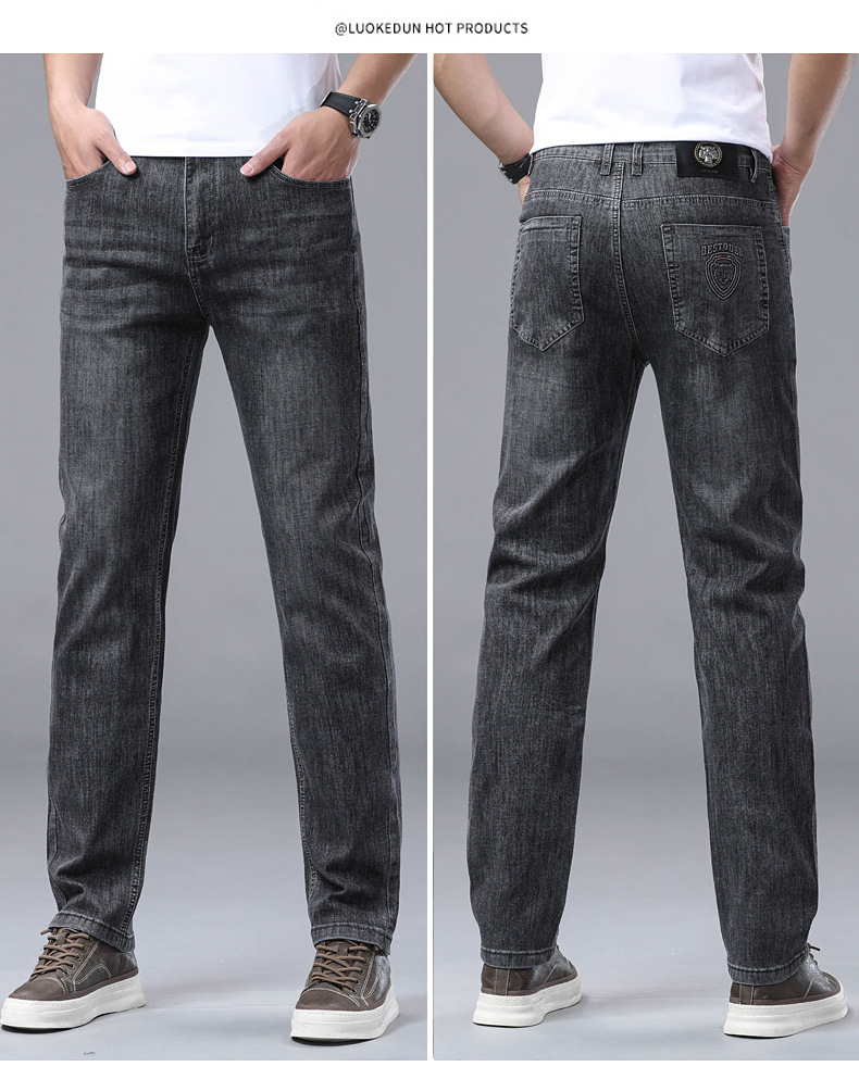 하이 엔드 스트레치 청바지 남성 하이 엔드 스트레이트 루즈 얇은 캐주얼 데님 롱 바지 남성 패션스토어 가기