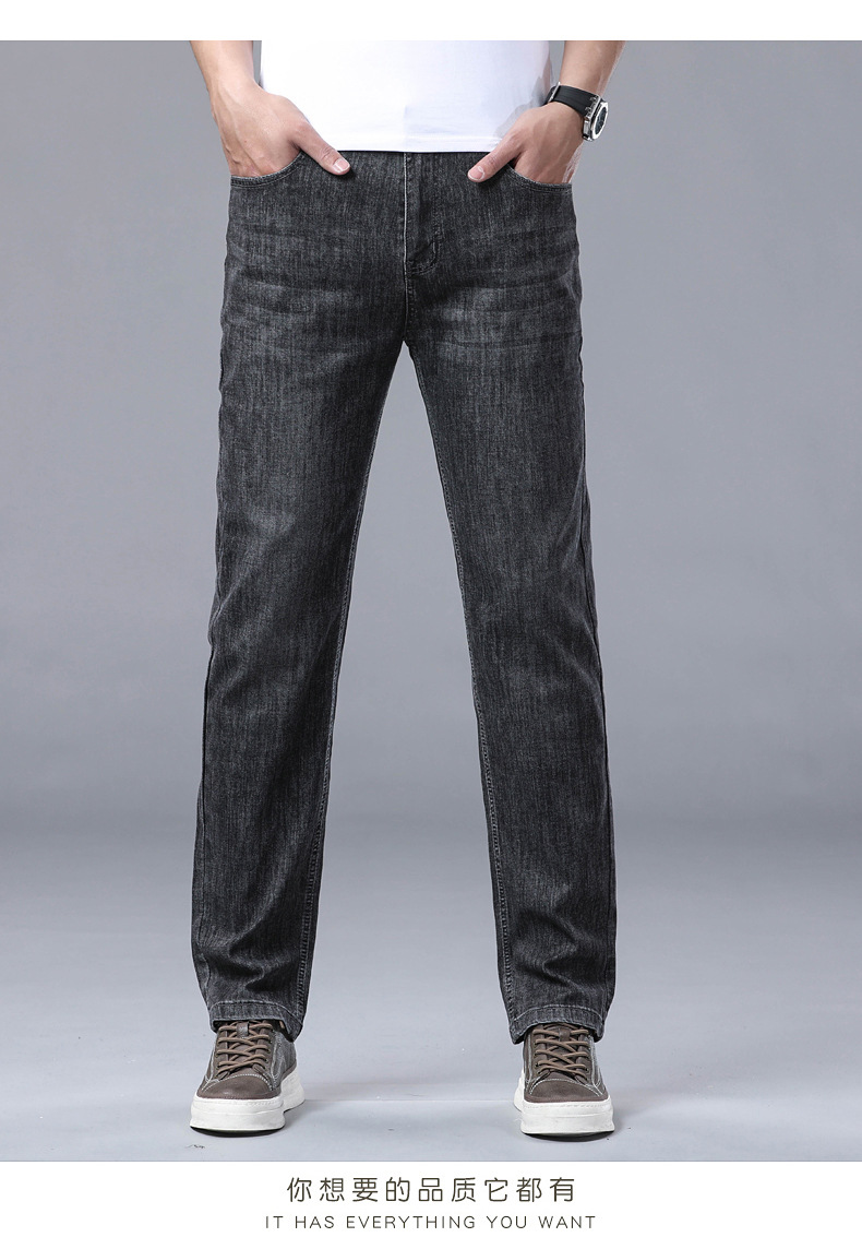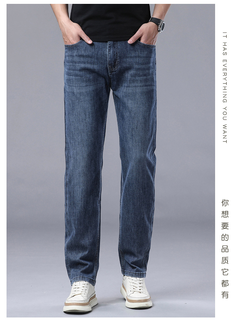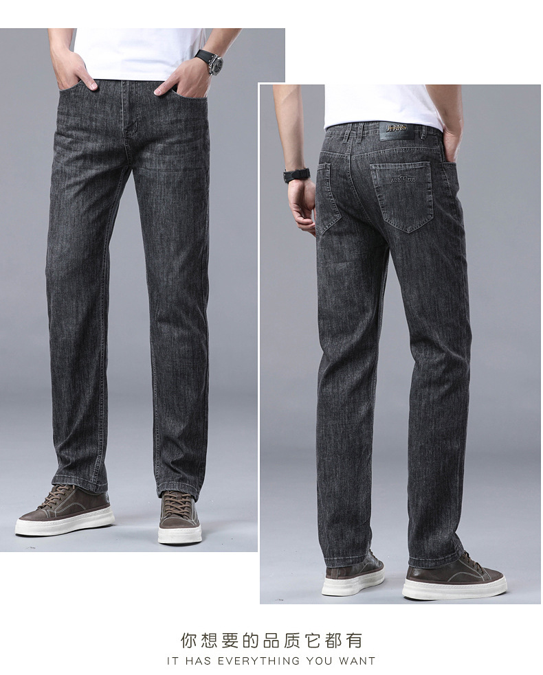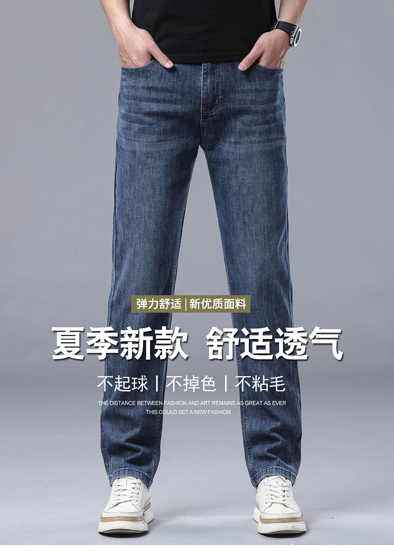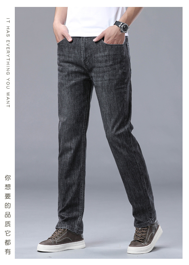 하이 엔드 스트레치 청바지 남성 하이 엔드 스트레이트 루즈 얇은 캐주얼 데님 롱 바지 남성 패션스토어 가기