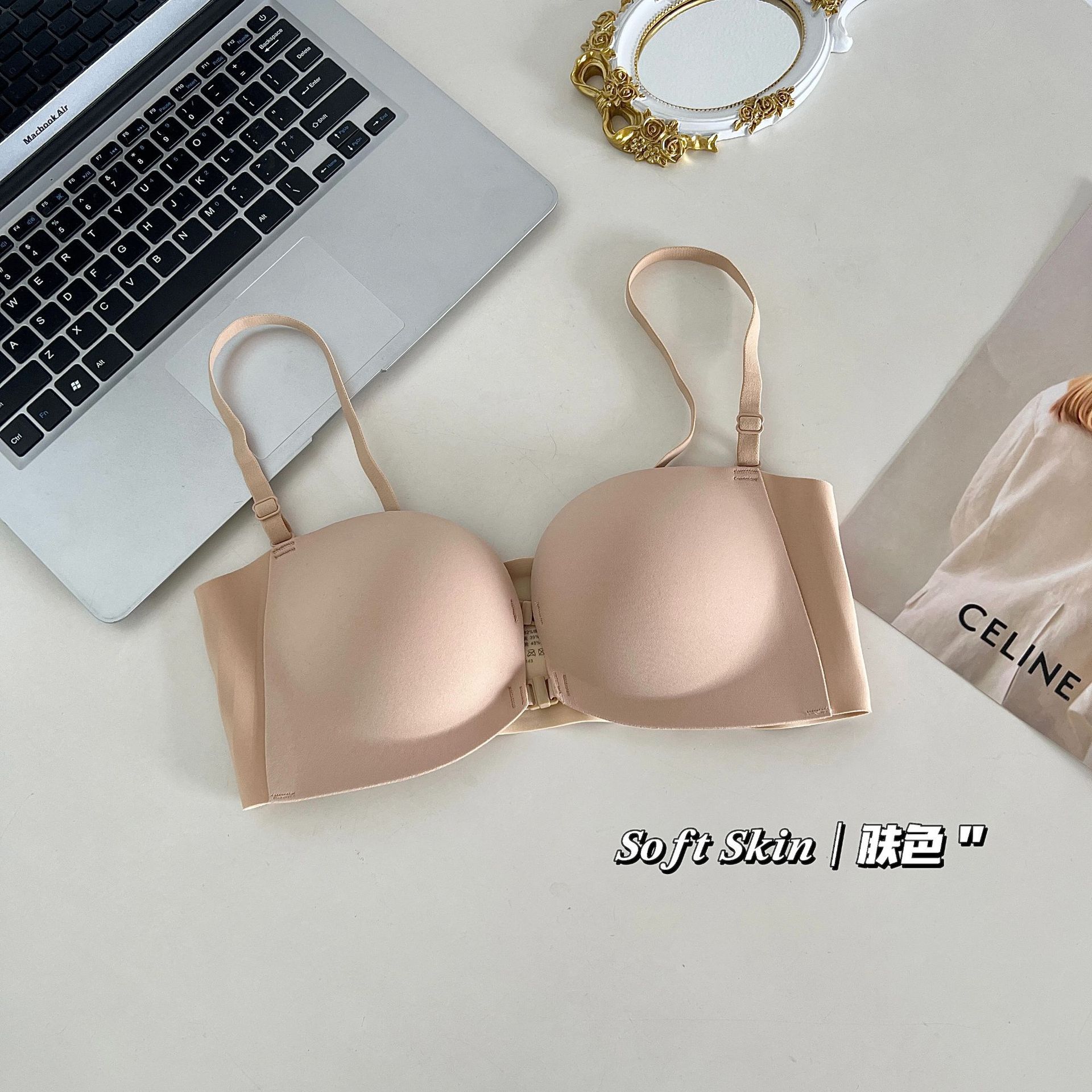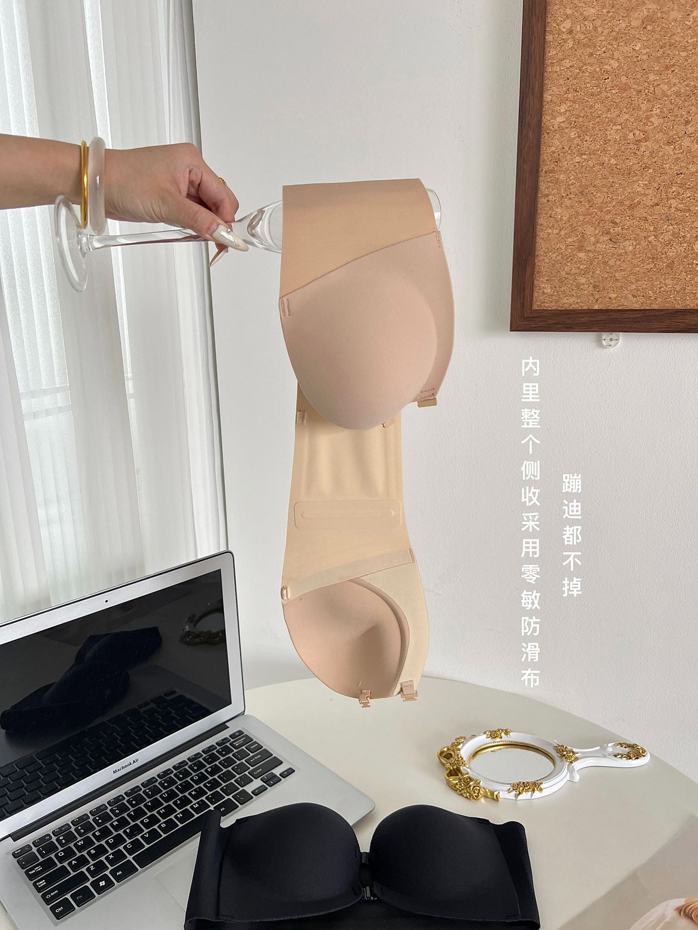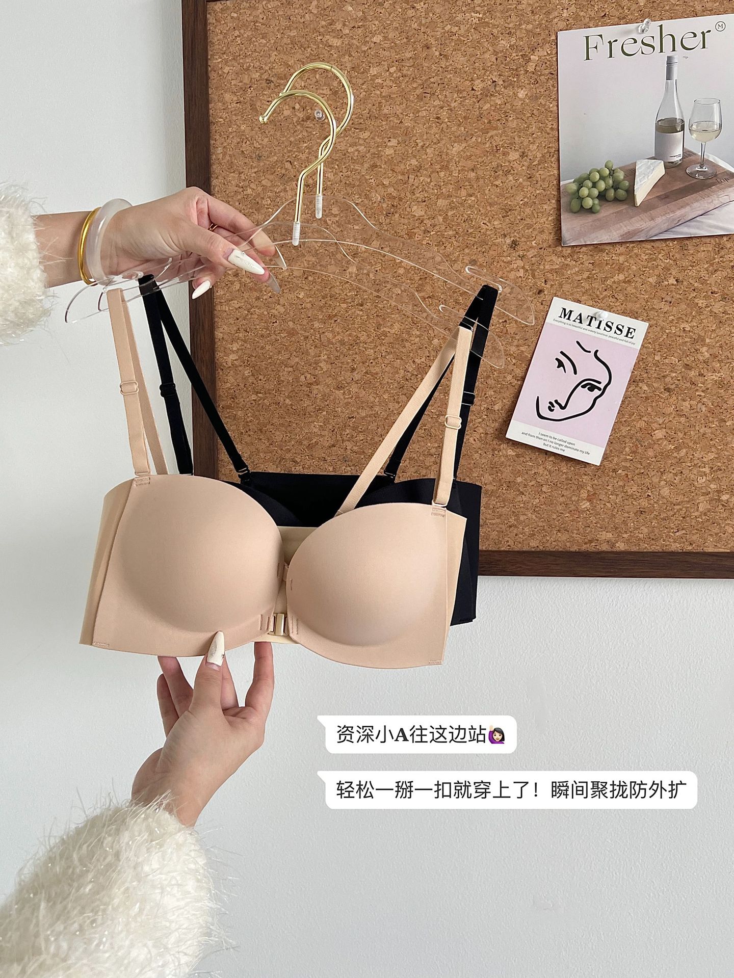 오리지널 Traceless 더블 프론트 버클 스트랩리스 속옷 여성용 보이지 않는 미끄럼 방지 튜브 탑 아름다운 등 작은 가슴 푸시 업 큰 텍스트 브래지어스토어 가기