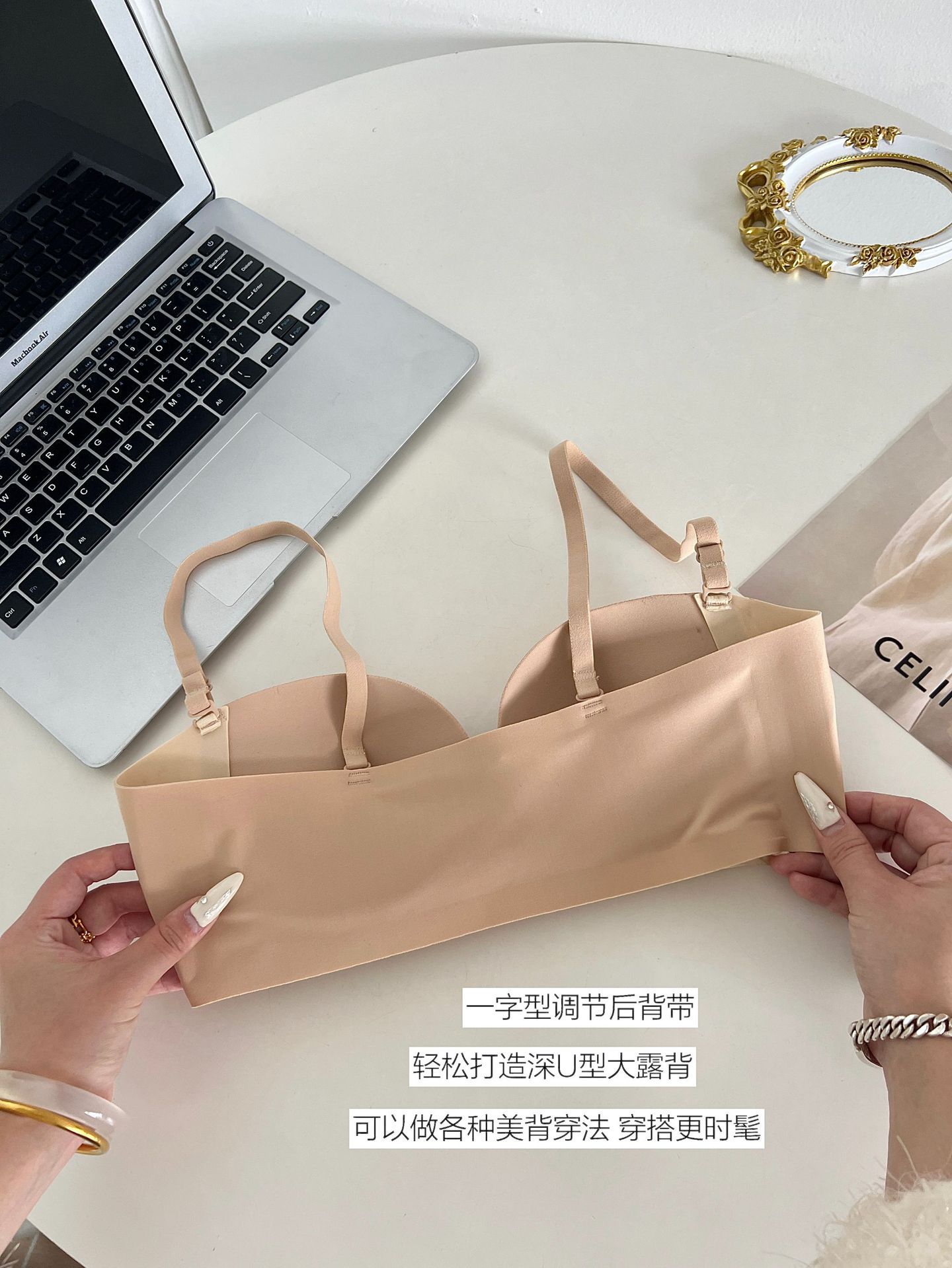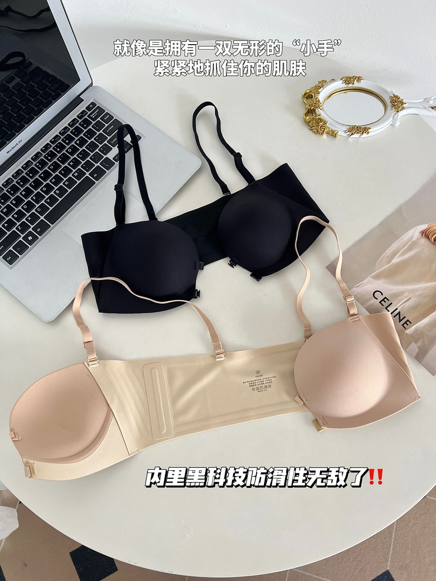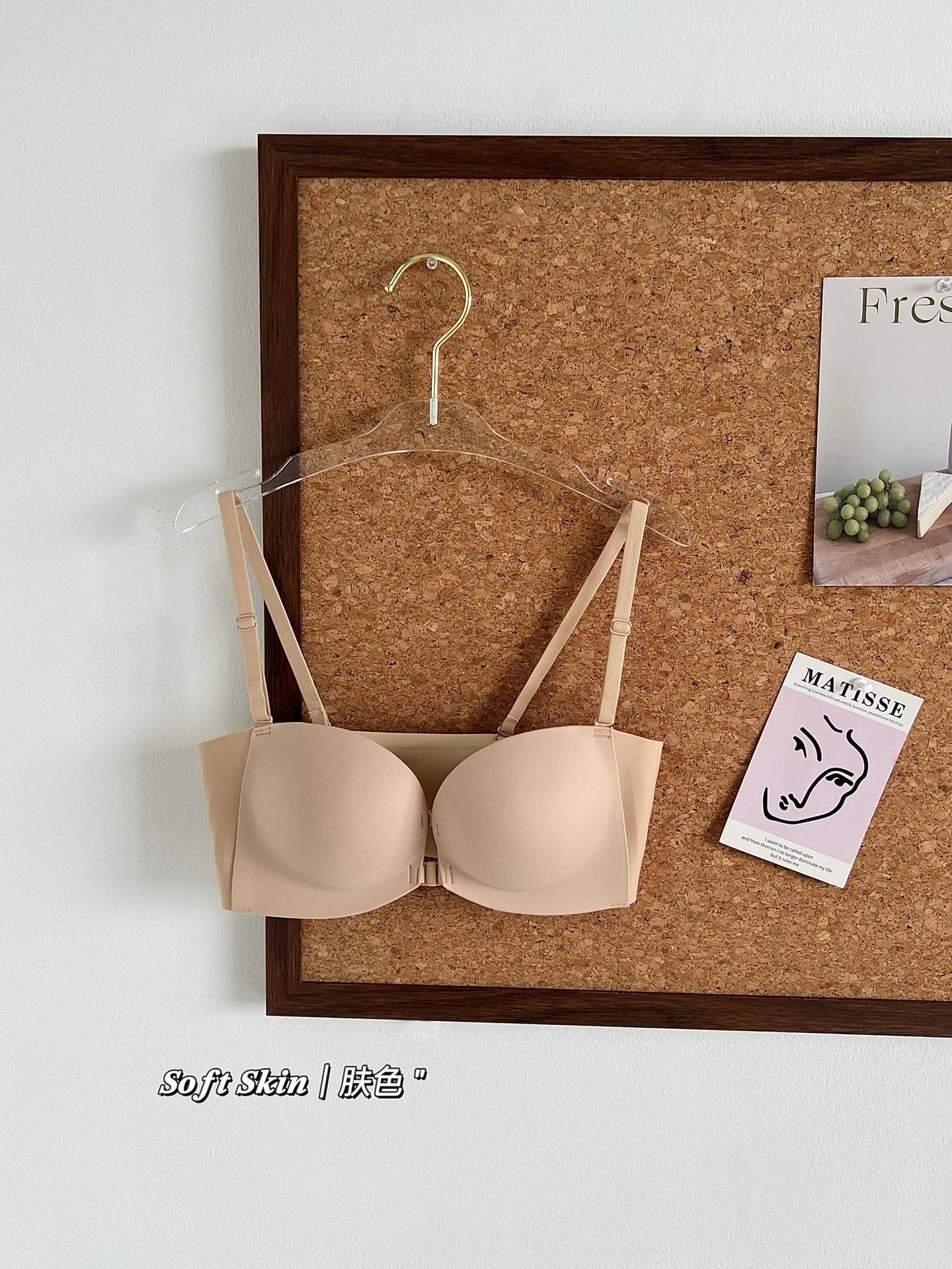 오리지널 Traceless 더블 프론트 버클 스트랩리스 속옷 여성용 보이지 않는 미끄럼 방지 튜브 탑 아름다운 등 작은 가슴 푸시 업 큰 텍스트 브래지어스토어 가기