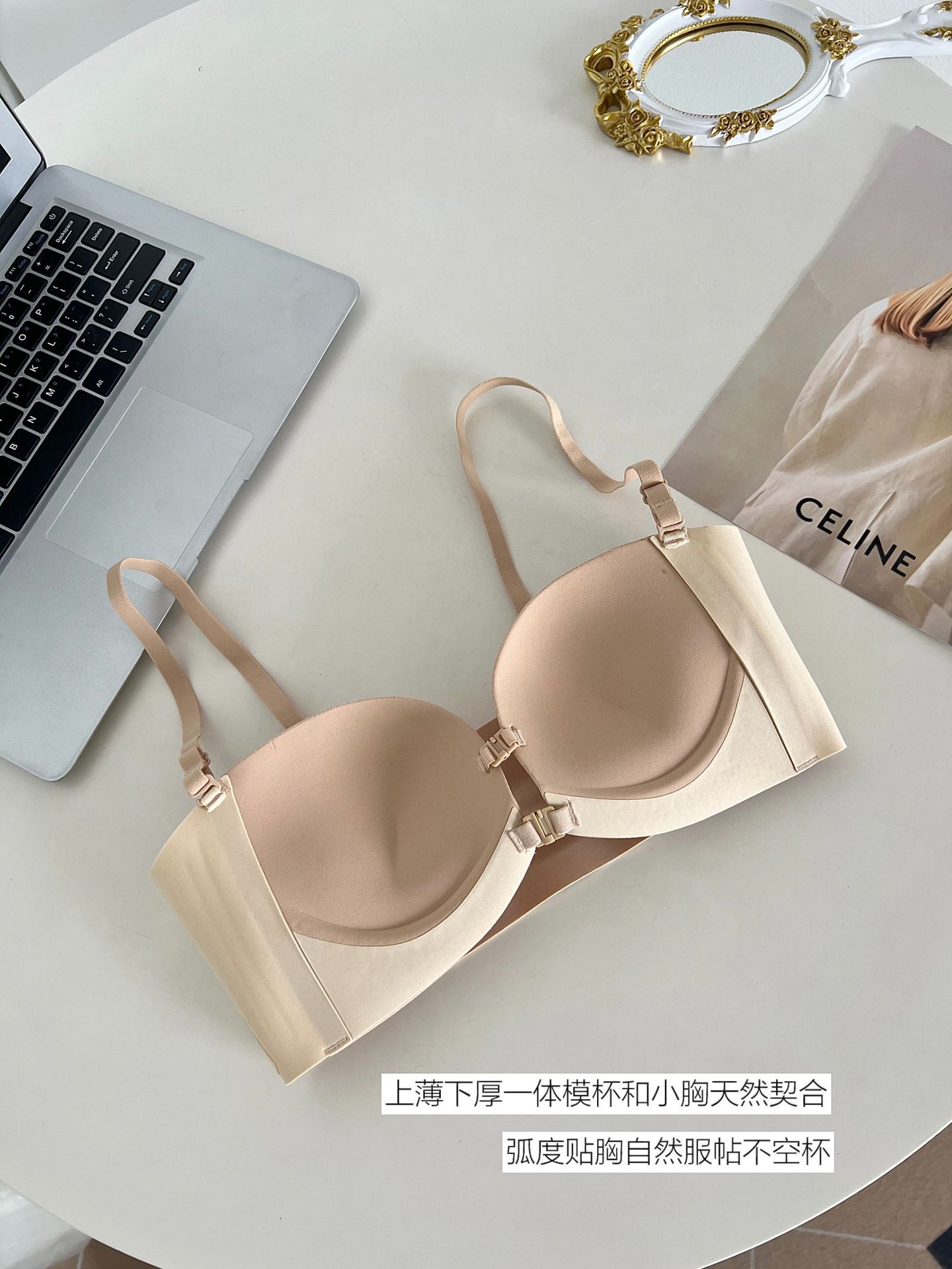 오리지널 Traceless 더블 프론트 버클 스트랩리스 속옷 여성용 보이지 않는 미끄럼 방지 튜브 탑 아름다운 등 작은 가슴 푸시 업 큰 텍스트 브래지어