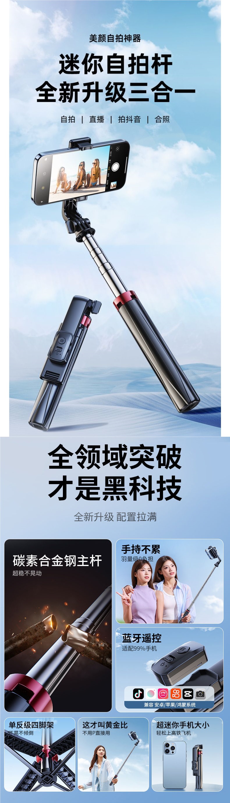 신형 [4피트 손떨림 방지] 셀카봉 4피트 라이브 방송 스탠드 셀카 라이브 방송 다기능 휴대폰 스탠드