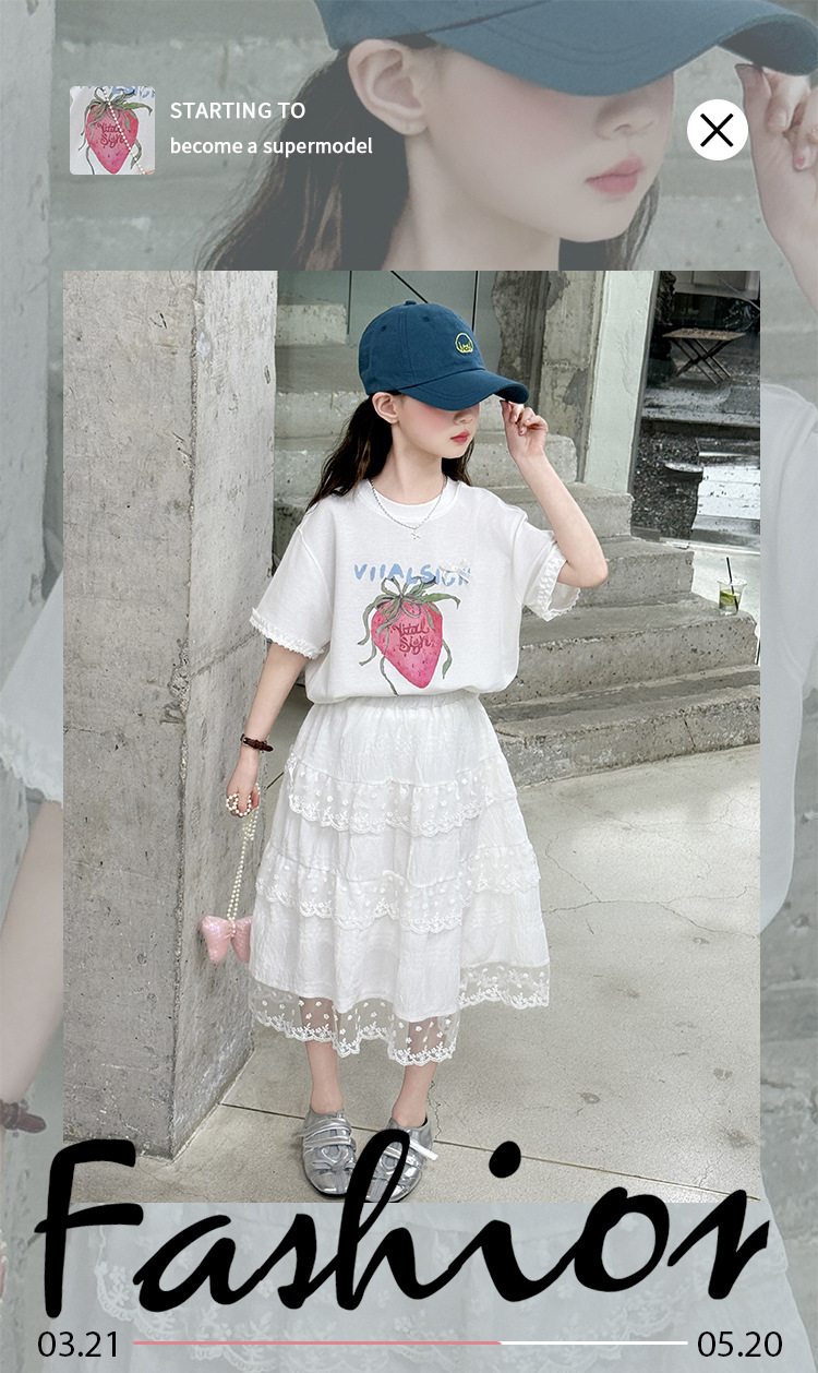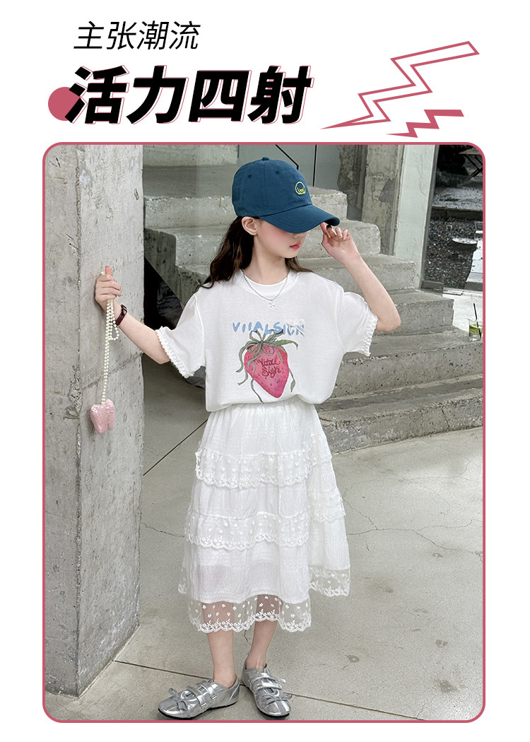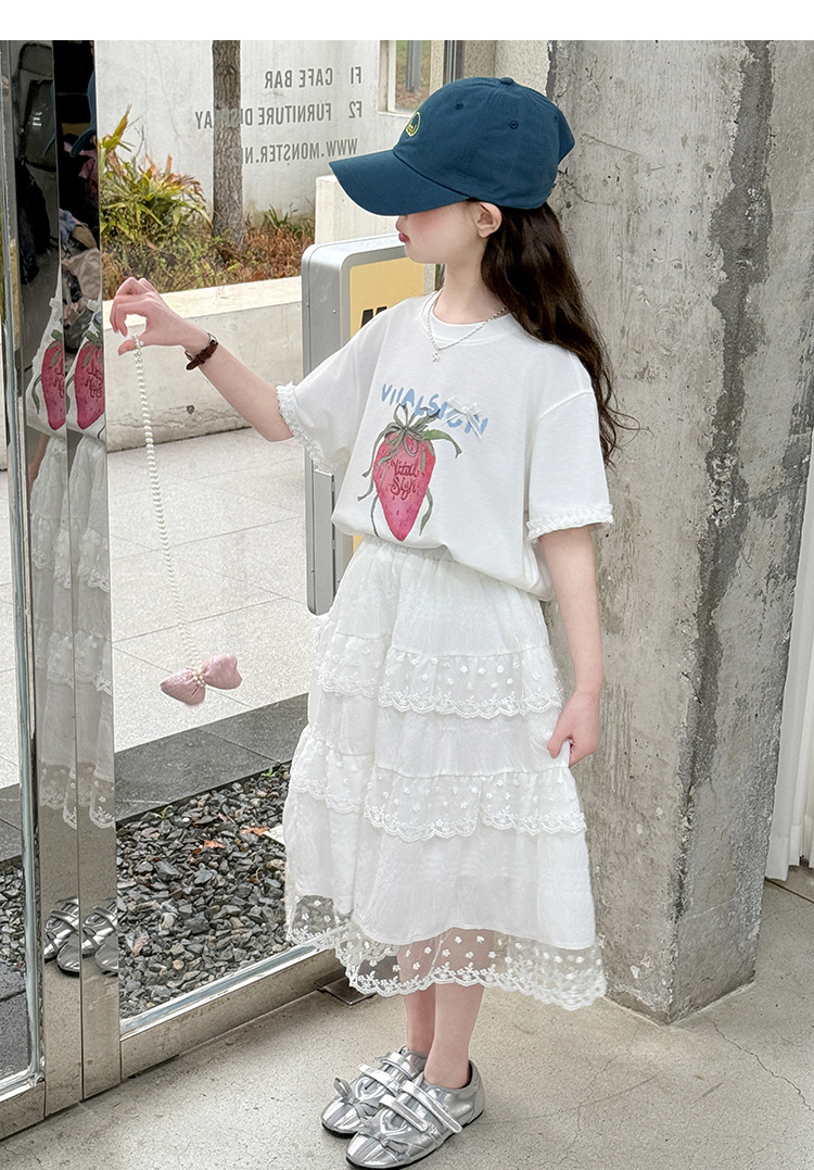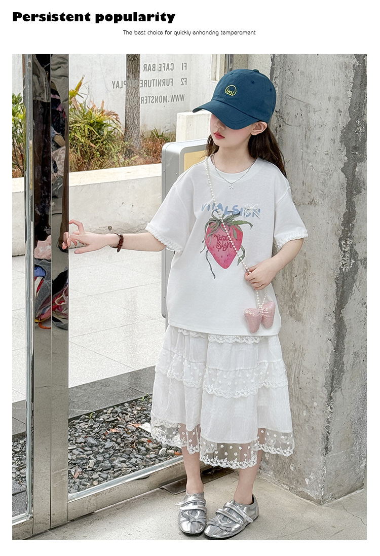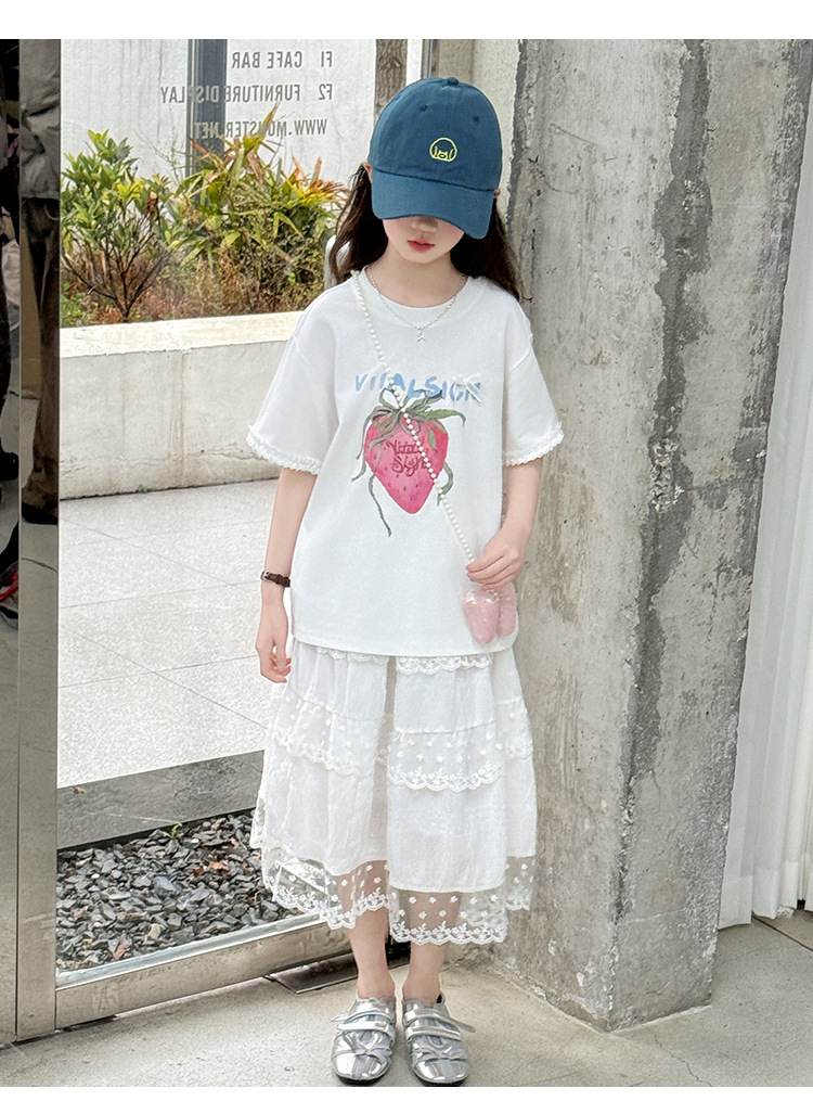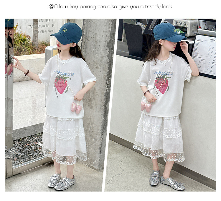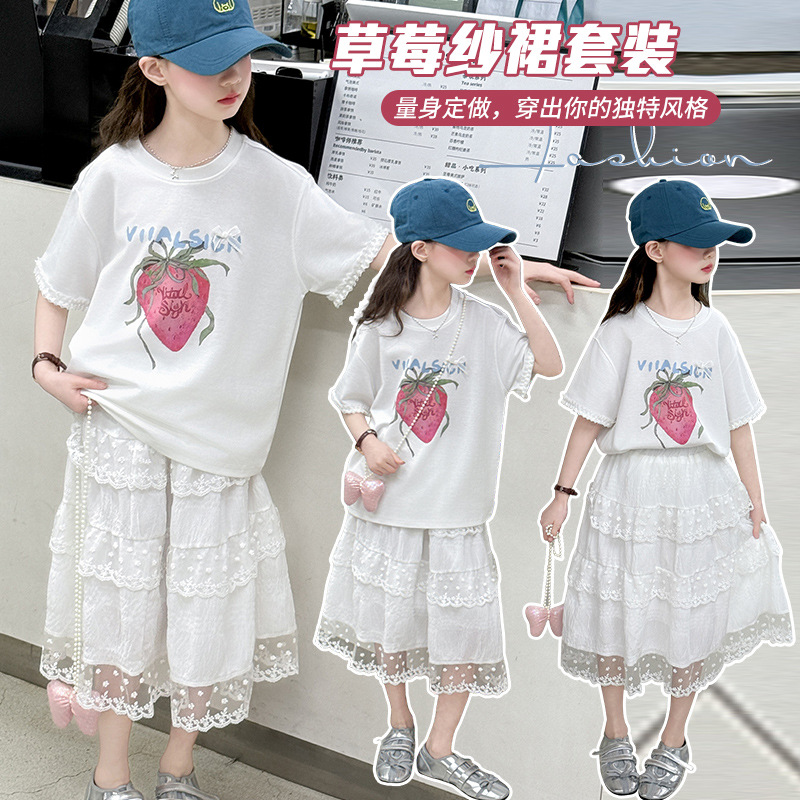 소녀 반팔 티셔츠 세트 여름 만화 인쇄 캐주얼 투피스 얇은 어린이 세트 2025 어린이 패션스토어 가기