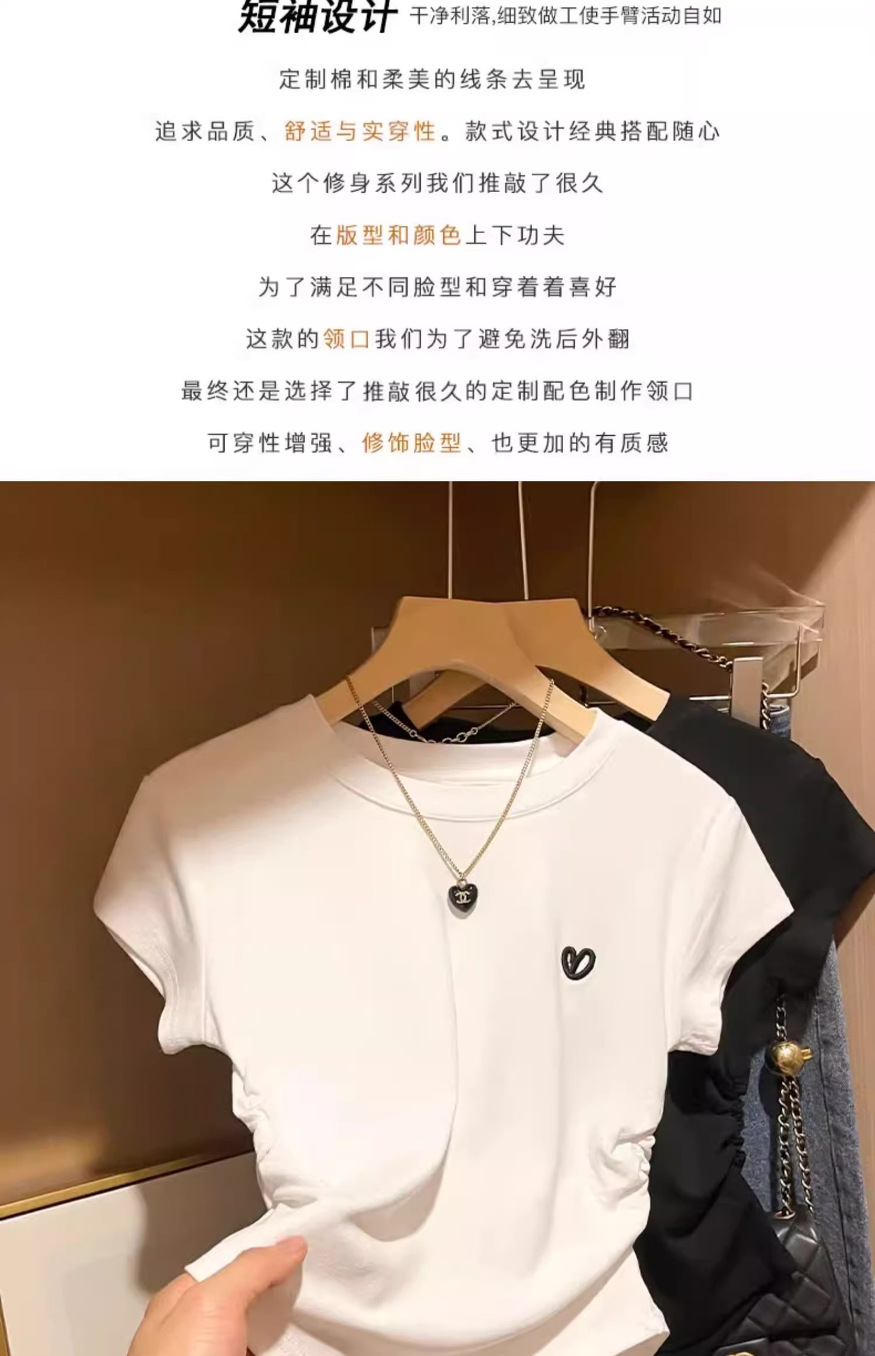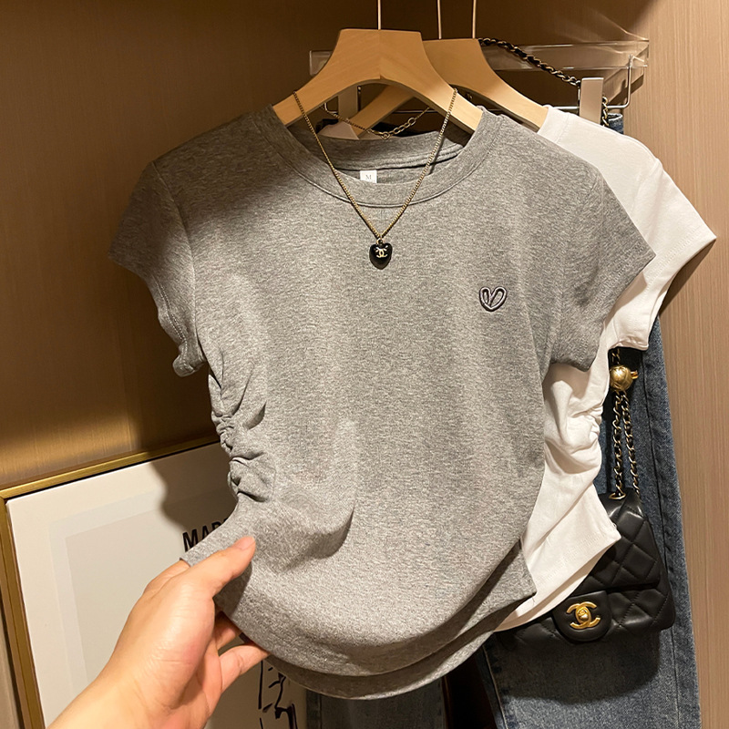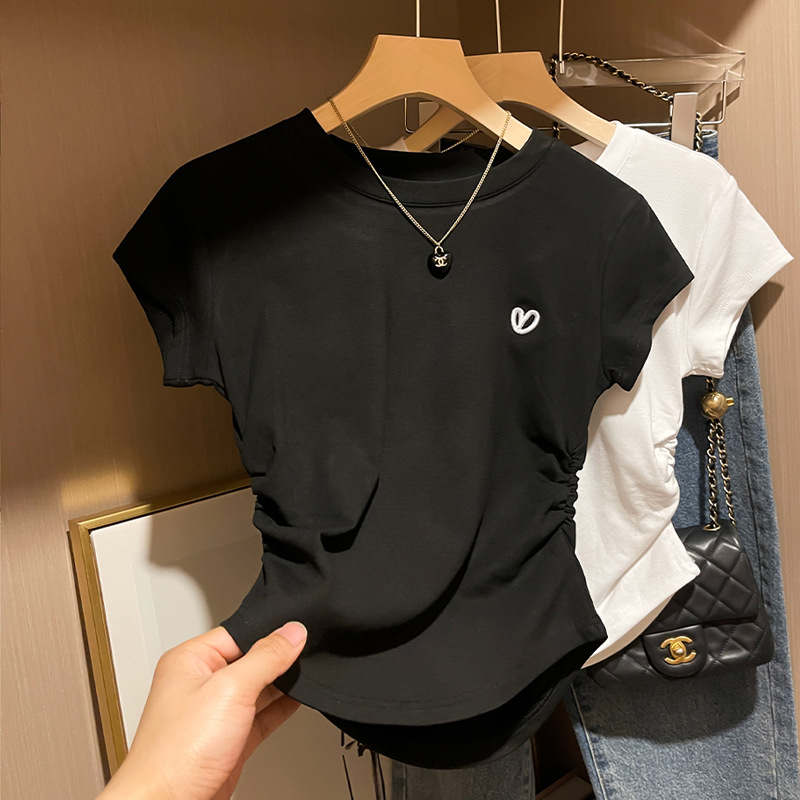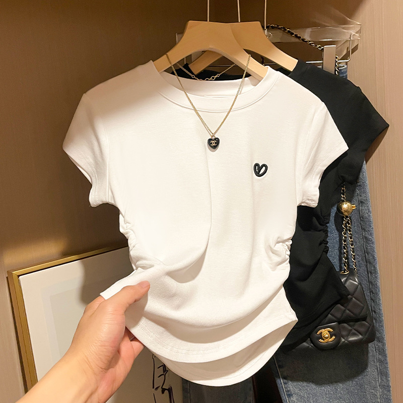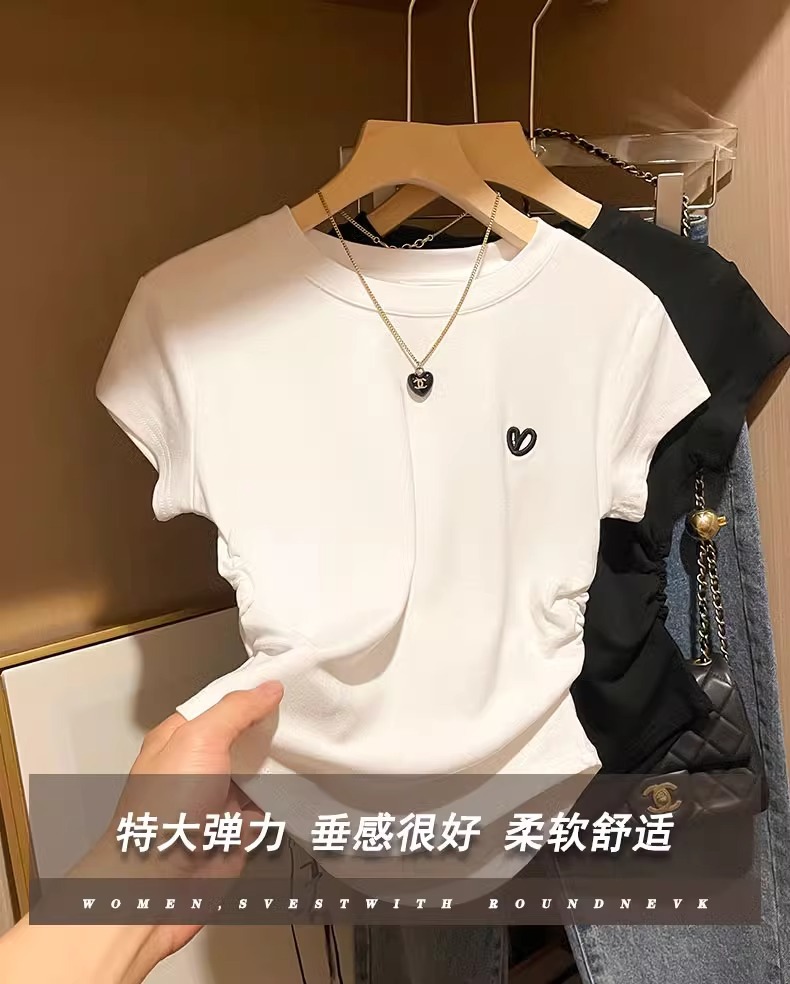 미국식 달콤하고 매운 플러스 사이즈 티셔츠 여성 반팔 여름 새로운 슬리밍 디자인 센스 내부 쇼트 웨이스트 올 매치 탑스토어 가기