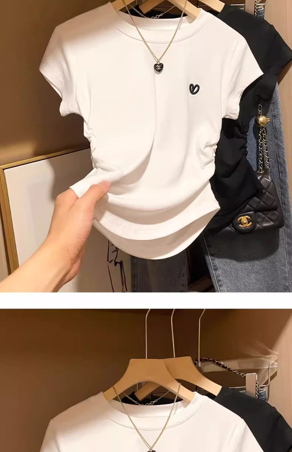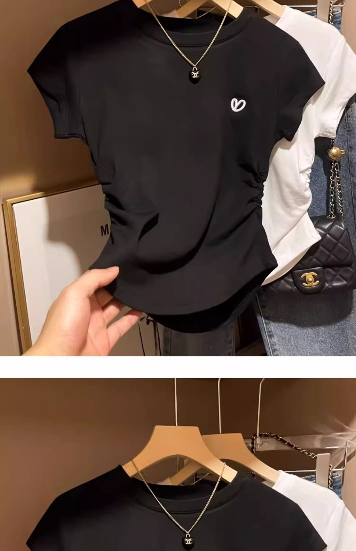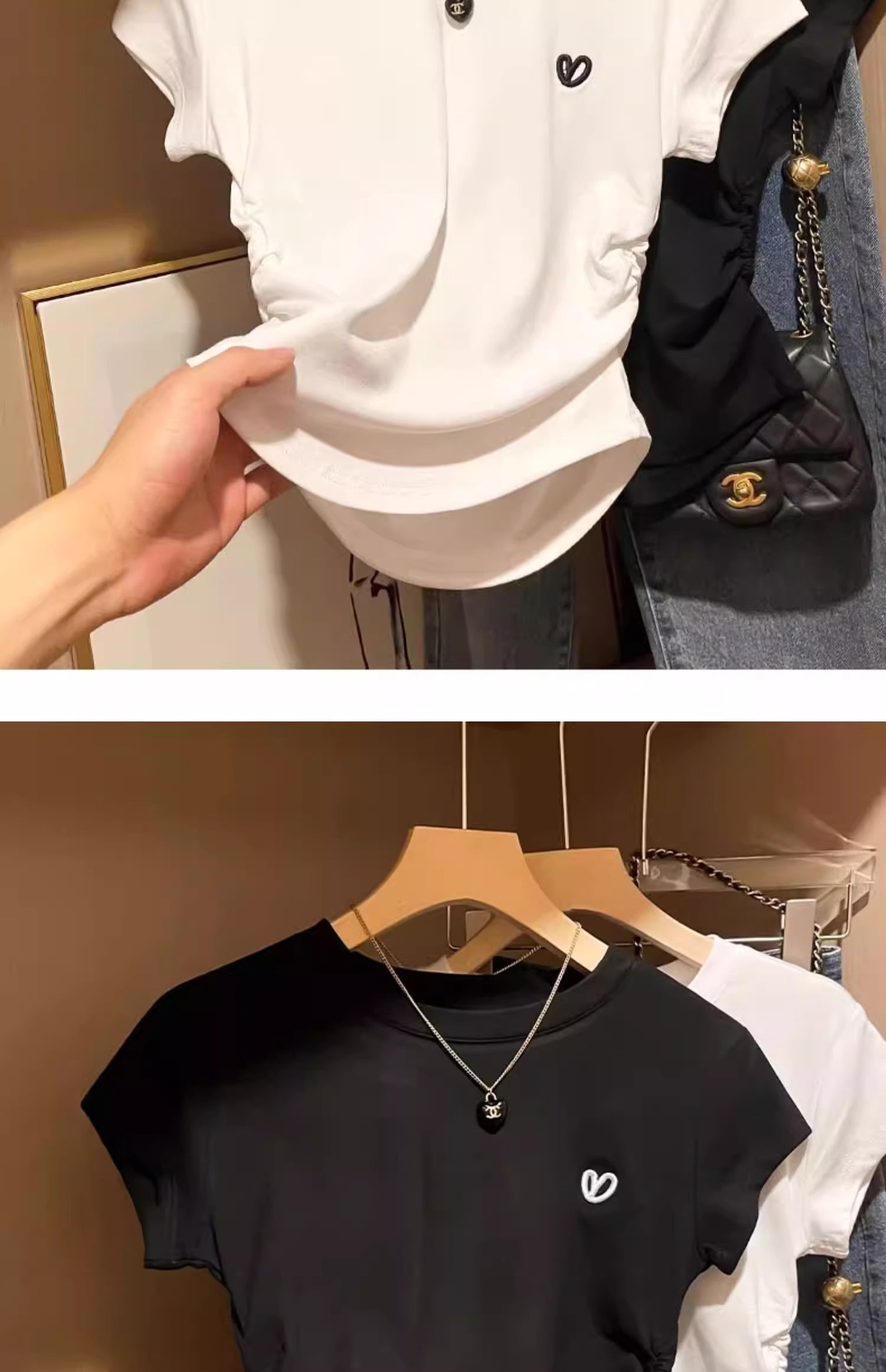 미국식 달콤하고 매운 플러스 사이즈 티셔츠 여성 반팔 여름 새로운 슬리밍 디자인 센스 내부 쇼트 웨이스트 올 매치 탑