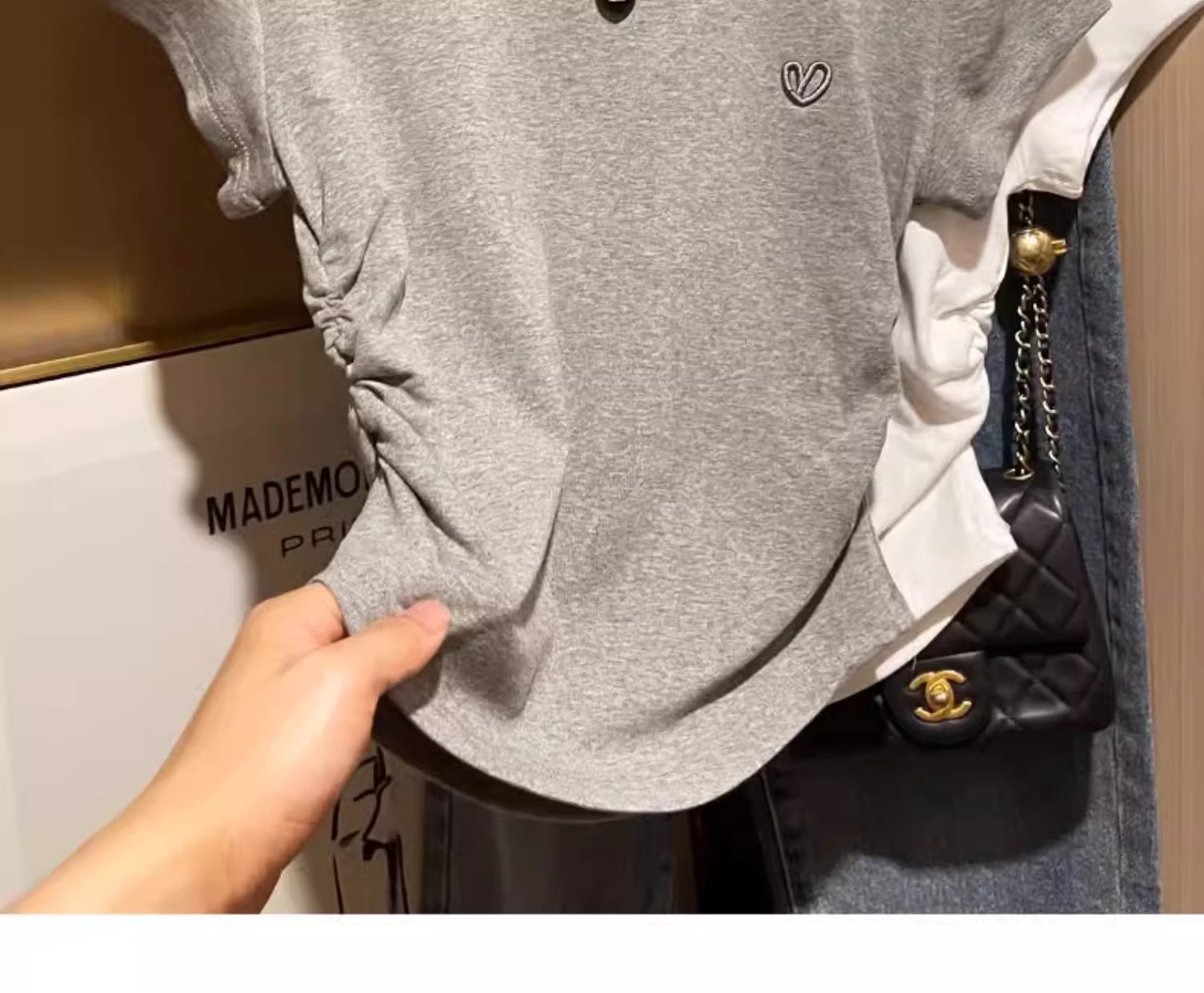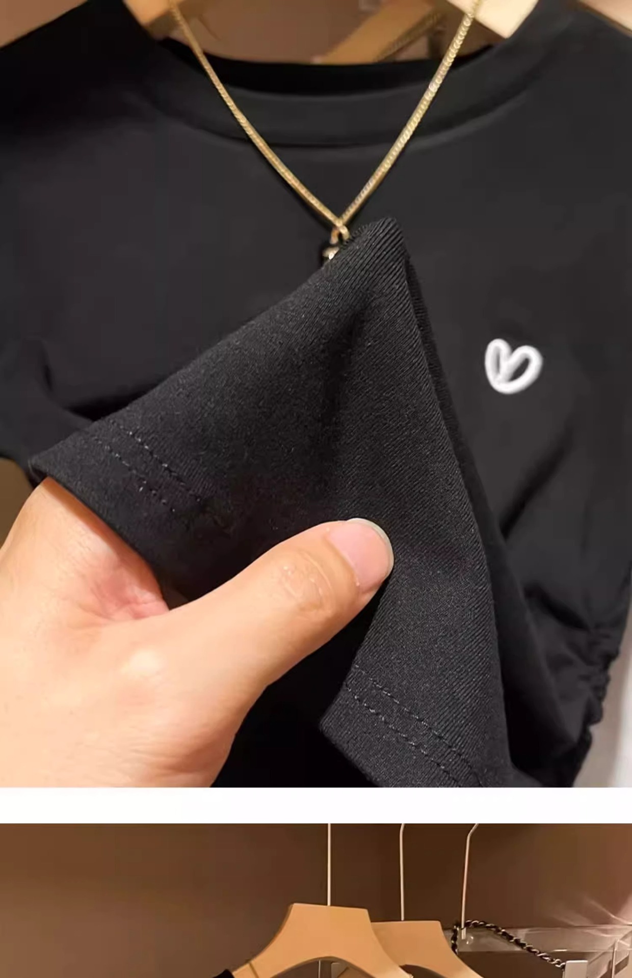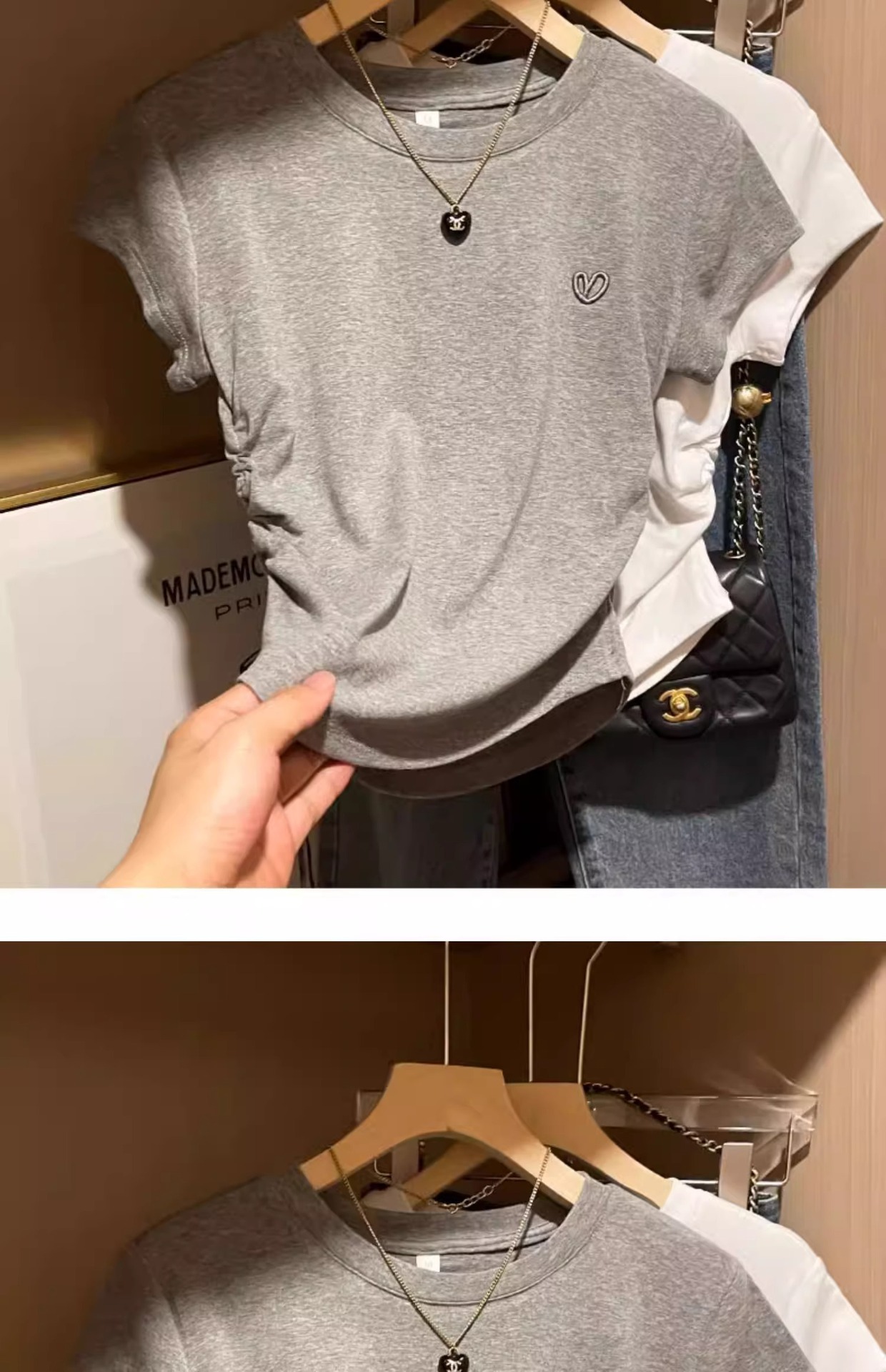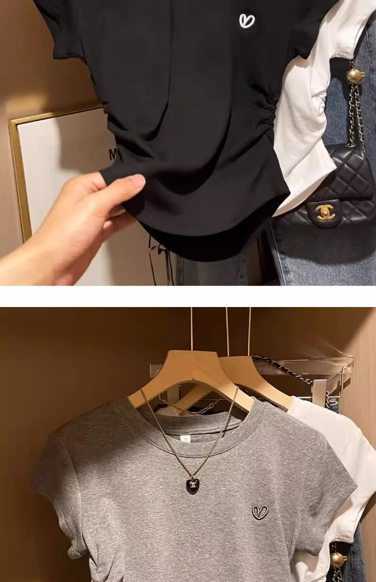 미국식 달콤하고 매운 플러스 사이즈 티셔츠 여성 반팔 여름 새로운 슬리밍 디자인 센스 내부 쇼트 웨이스트 올 매치 탑