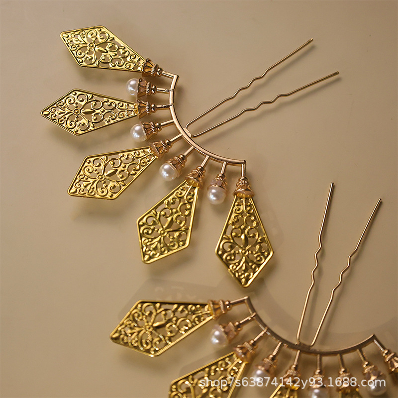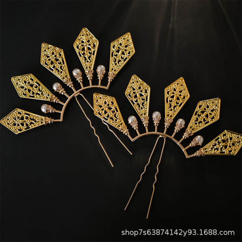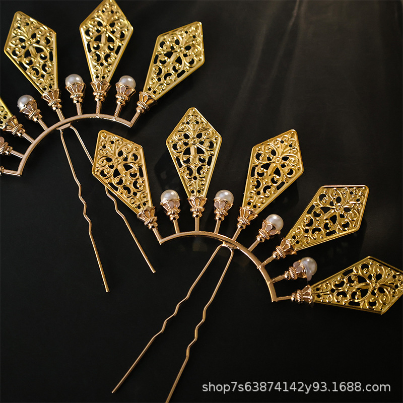 당나라 스타일 명나라 스타일 한푸 헤어 장식품 제국 첩의 스타일 U 자형 헤어핀 골동품 꾸밈 액세서리 모란 꽃 꽃 신 헤드웨어