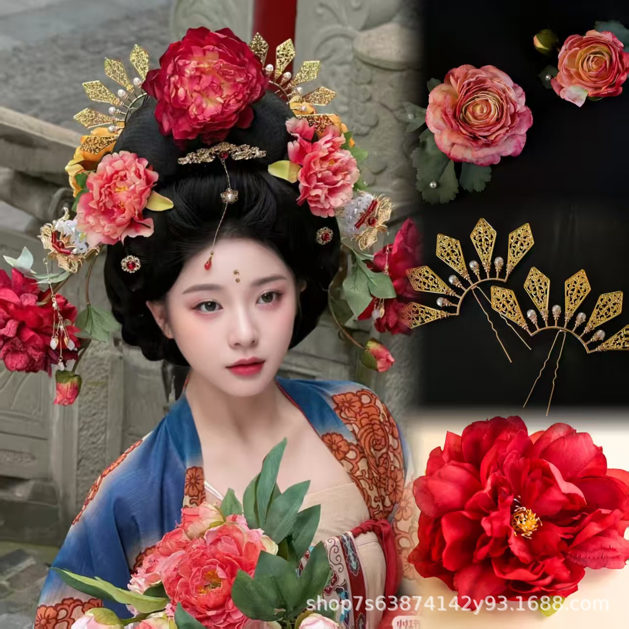 당나라 스타일 명나라 스타일 한푸 헤어 장식품 제국 첩의 스타일 U 자형 헤어핀 골동품 꾸밈 액세서리 모란 꽃 꽃 신 헤드웨어스토어 가기