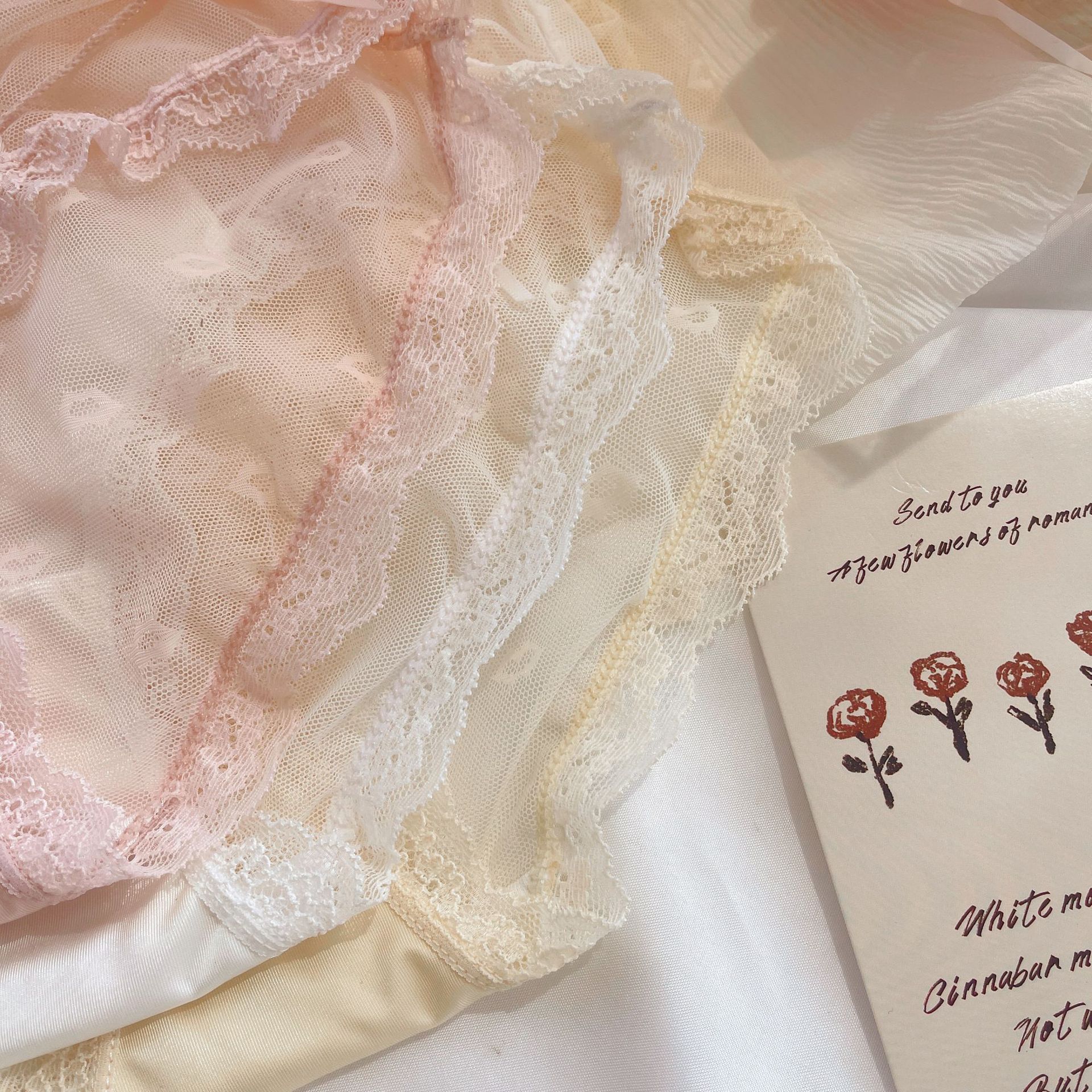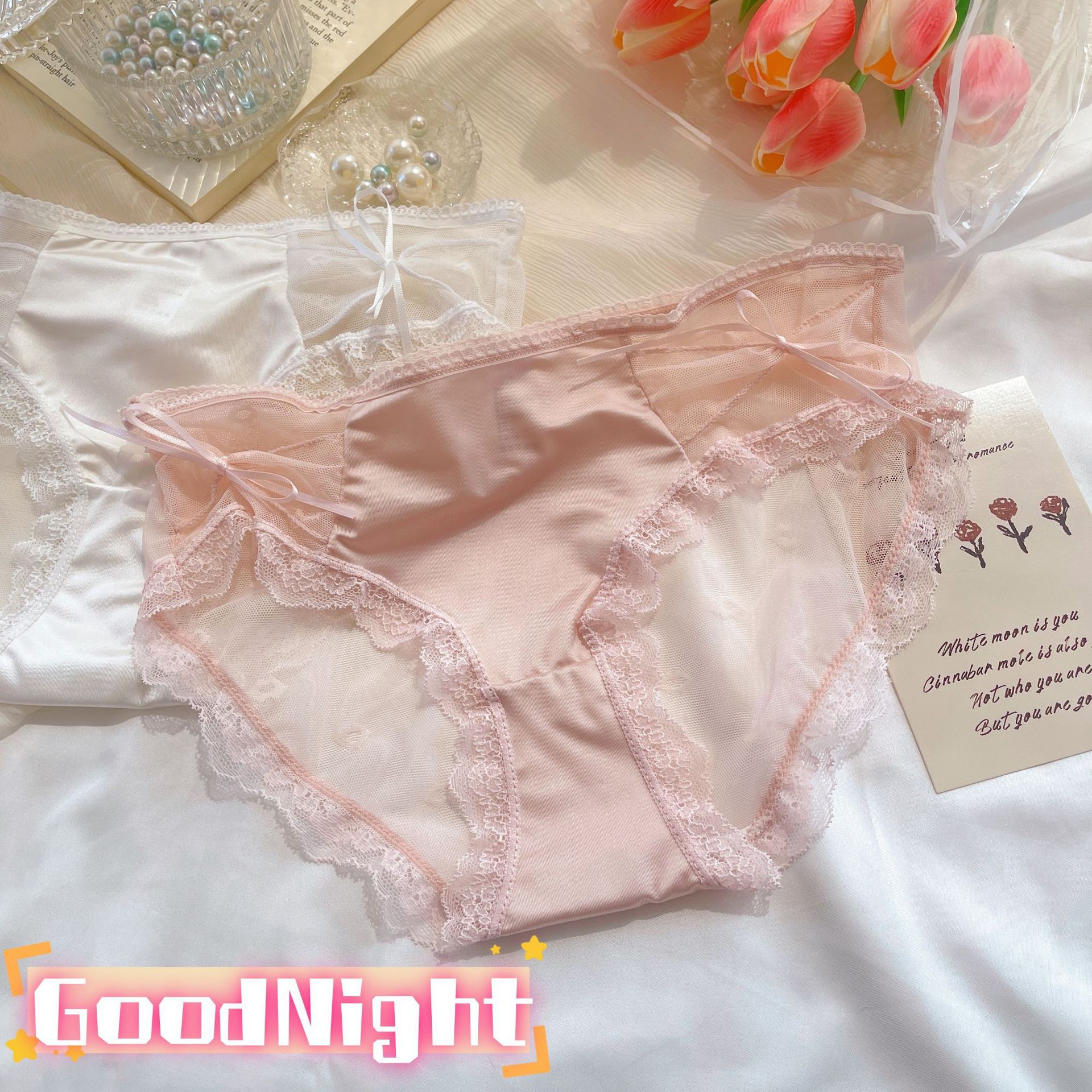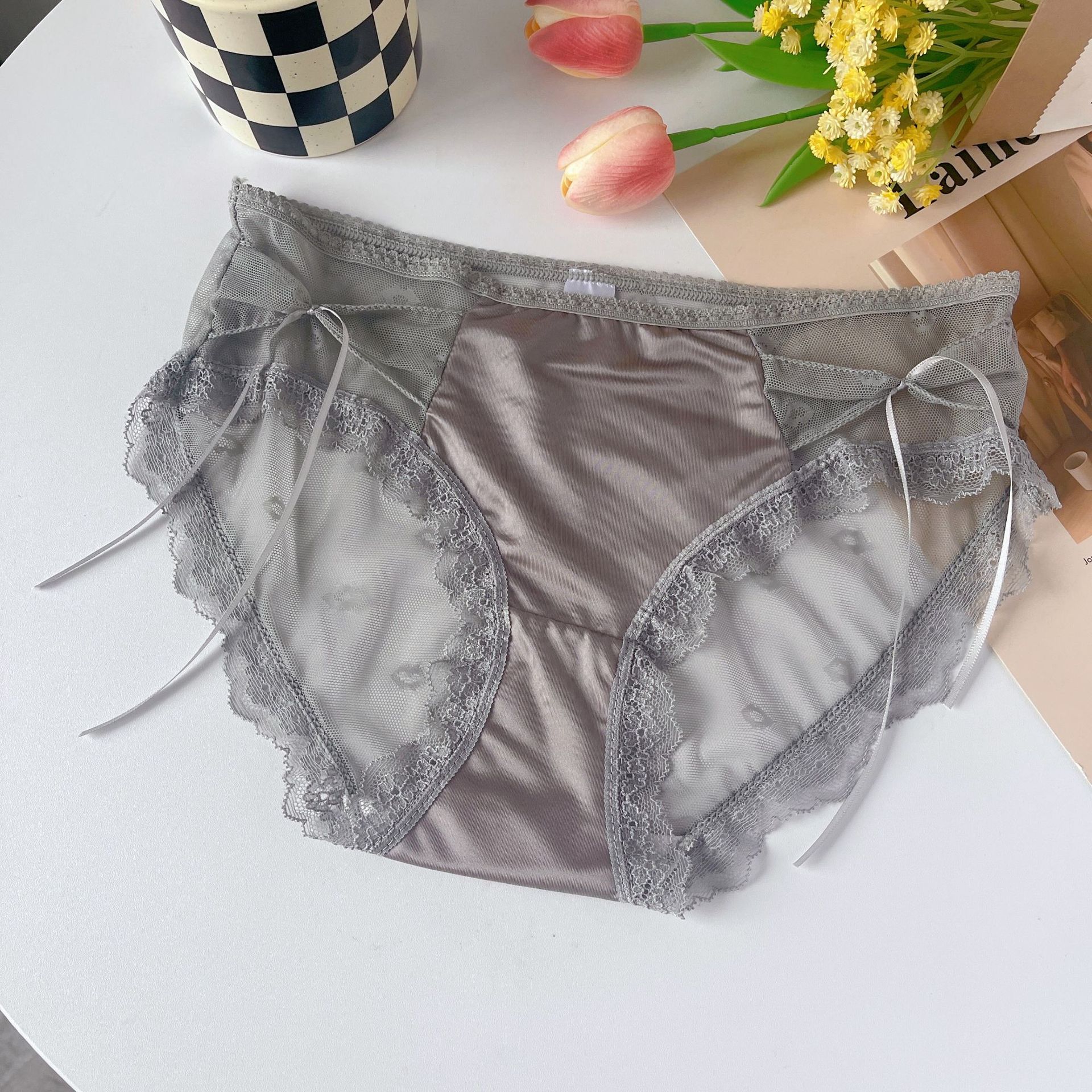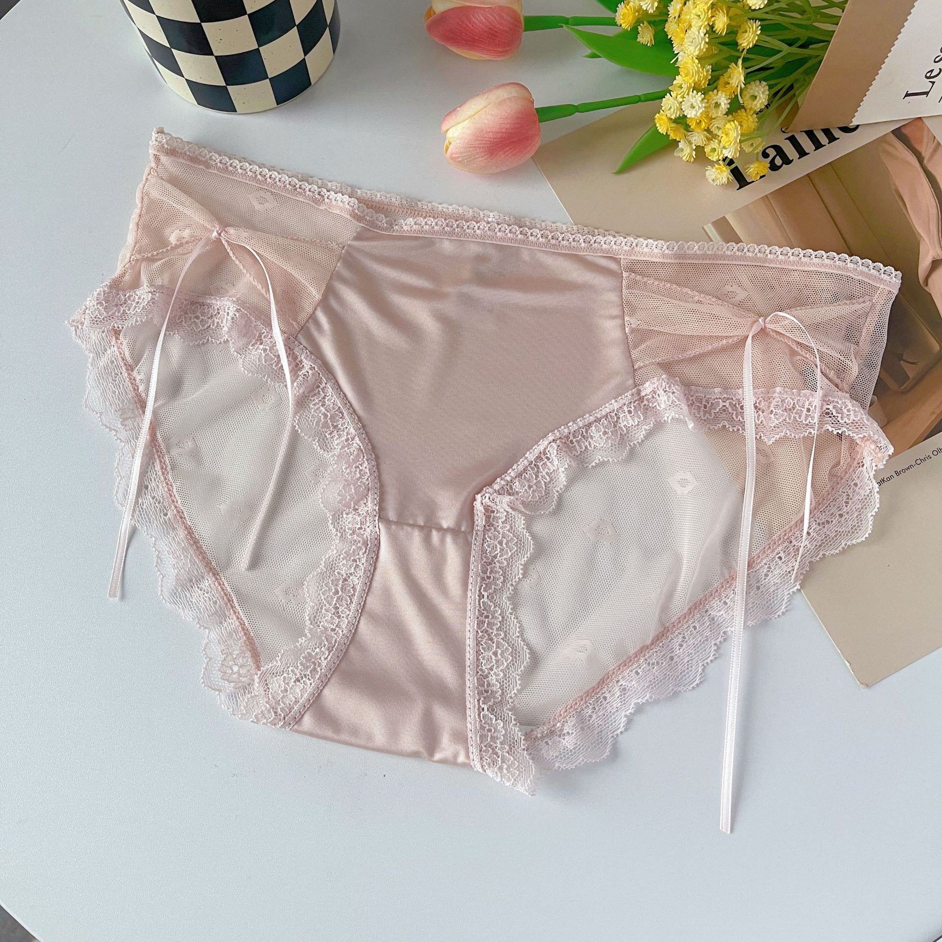 여성용 섹시한 레이스 팬티, 순면 바닥 가랑이, 반투명 메쉬 보우 팬티, 여성용 편안한 중간 허리 반바지