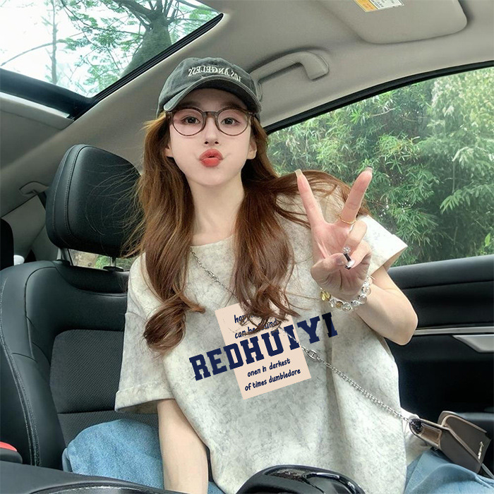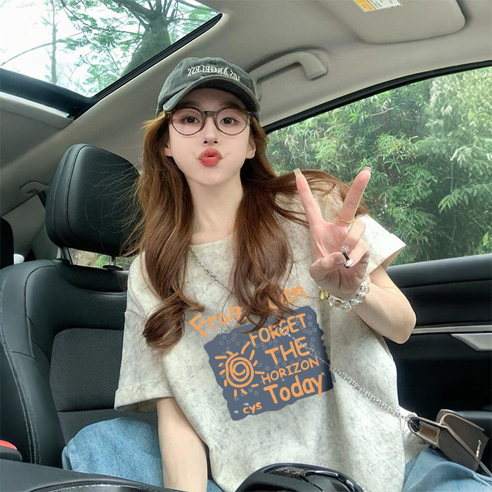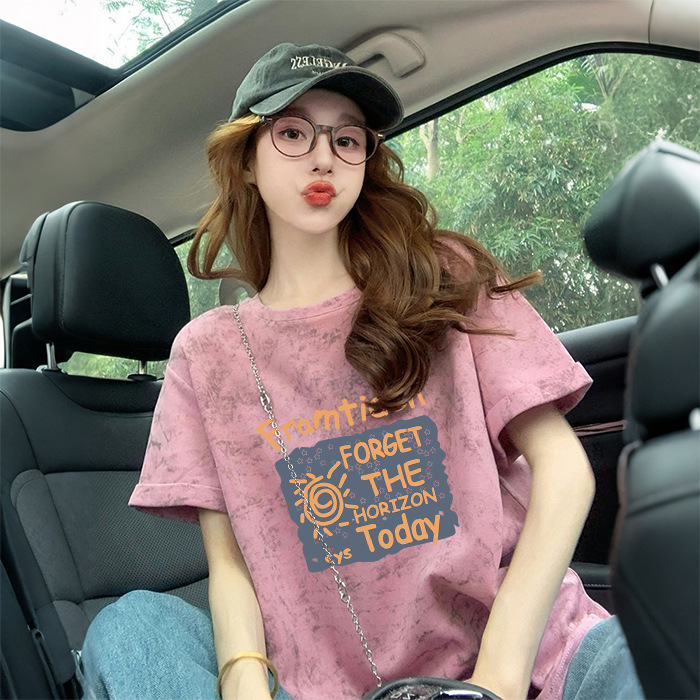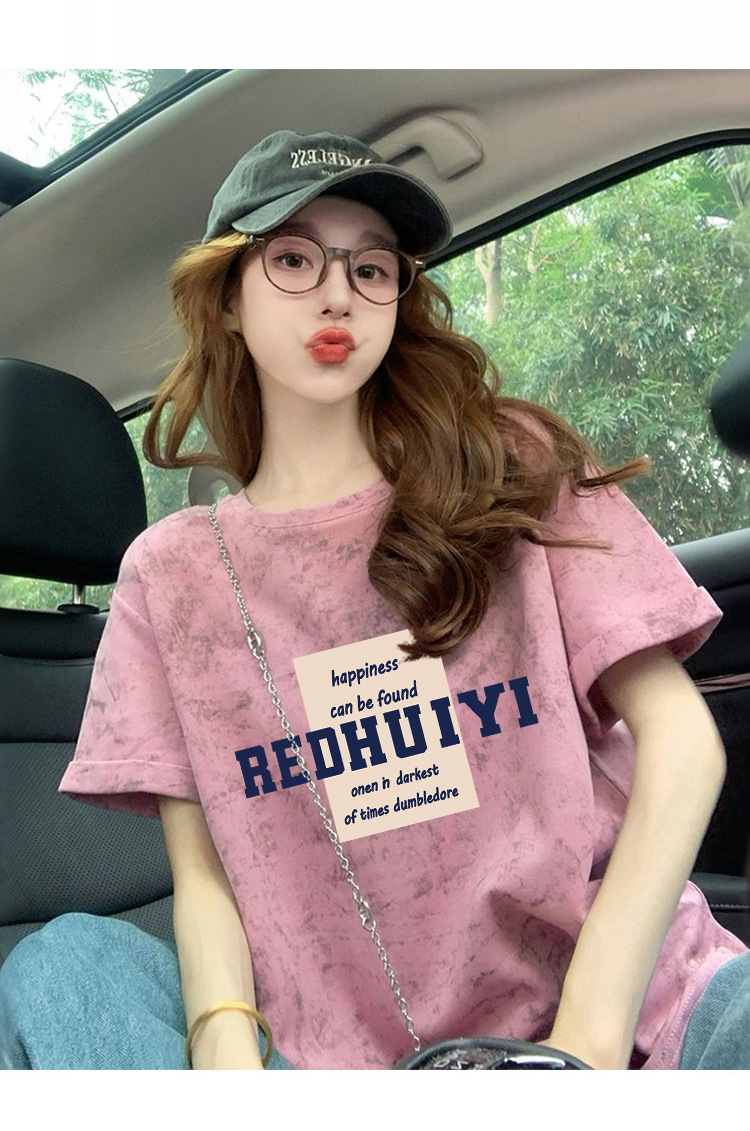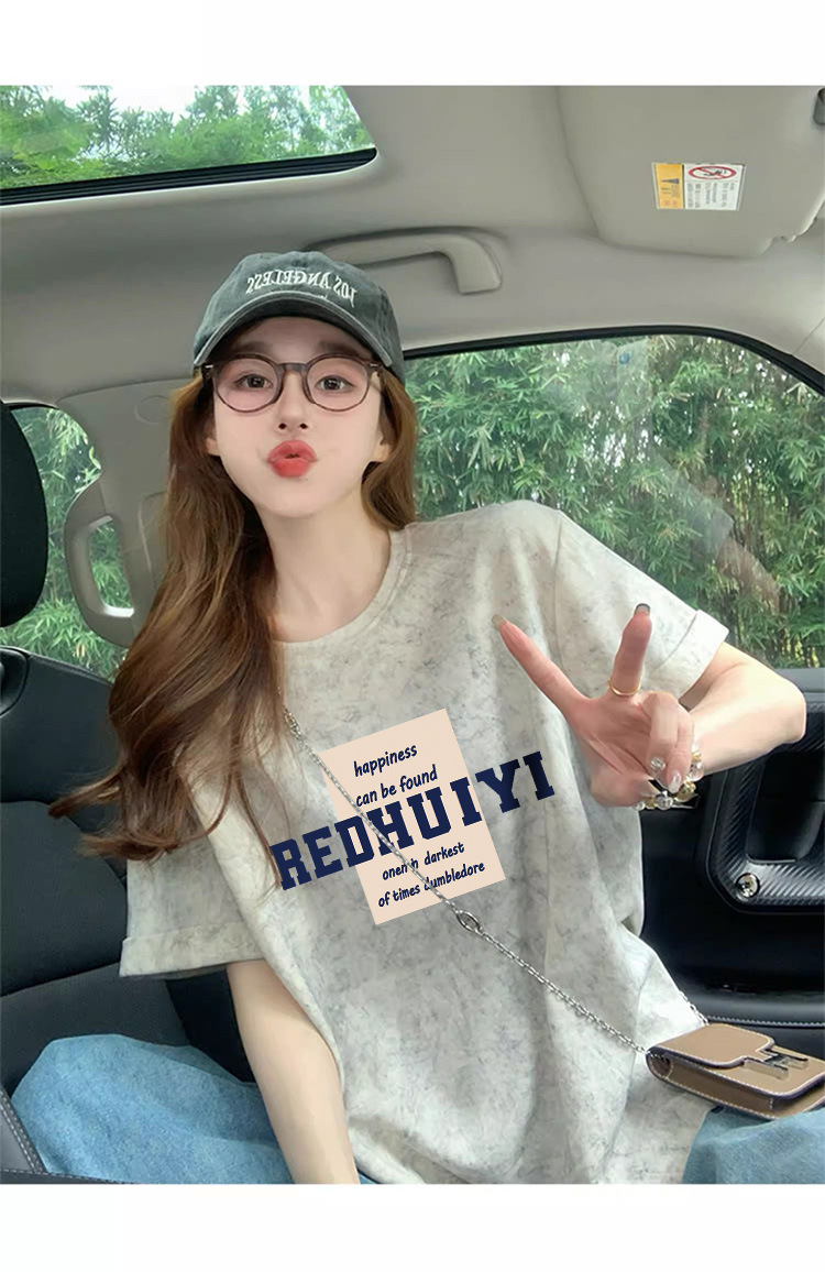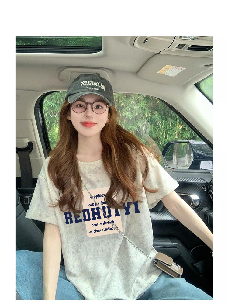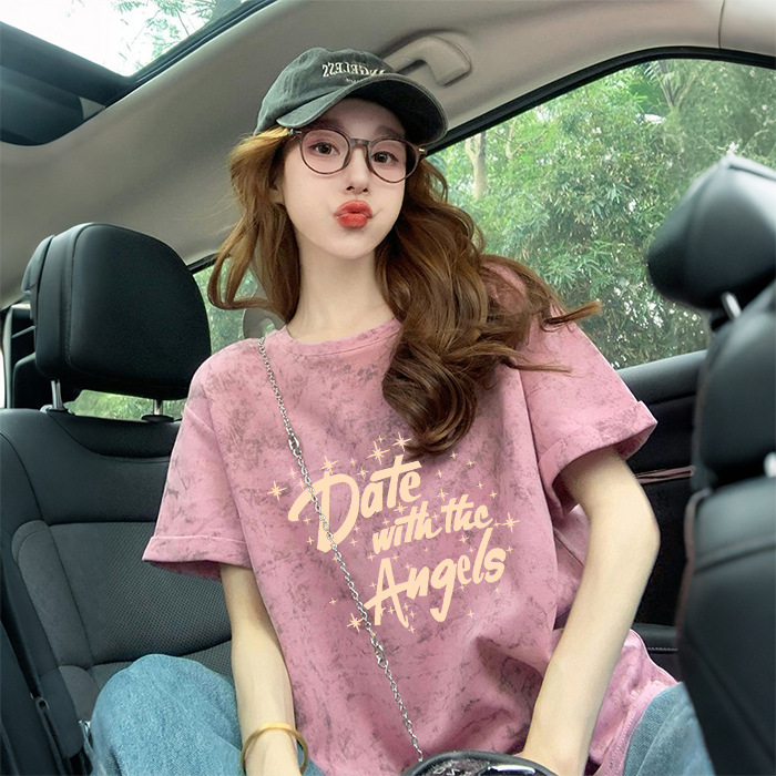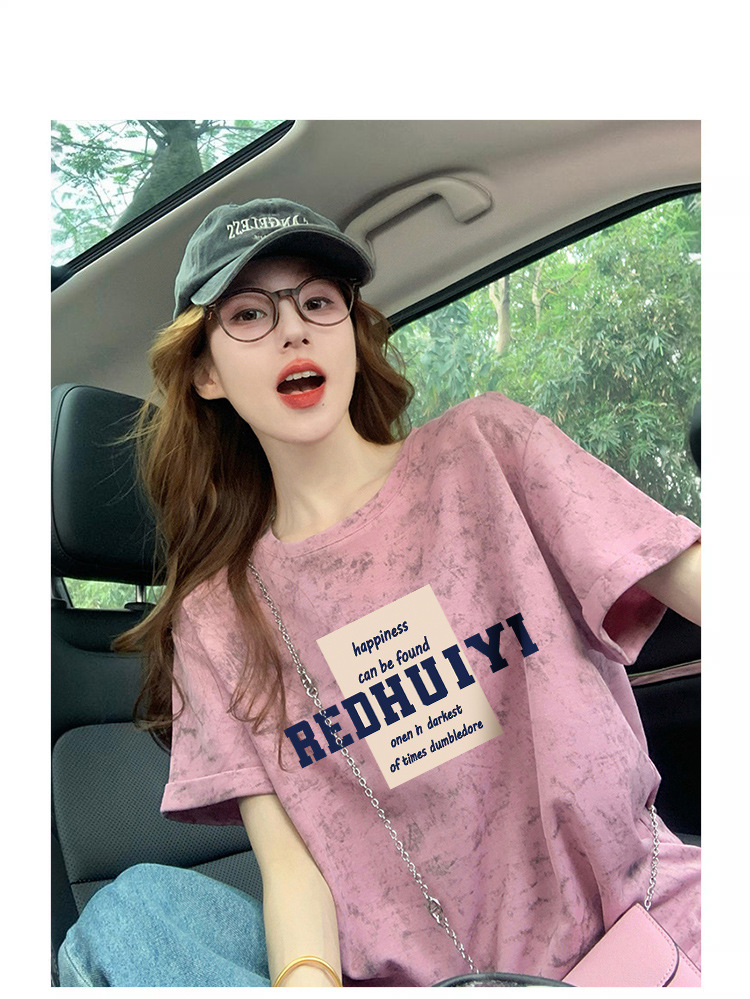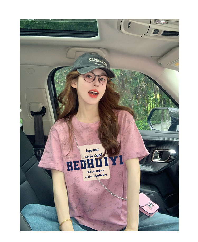 Ins 한국식 편지 인쇄 느슨한 반팔 티셔츠 여성용 여름 도파민 넥타이 염색 슬림 룩 에이지 감소 올 매치 탑 트렌디스토어 가기