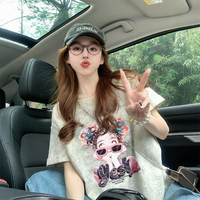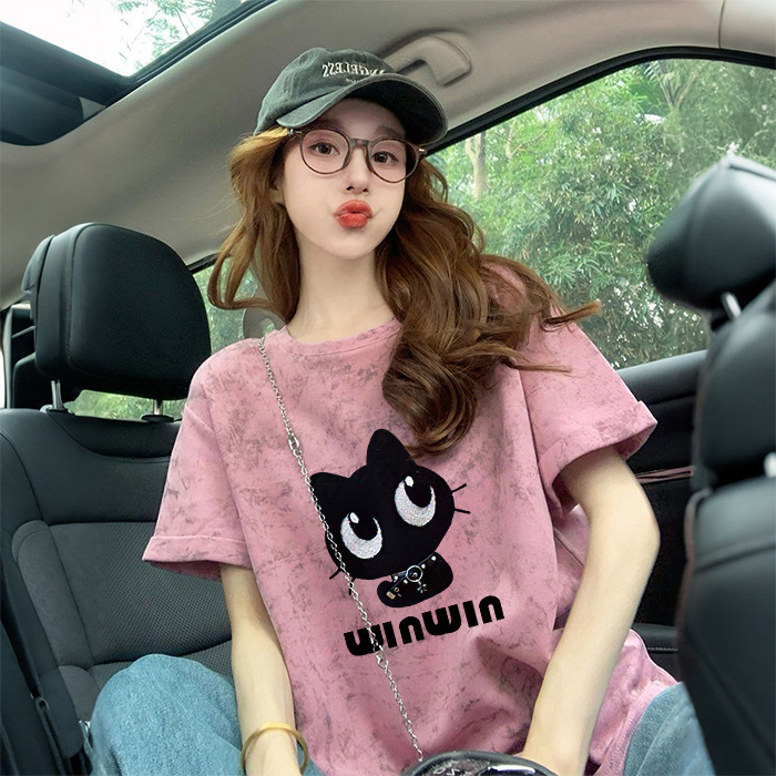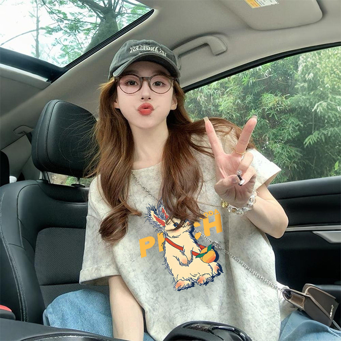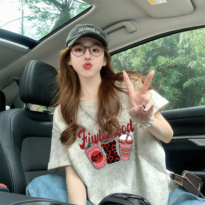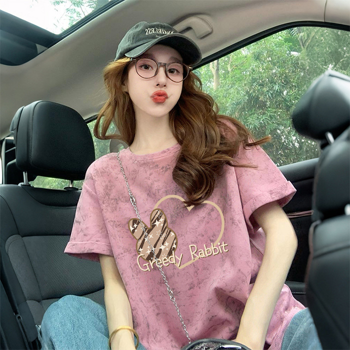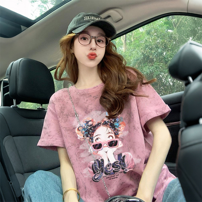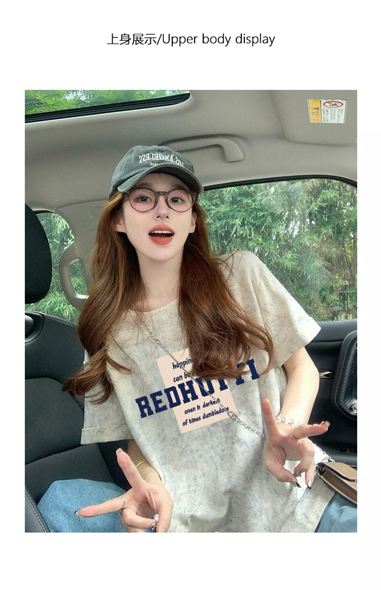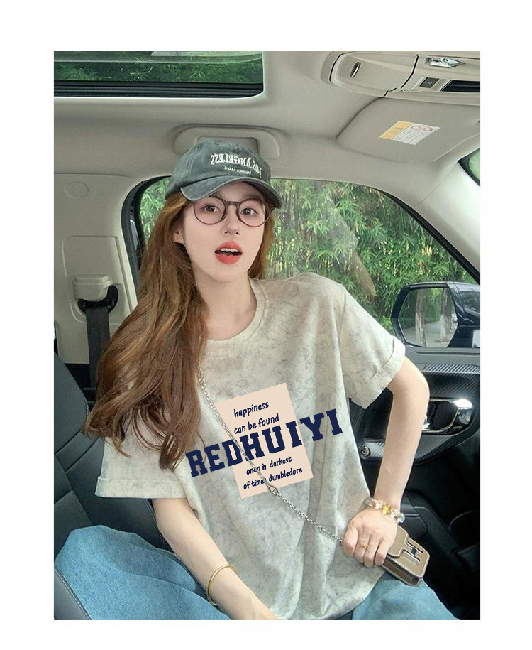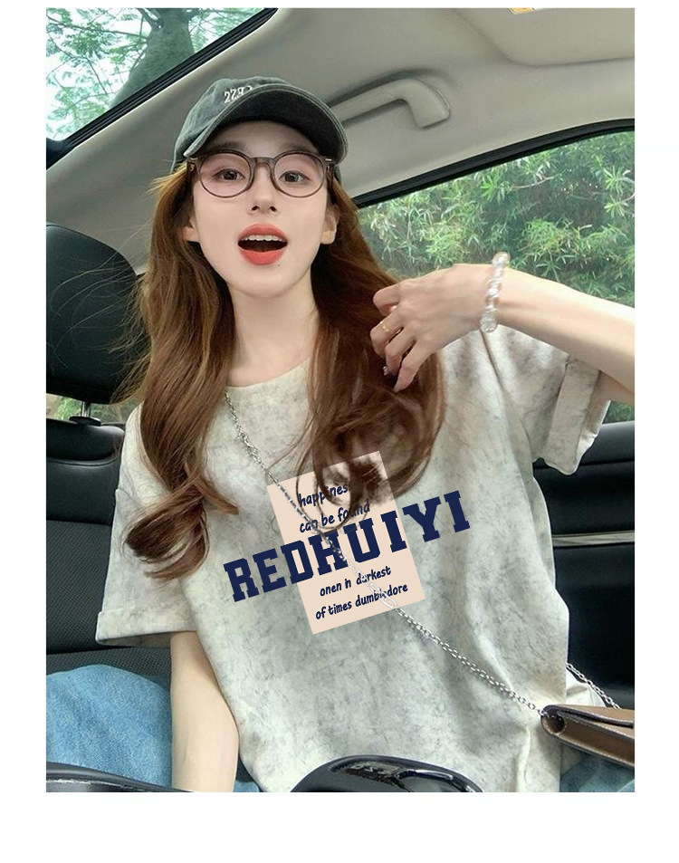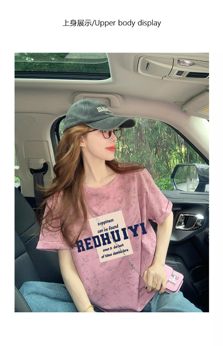 Ins 한국식 편지 인쇄 느슨한 반팔 티셔츠 여성용 여름 도파민 넥타이 염색 슬림 룩 에이지 감소 올 매치 탑 트렌디스토어 가기
