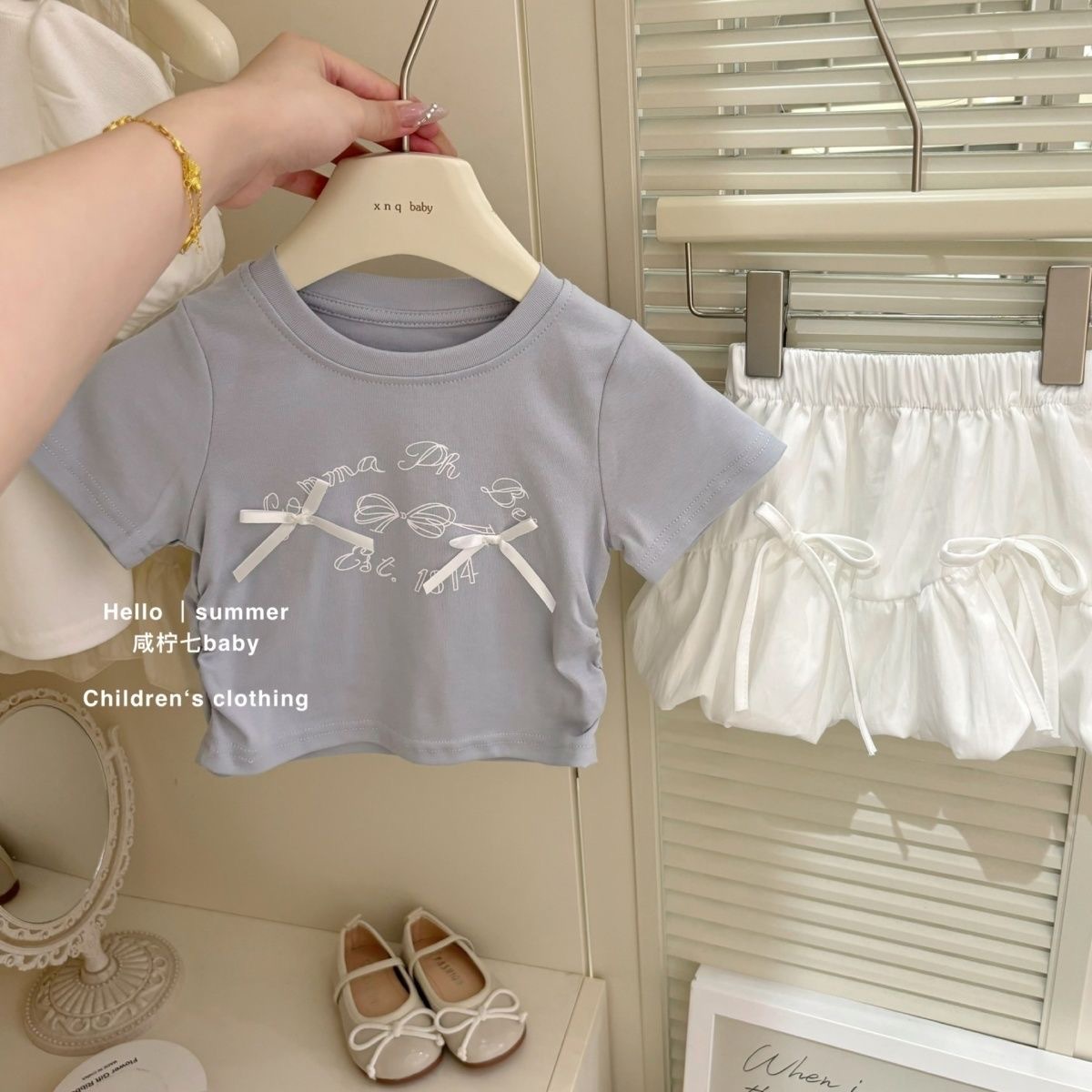 여자 한국식 세트 2025 여름 새 어린이 활 반팔 티셔츠 스커트 투피스 탑스토어 가기