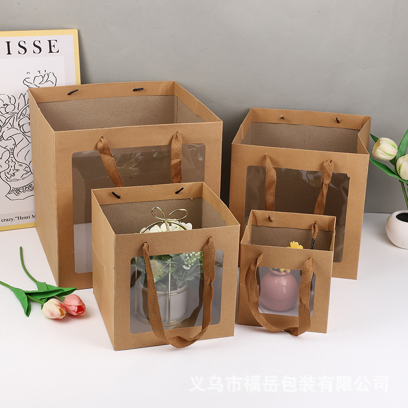 정사각형 투명 포장봉투, 꽃, 인형, 선물봉투, 케이크봉투, 발렌타인데이 핸드백, 두꺼운 크라프트지봉투스토어 가기