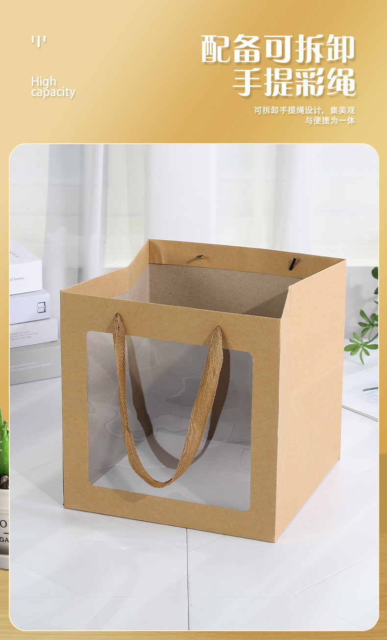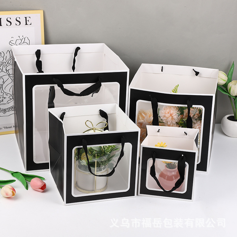 정사각형 투명 포장봉투, 꽃, 인형, 선물봉투, 케이크봉투, 발렌타인데이 핸드백, 두꺼운 크라프트지봉투